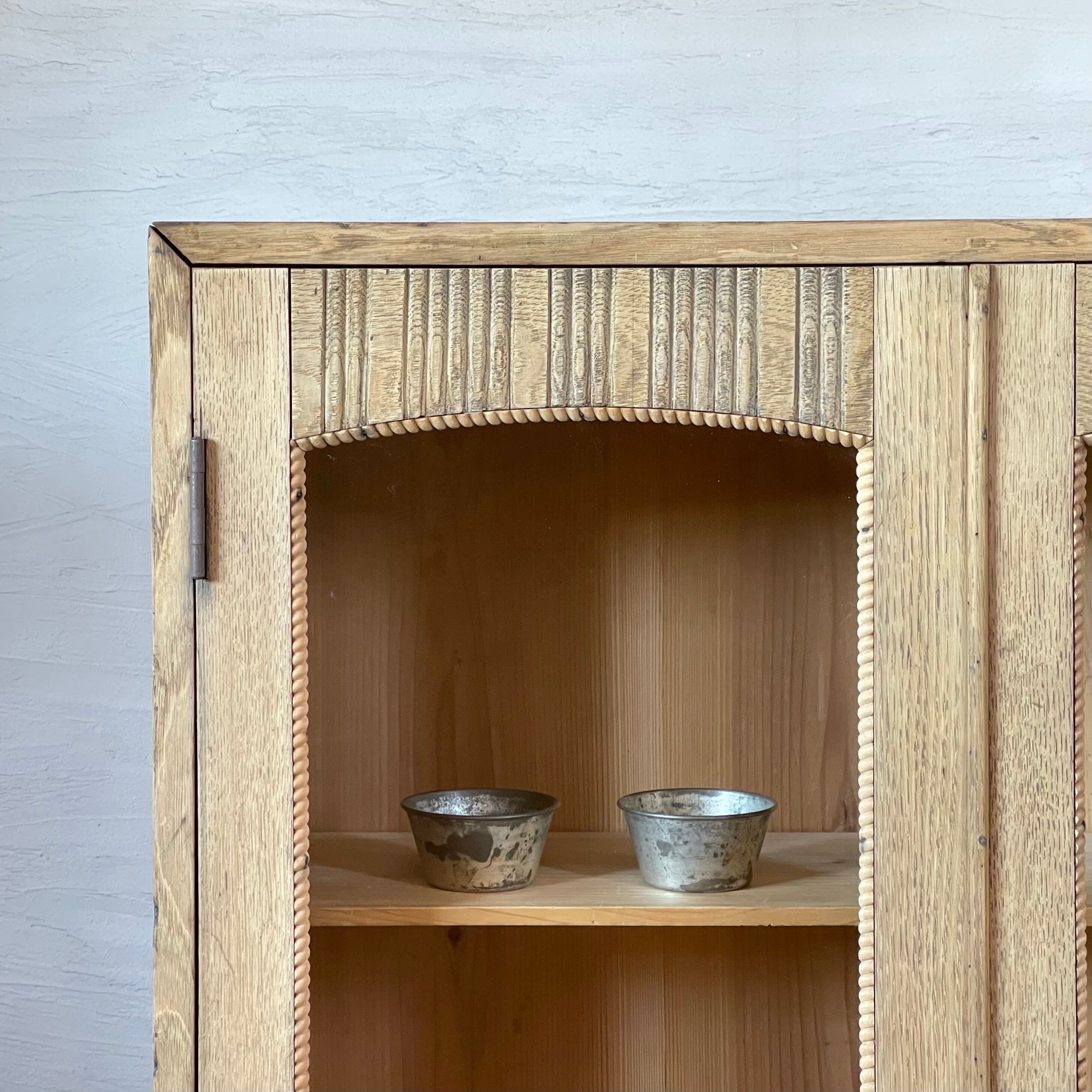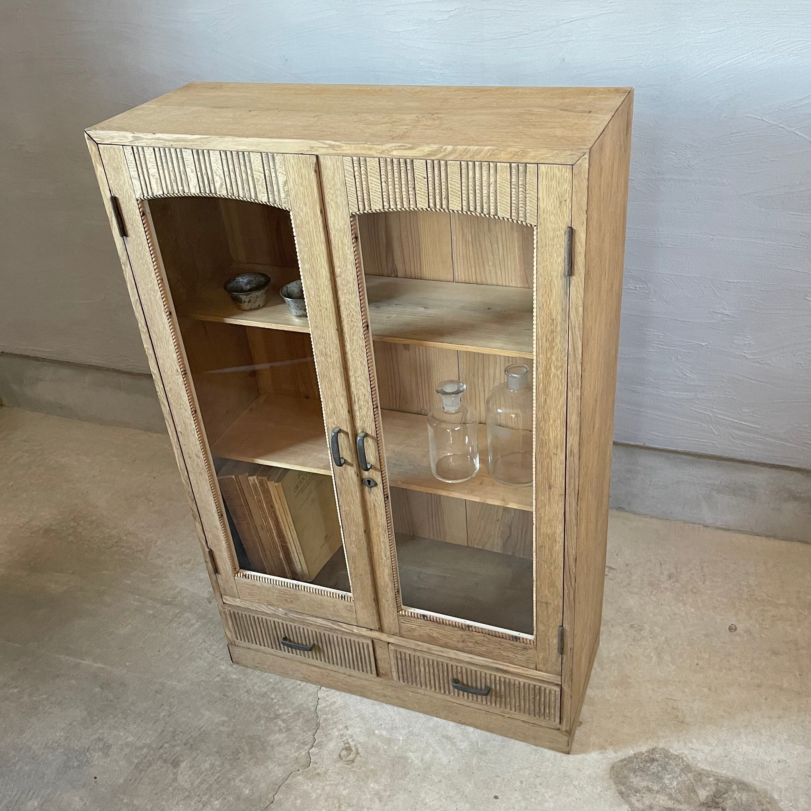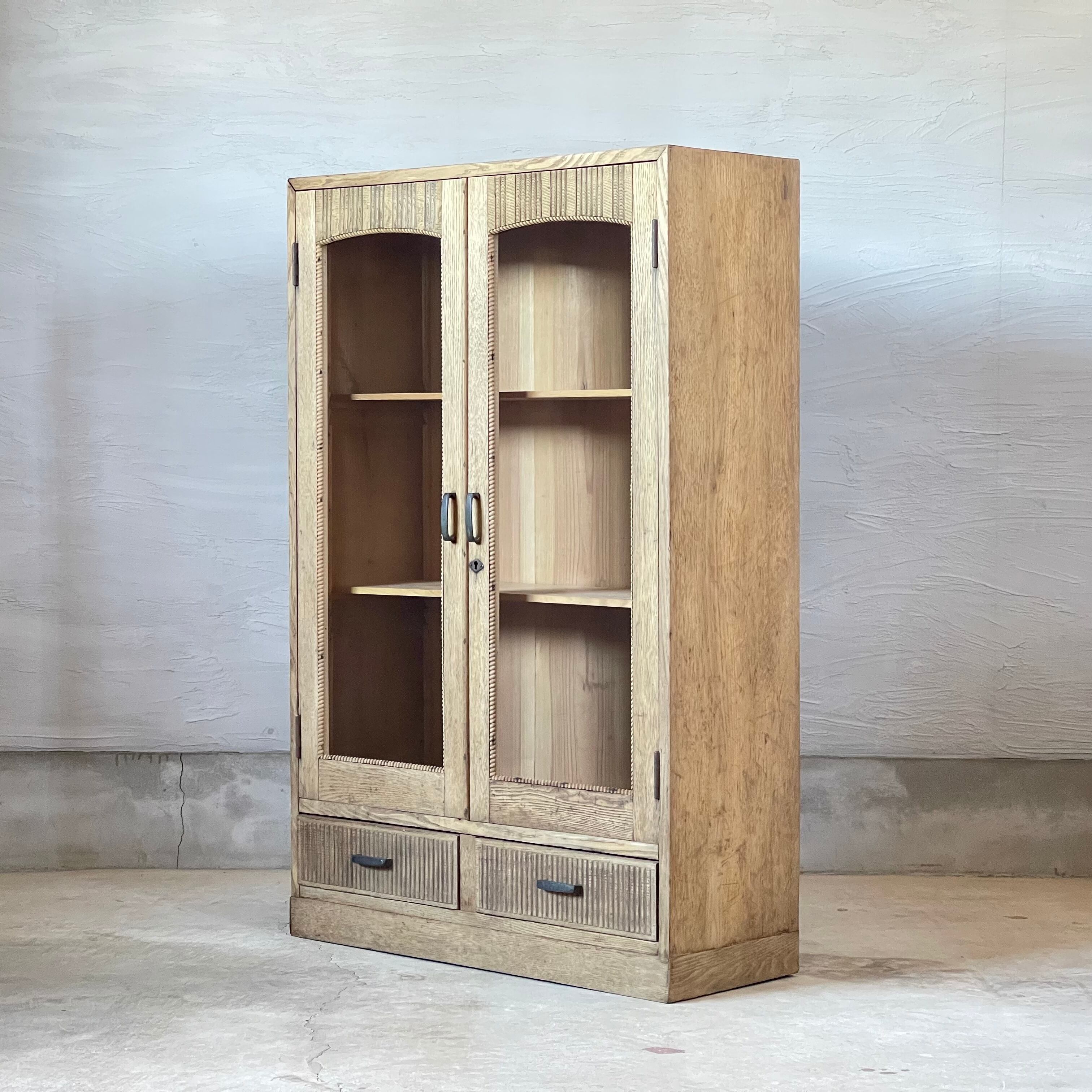 とても贅沢につくり込まれたキャビネットですが栗の木の優しい木味とアーチ型のガラスが軽やかで気品のある印象を与えています。