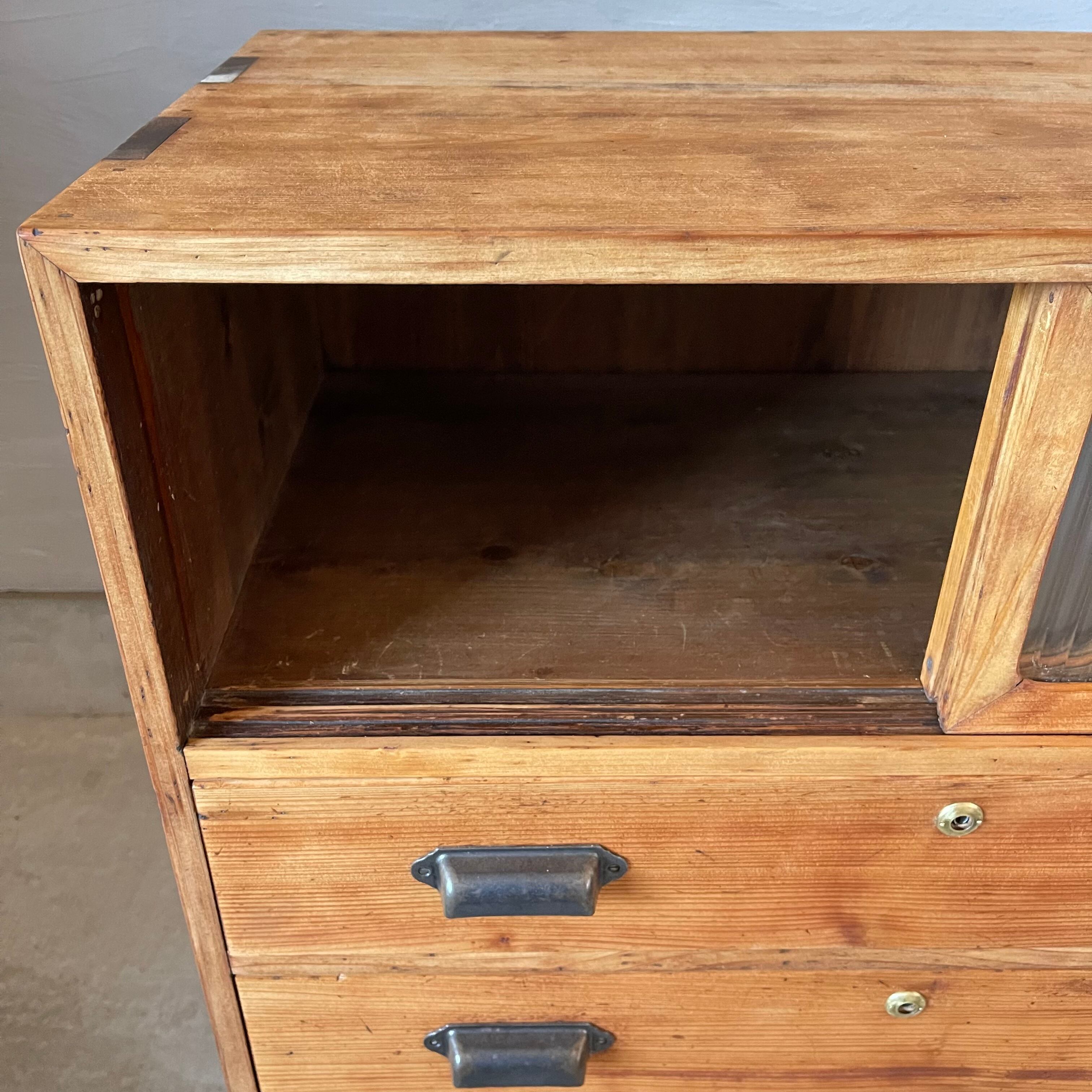 とても古い家具ですが、古い木の風合いや独特のデザインには新しいものにはない惹きつけられるような魅力があります。