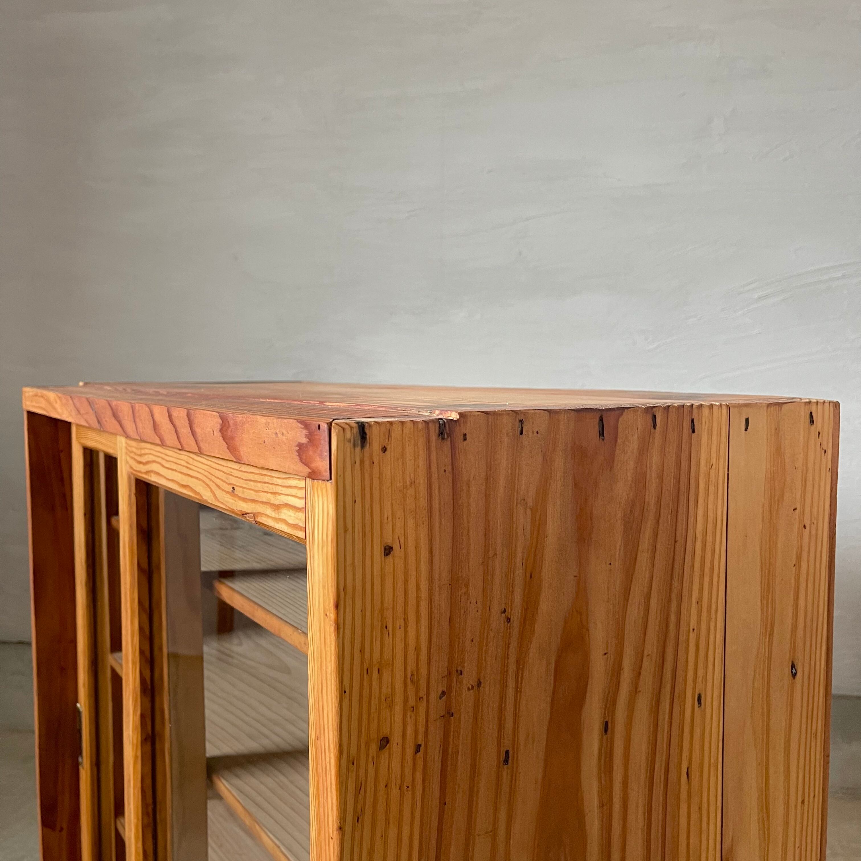 無垢材のナチュラルな木味と大きなガラス引き戸が美しいキャビネットです。