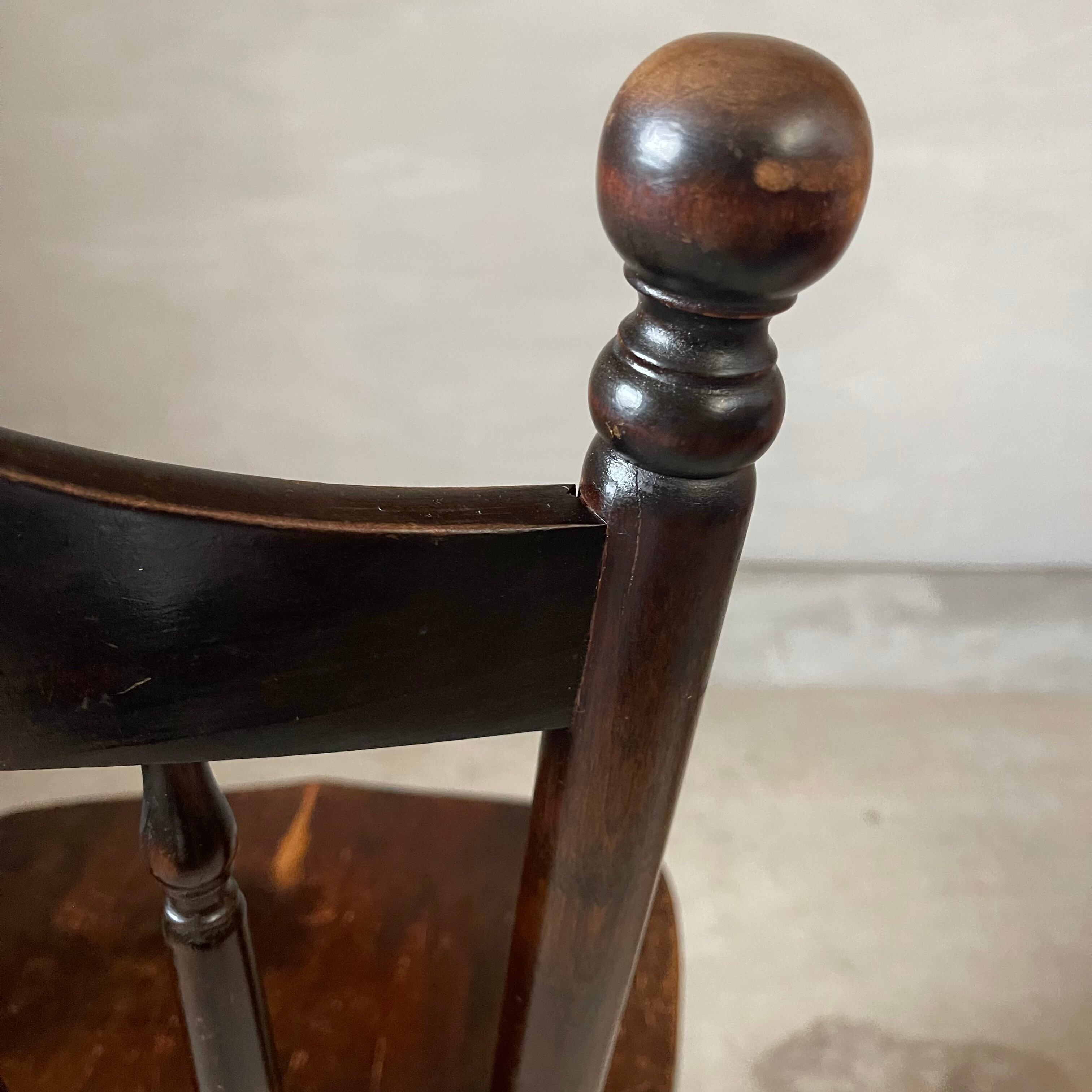 細部まで凝らされた美しい装飾と深く滑らかな座ぐりがとても美しい北海道民芸家具のスピンドルチェアです。