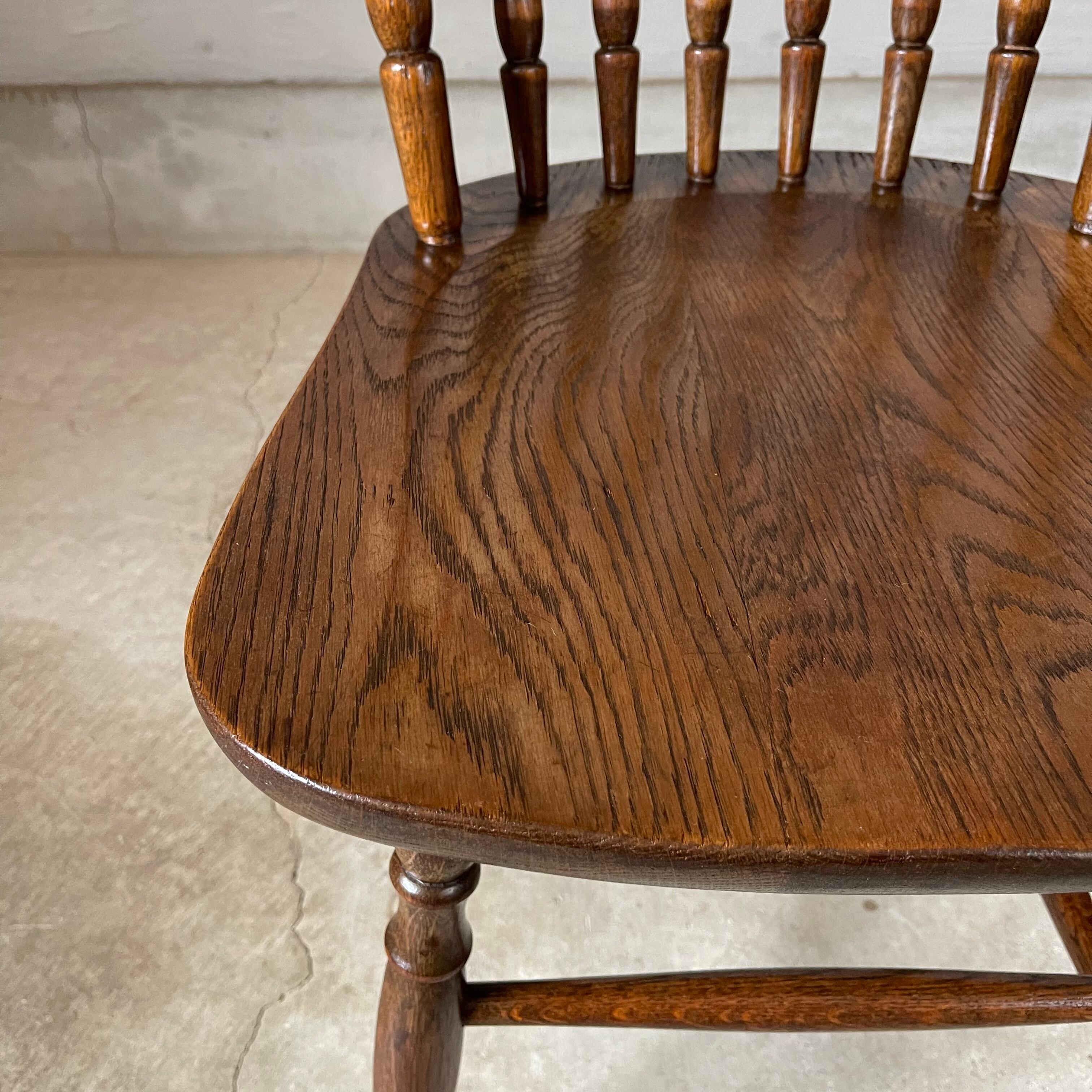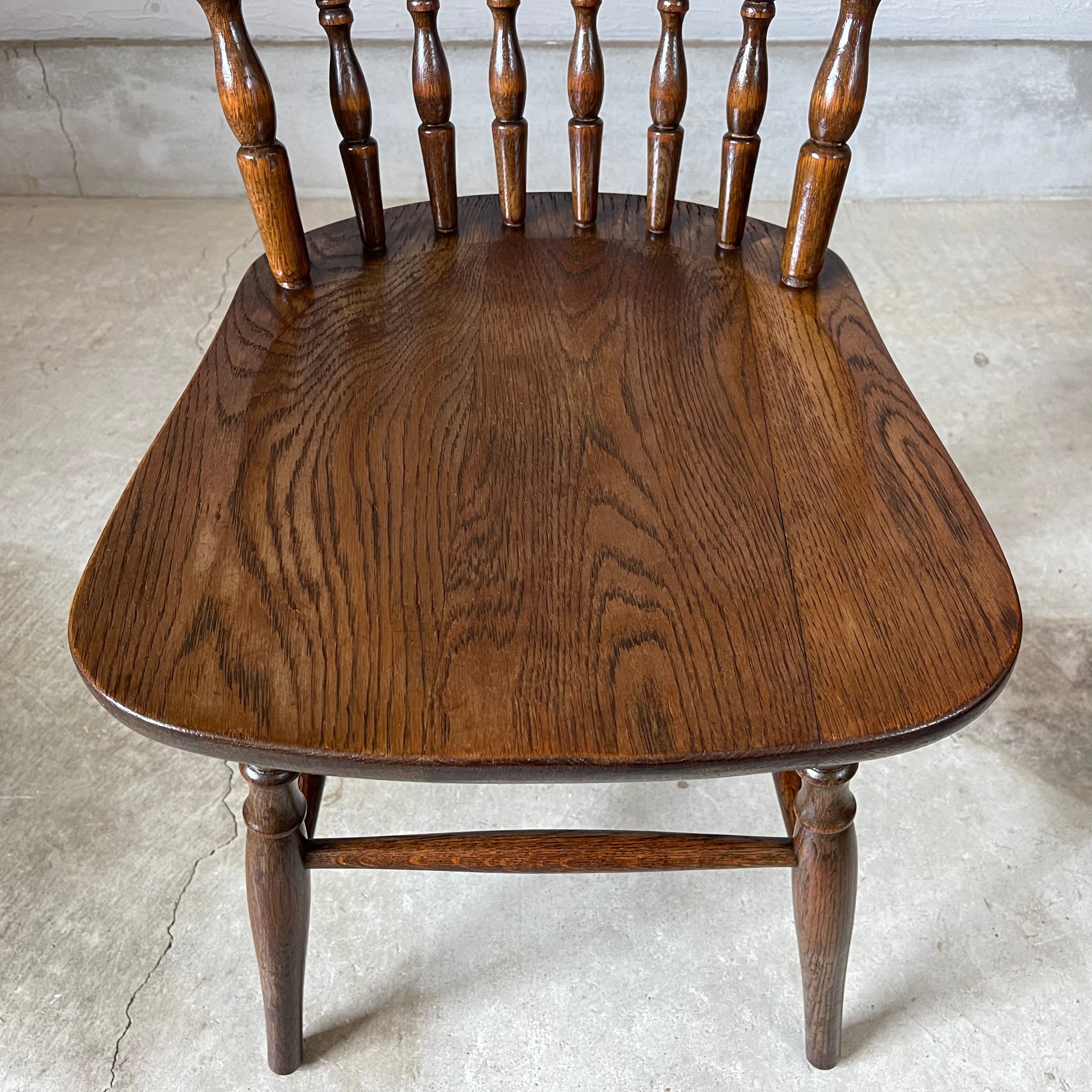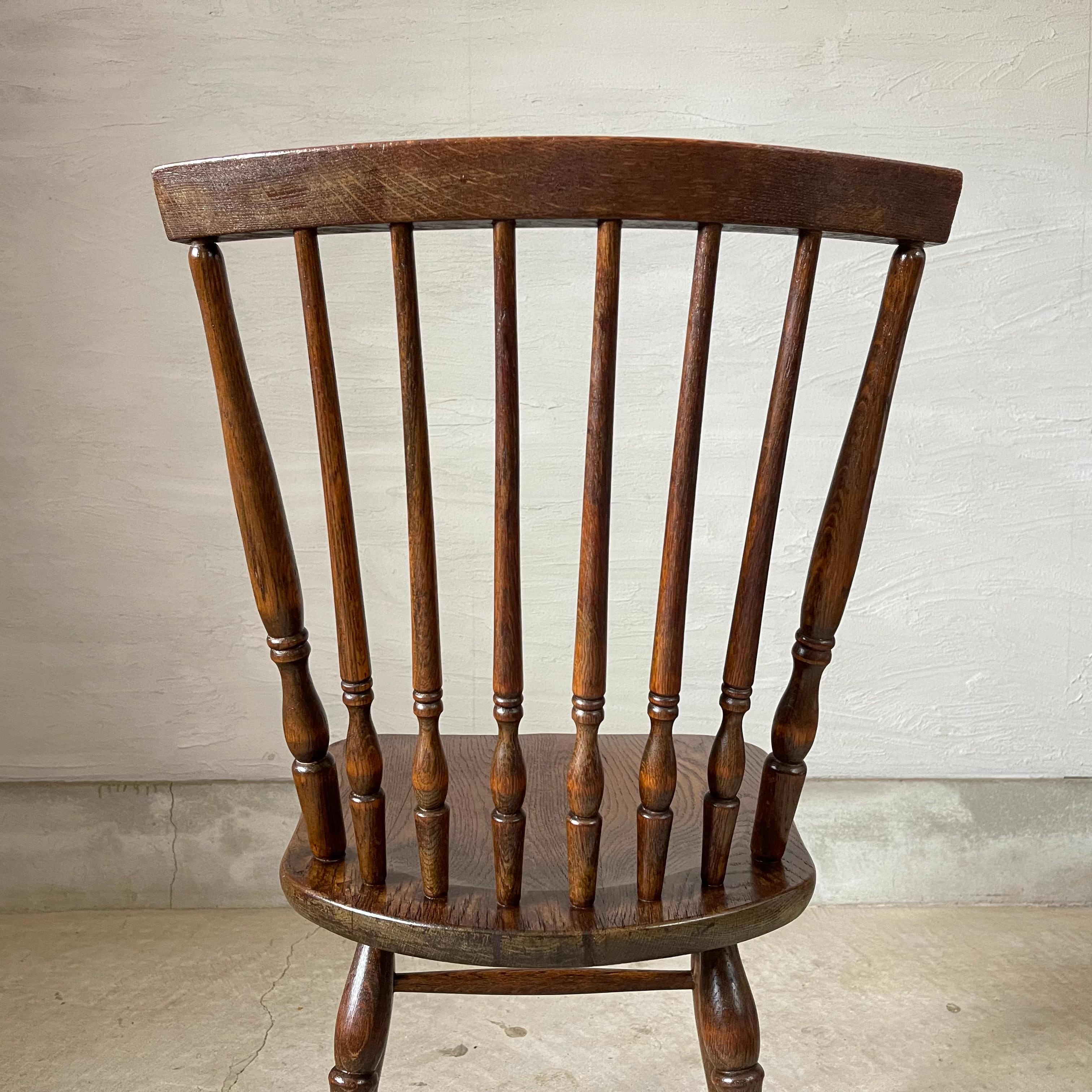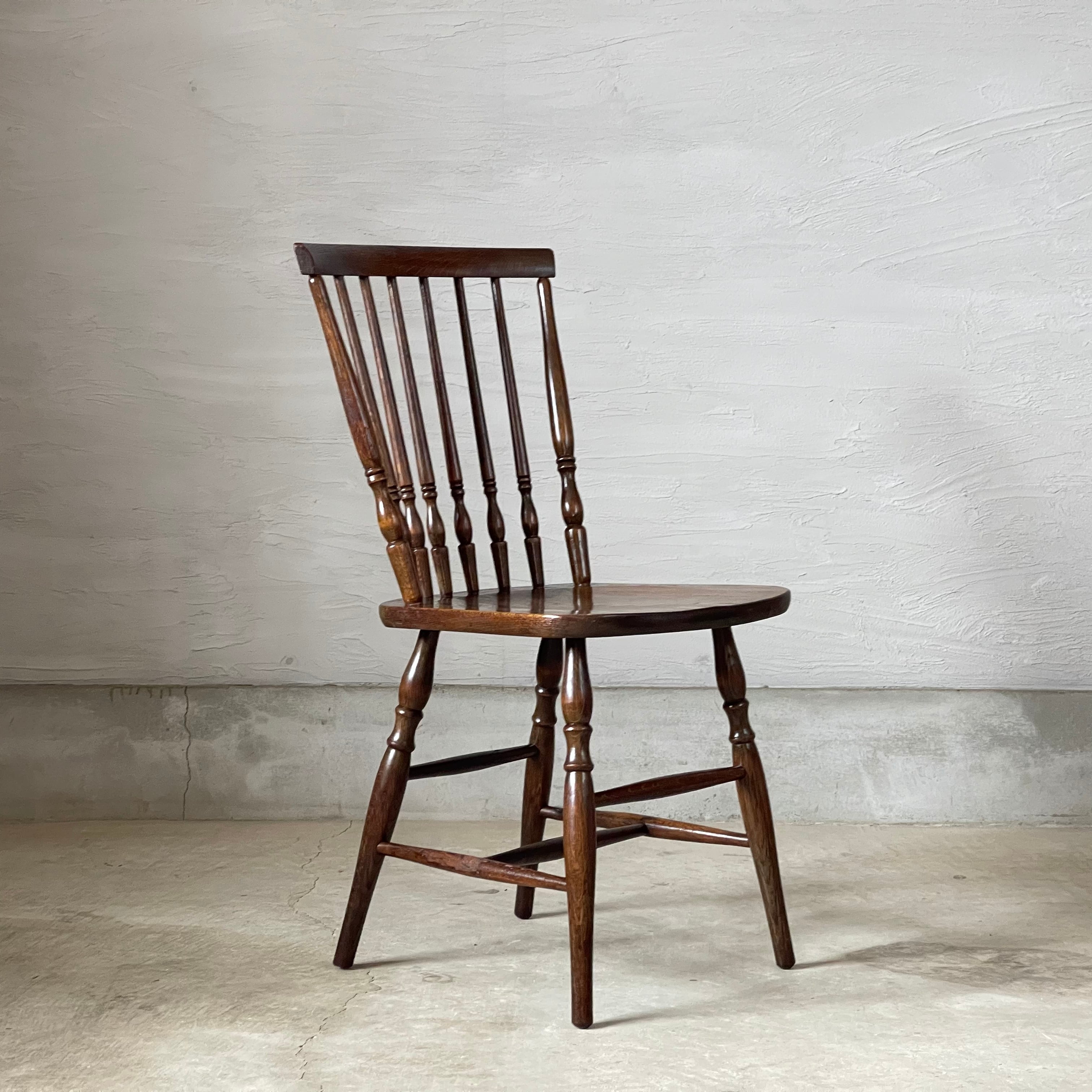 無垢材の深みのある経年変化と脚や背もたれに施されたろくろ飾りが魅力的な古いウィンザーチェアです。