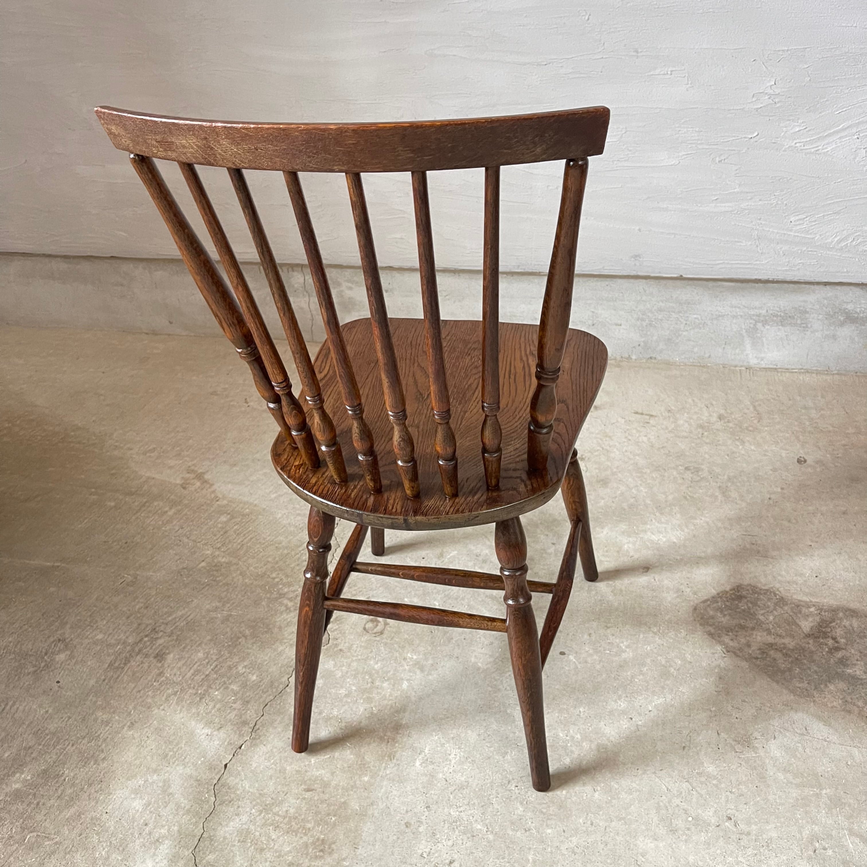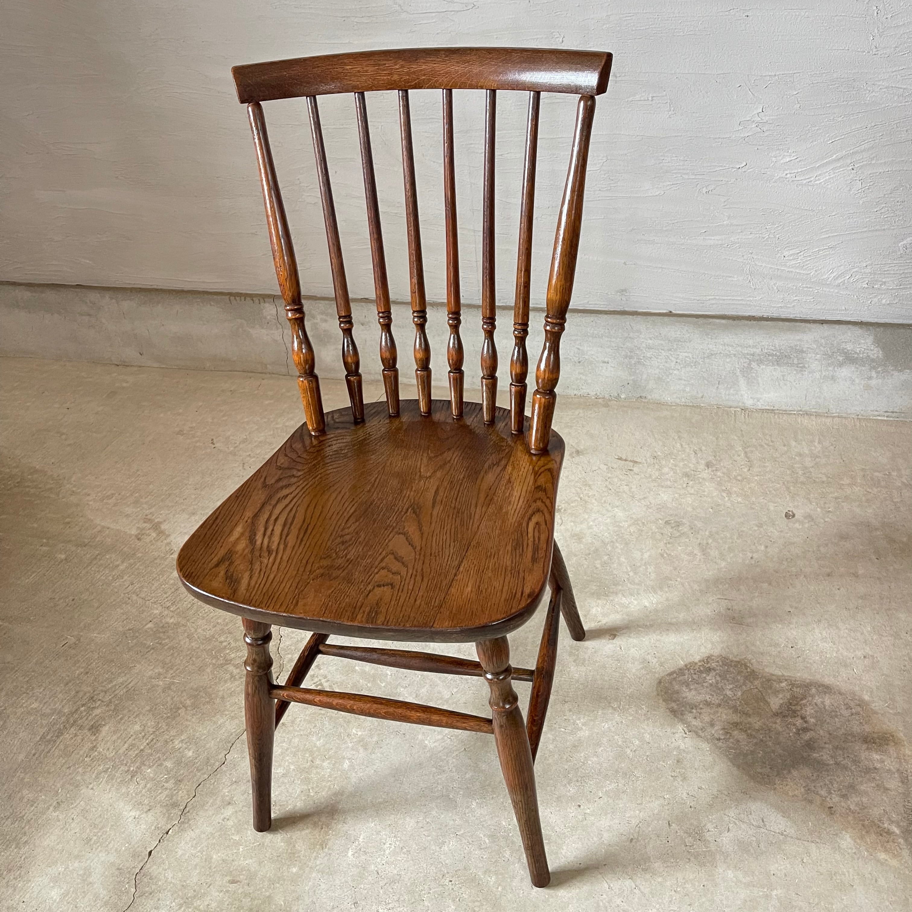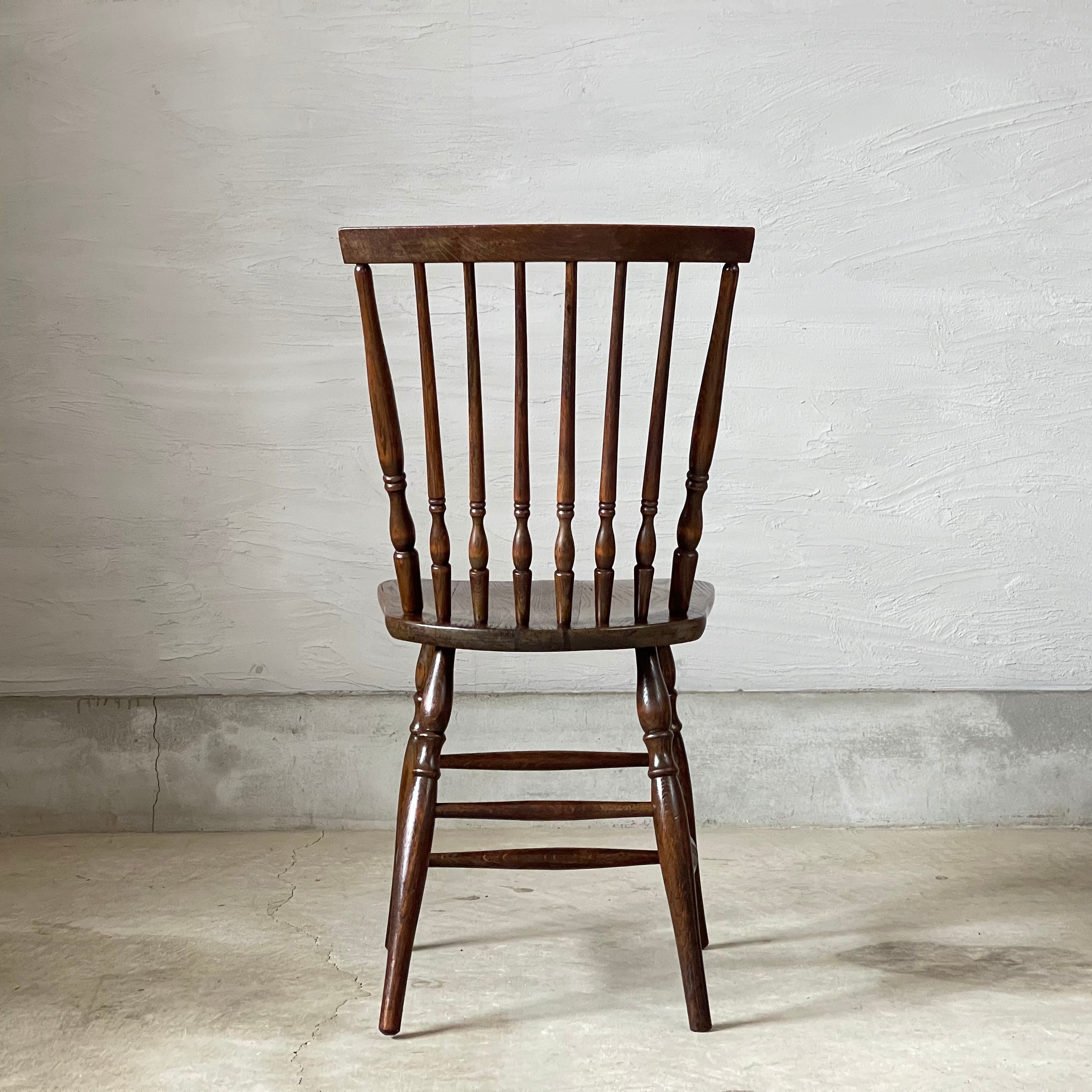 無垢材の深みのある経年変化と脚や背もたれに施されたろくろ飾りが魅力的な古いウィンザーチェアです。