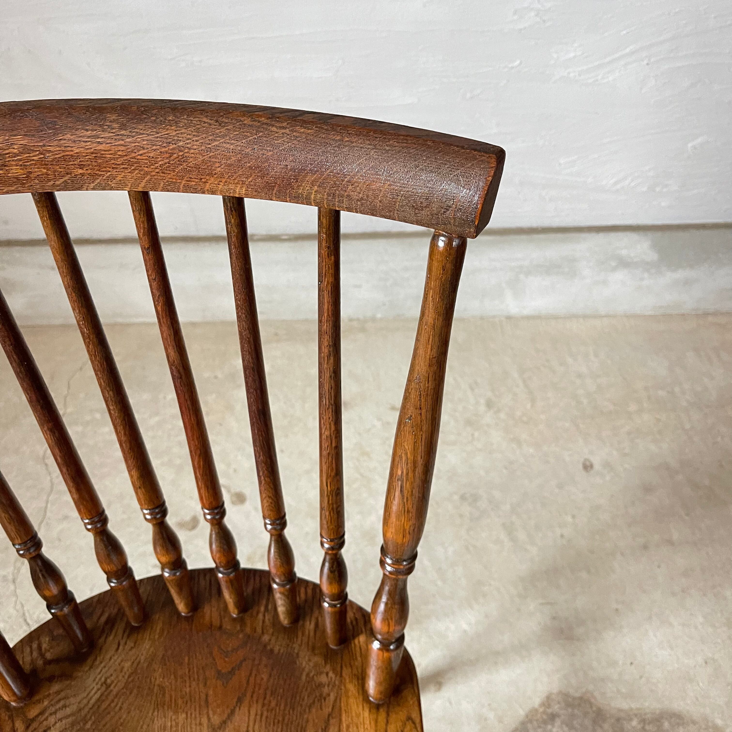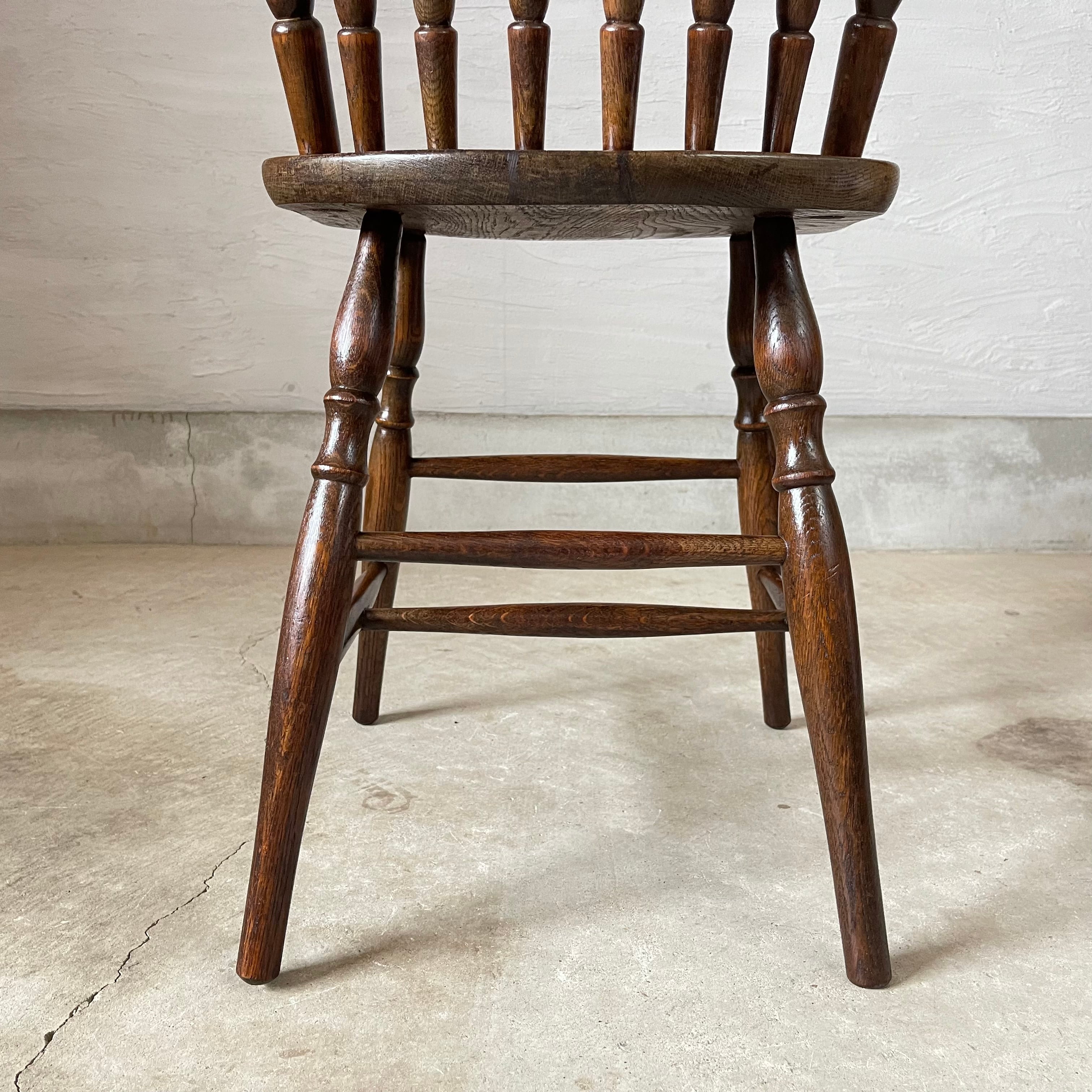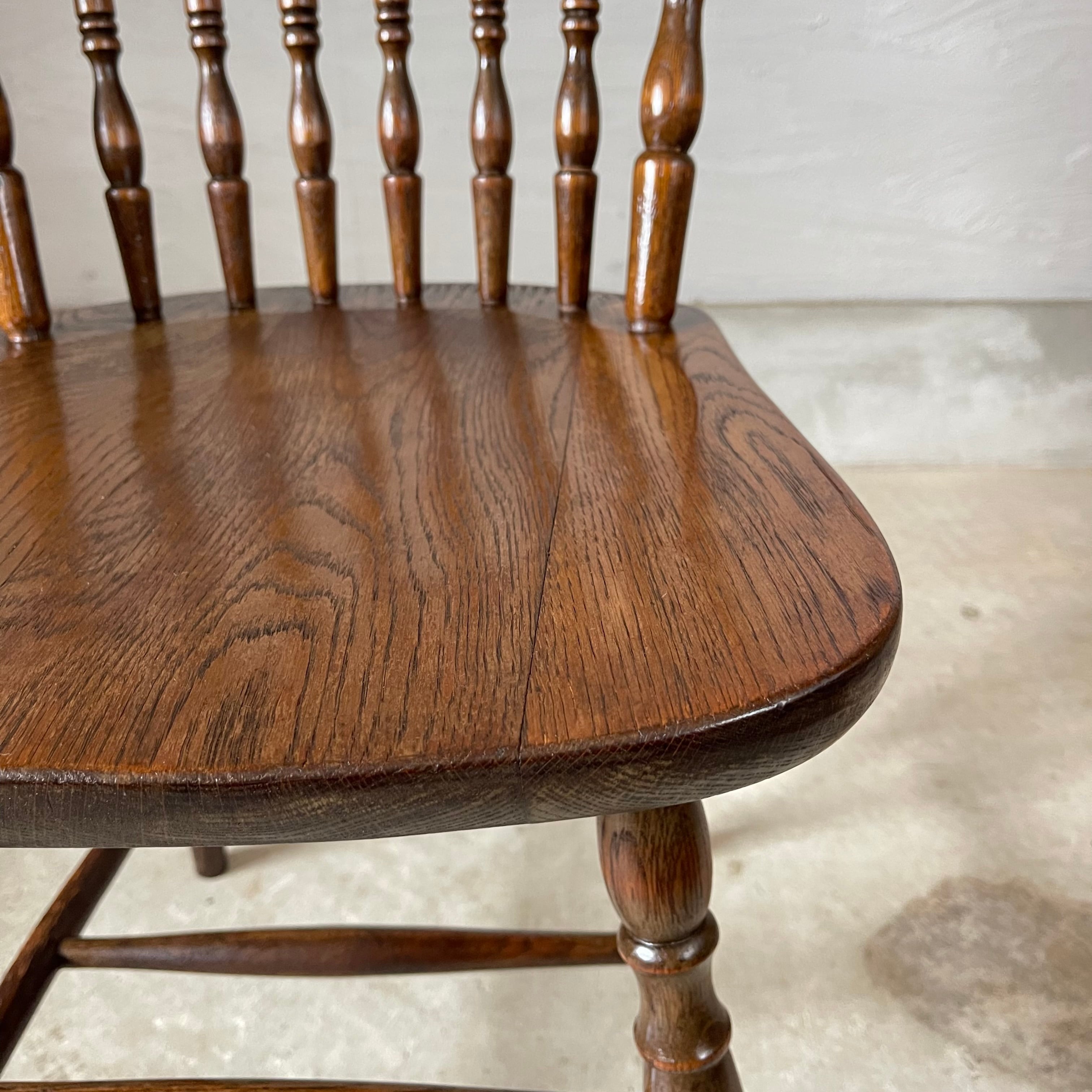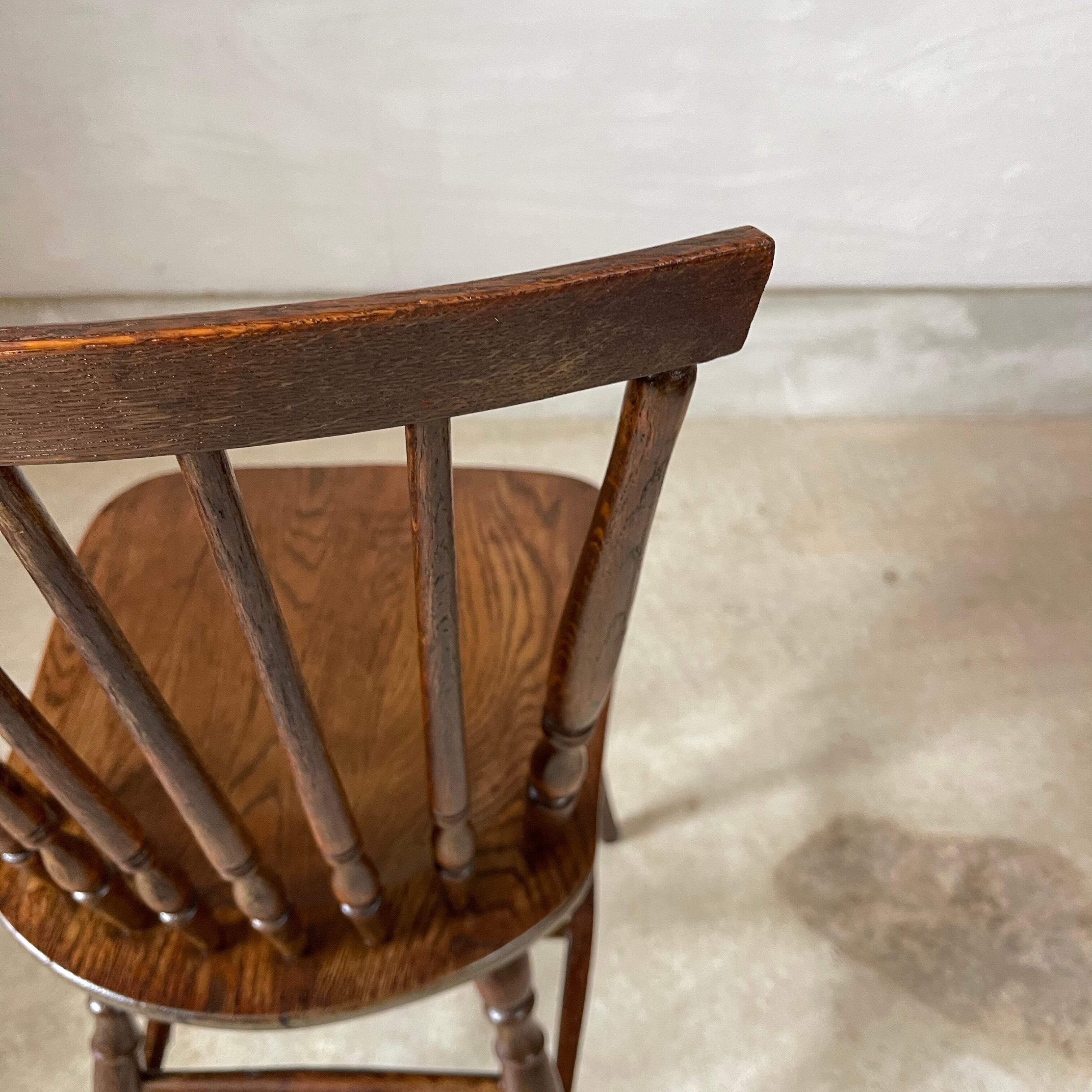 無垢材の深みのある経年変化と脚や背もたれに施されたろくろ飾りが魅力的な古いウィンザーチェアです。