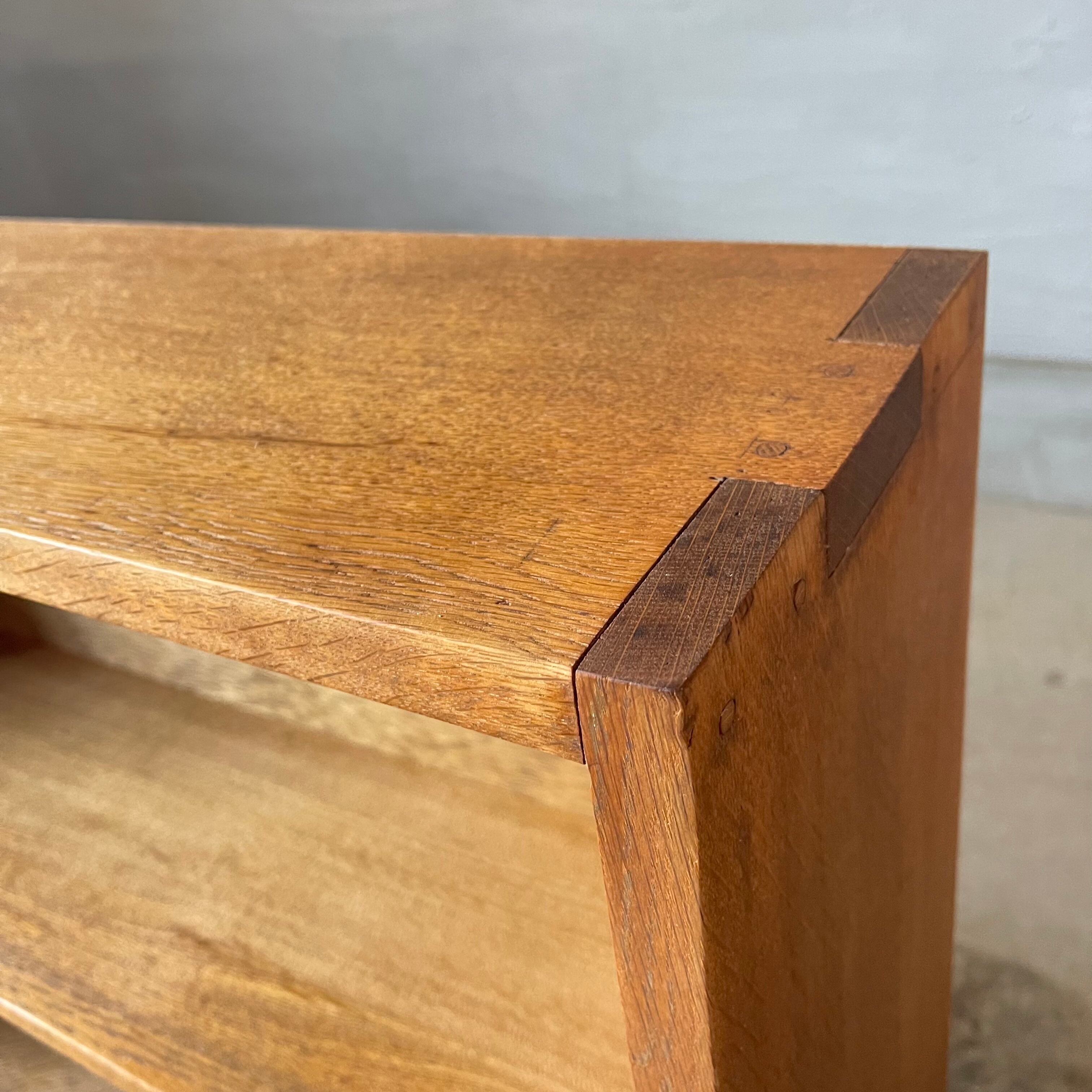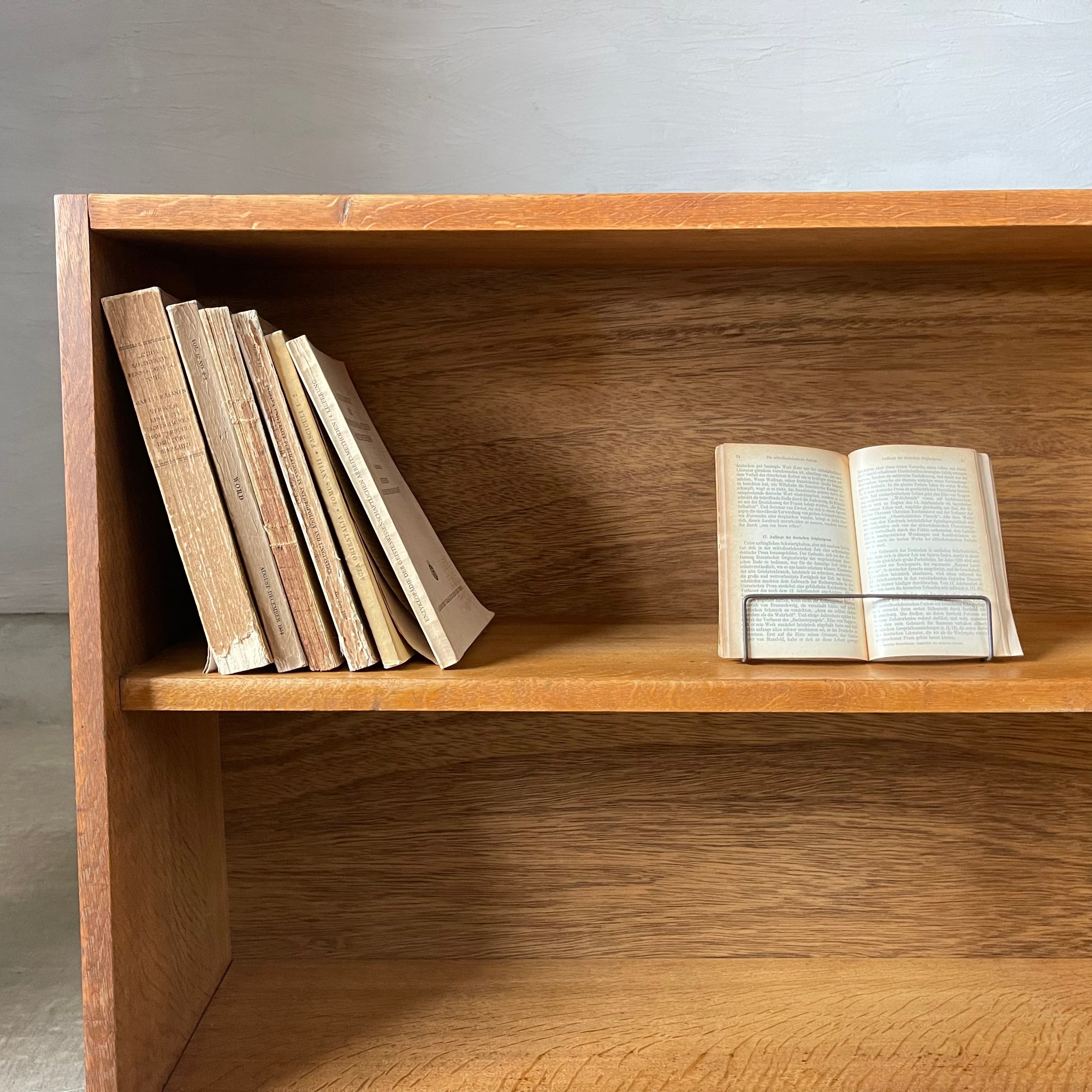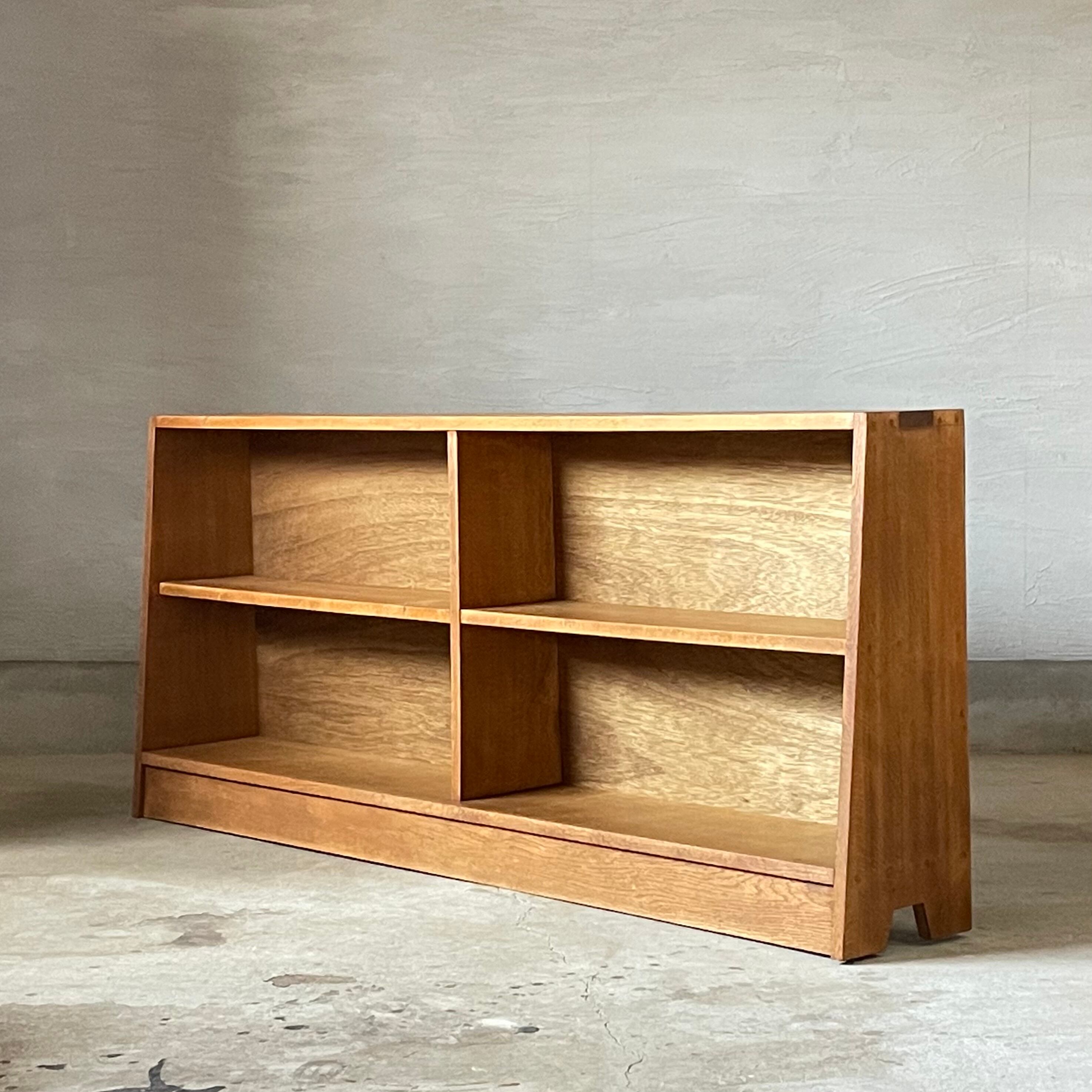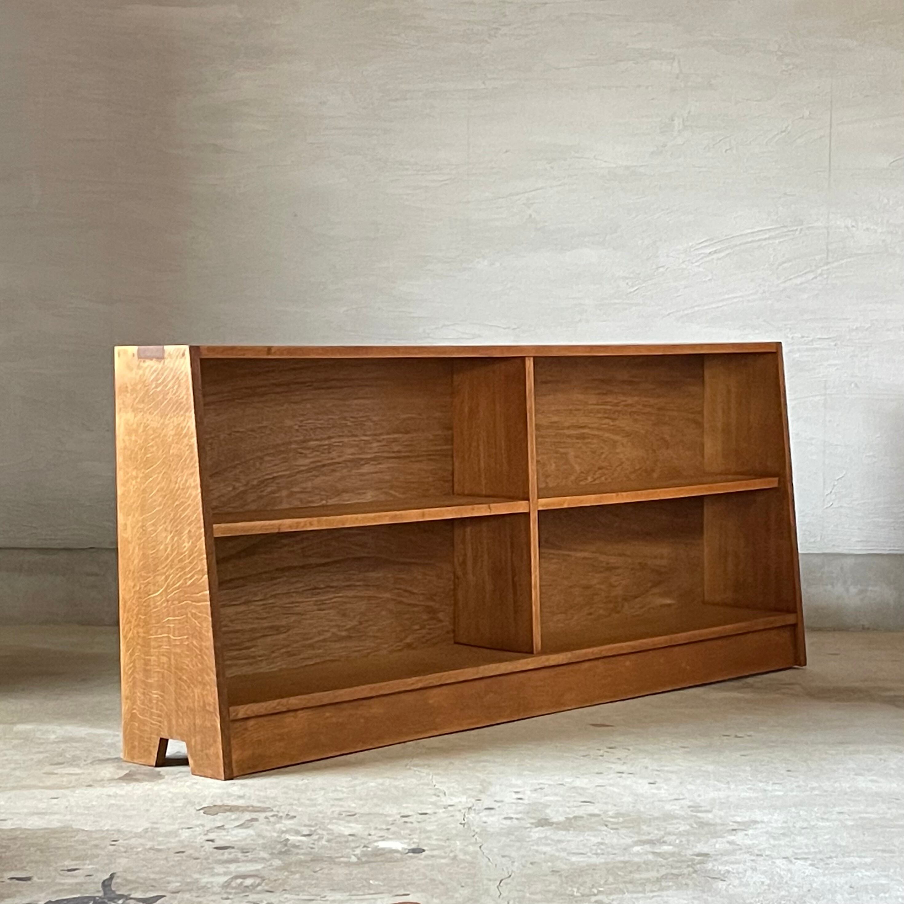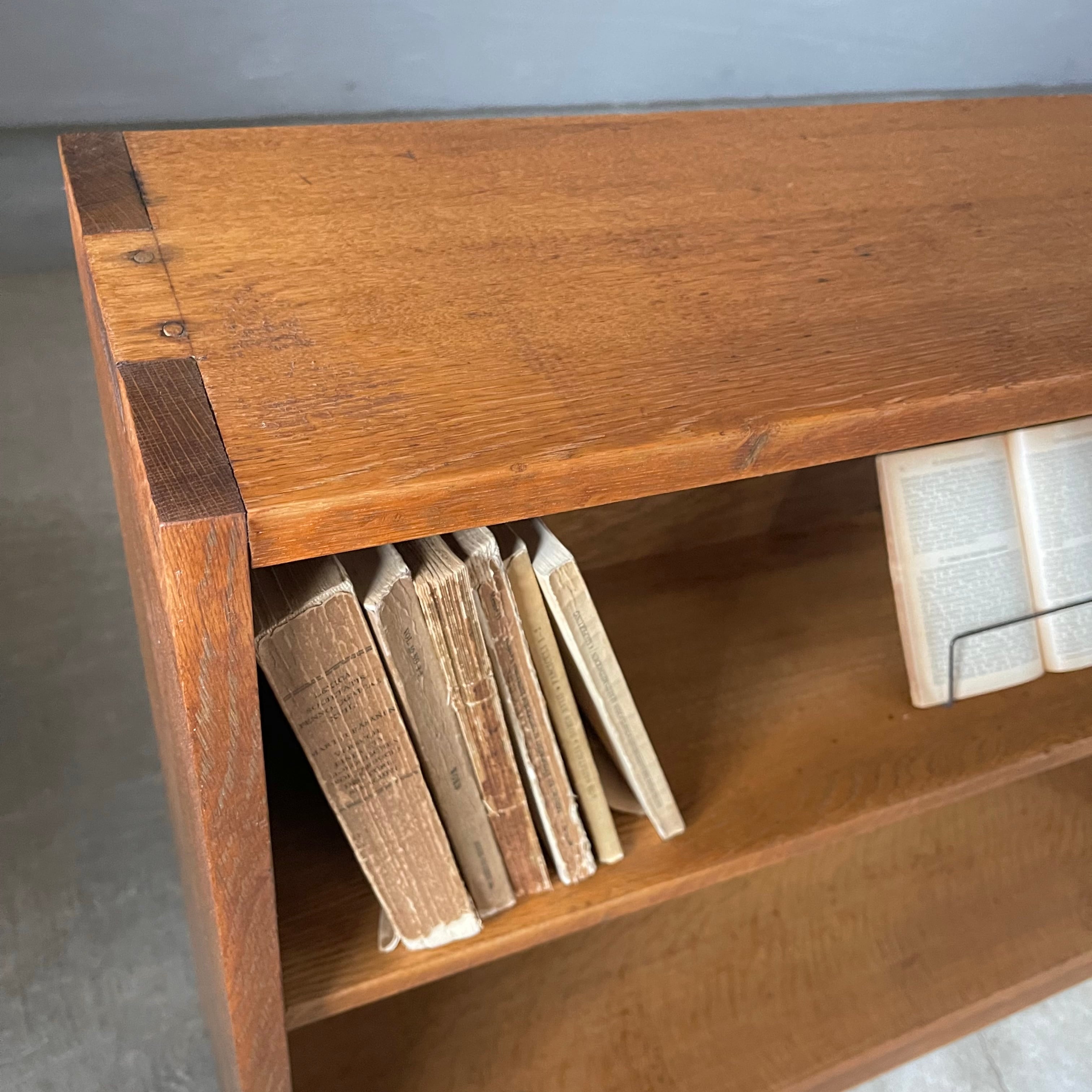 楢材のナチュラルな木味と高い収納力が魅力的な古いブックシェルフです。