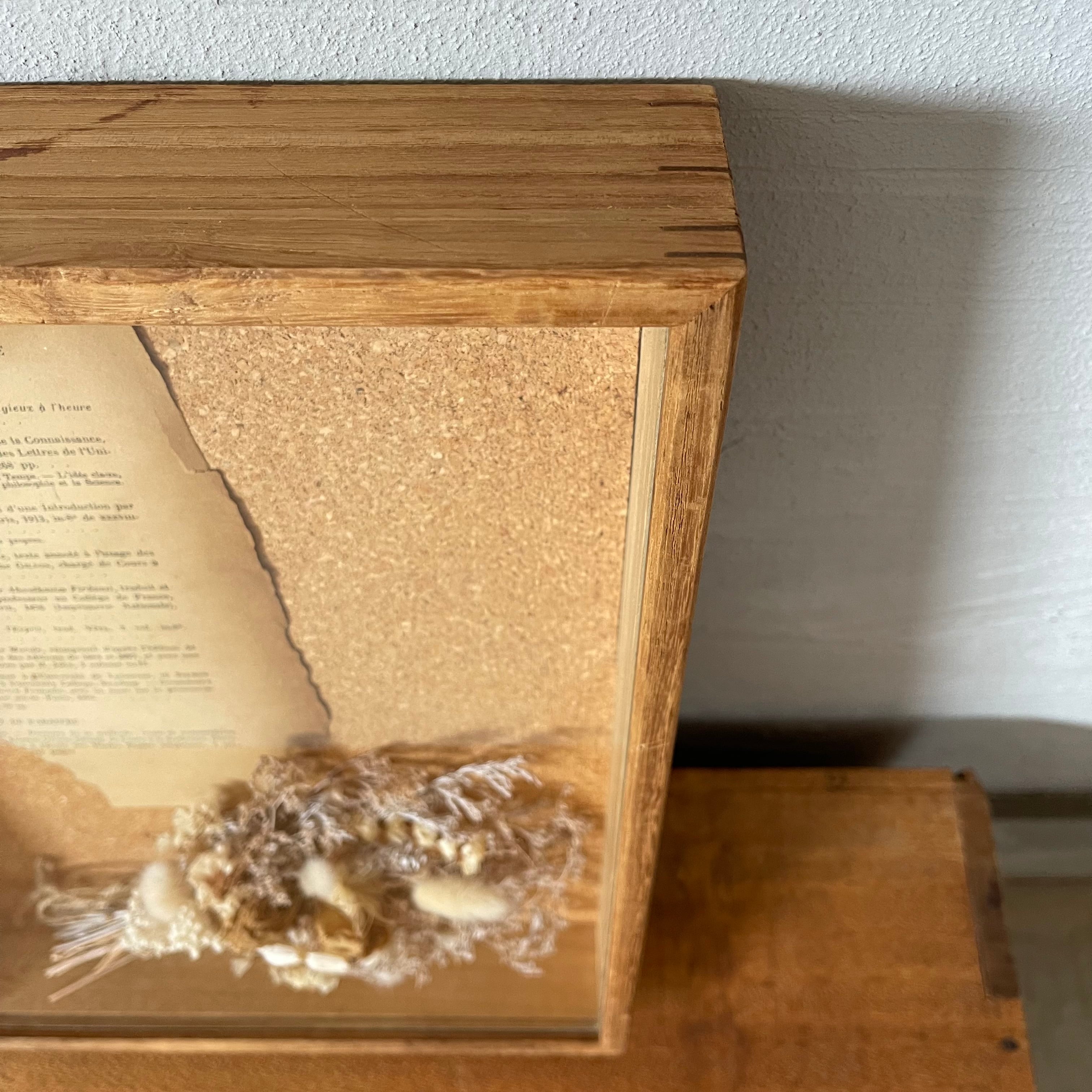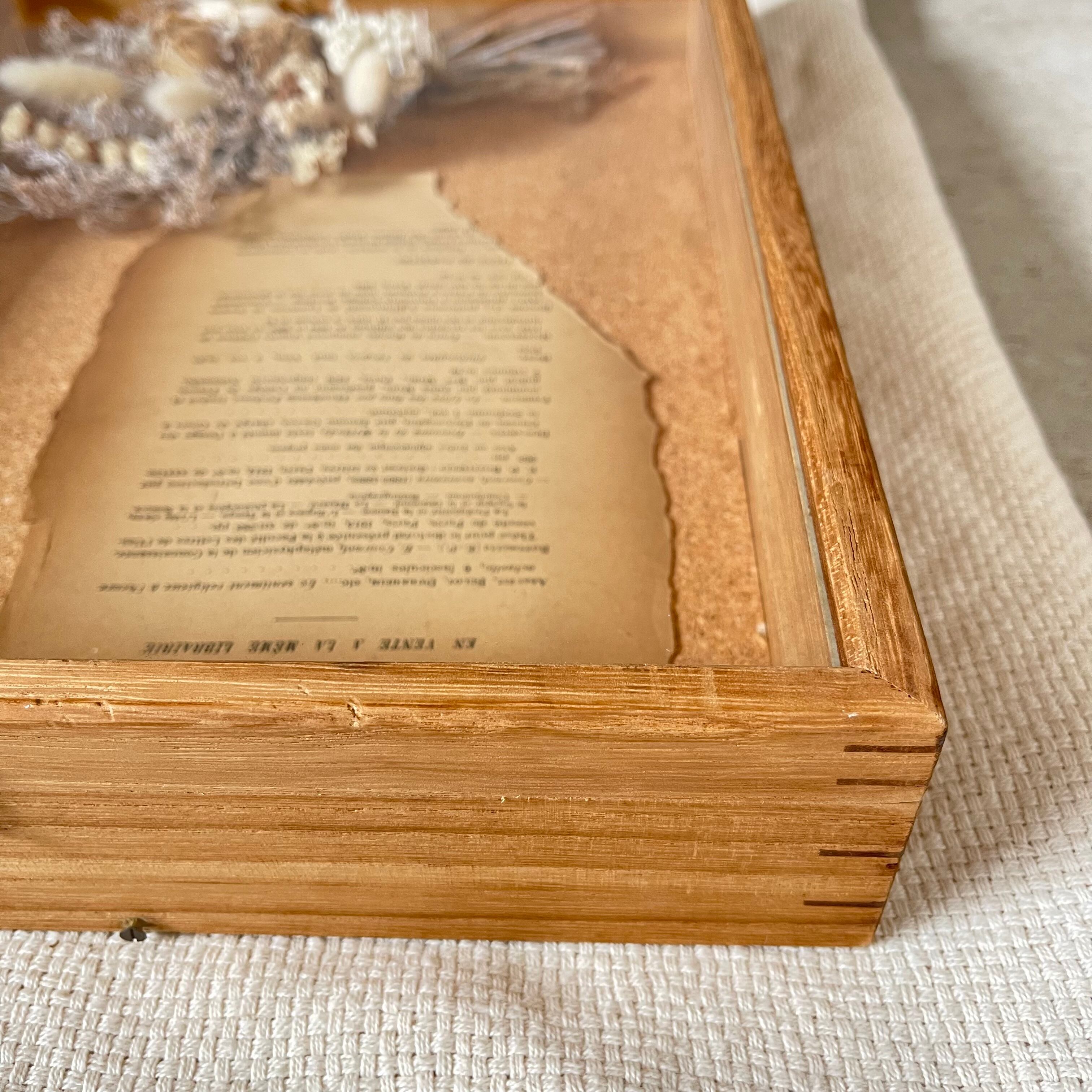古い木材の枯れた雰囲気と木枠のガラス蓋が美しいガラスケースです。