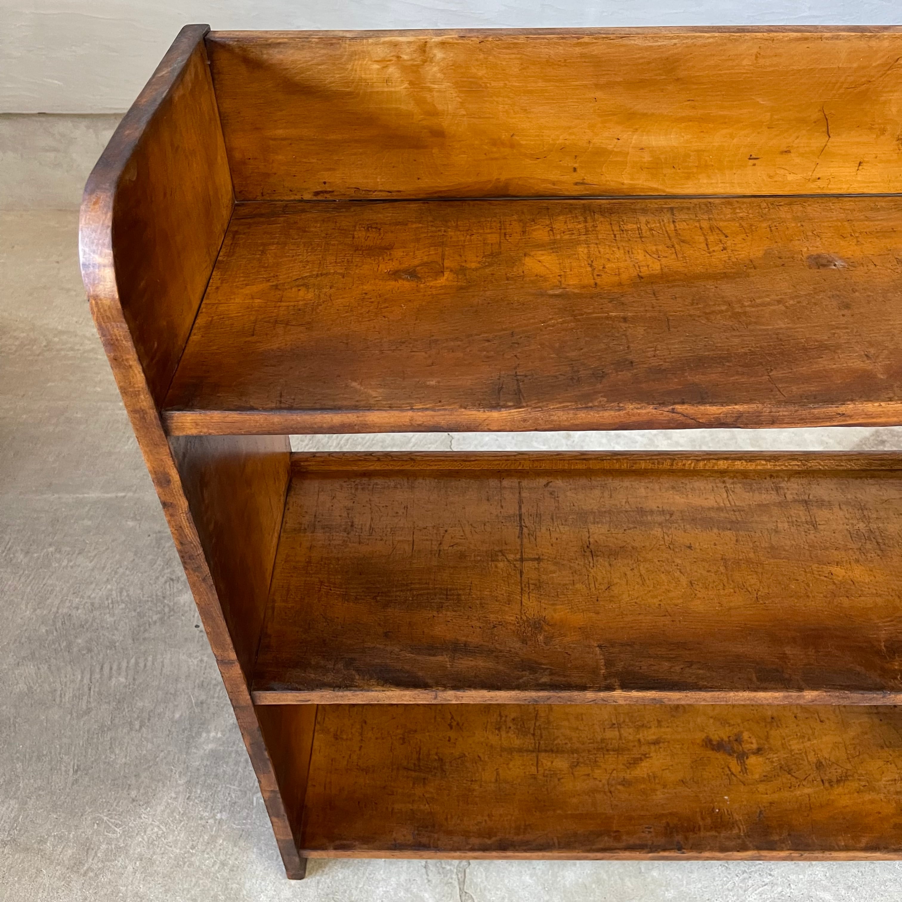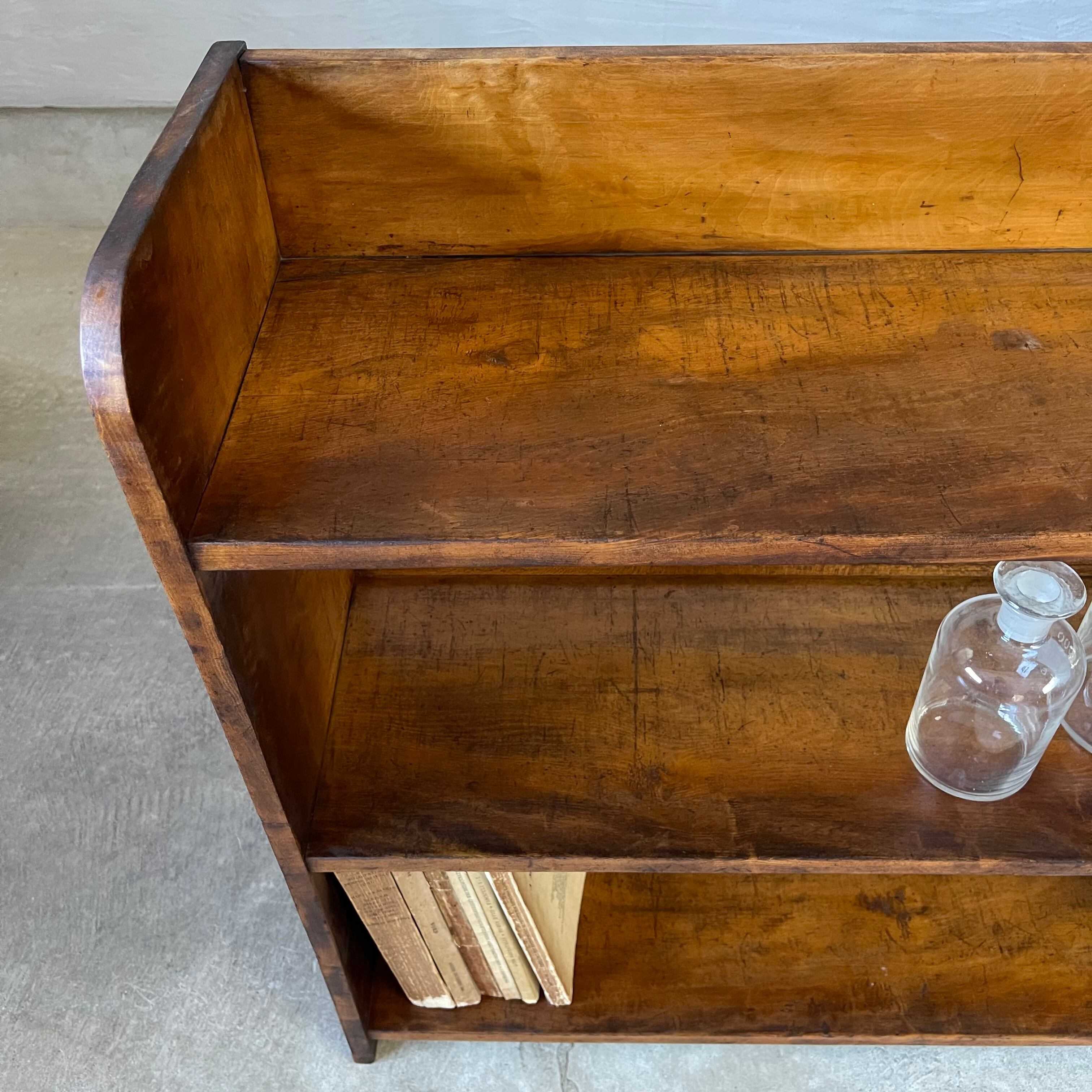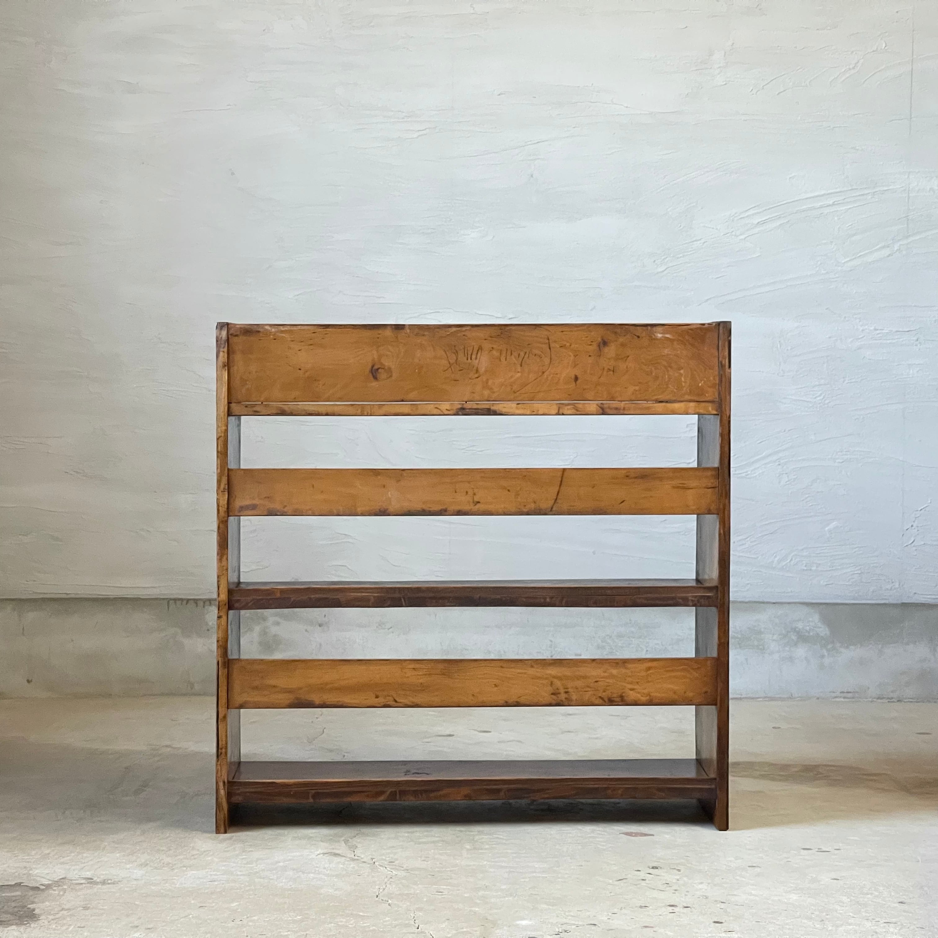 無垢材の深みのある経年変化とすっきりとした背板が美しい3段のブックシェルフです。