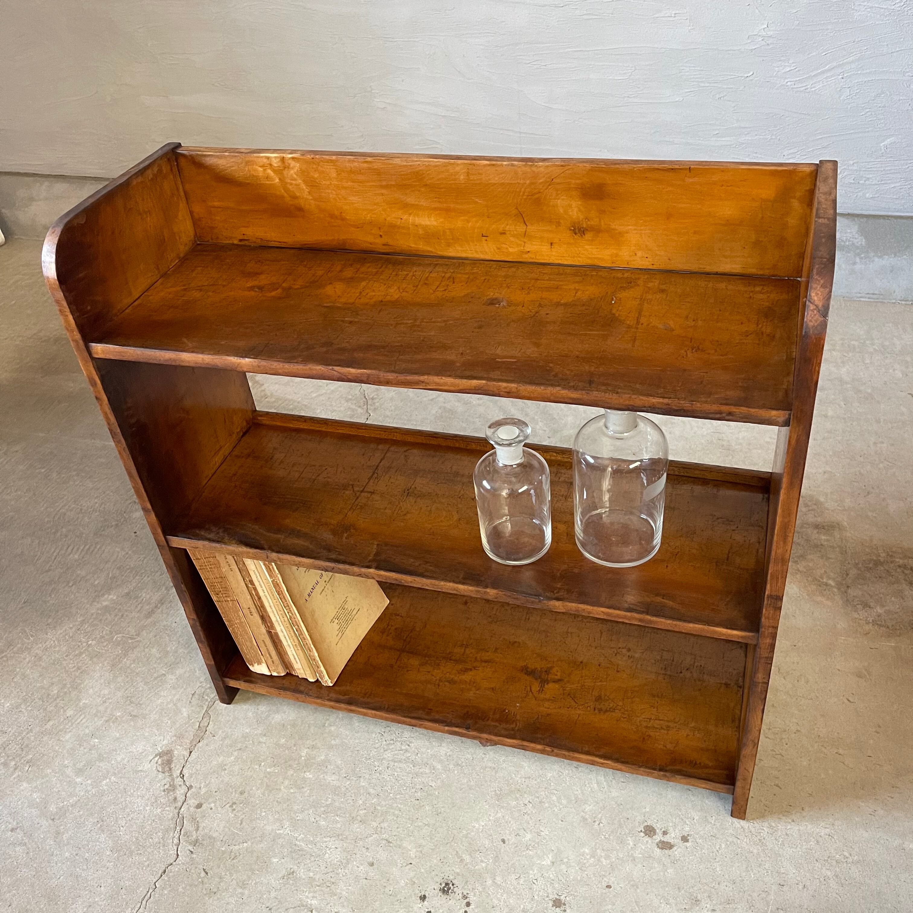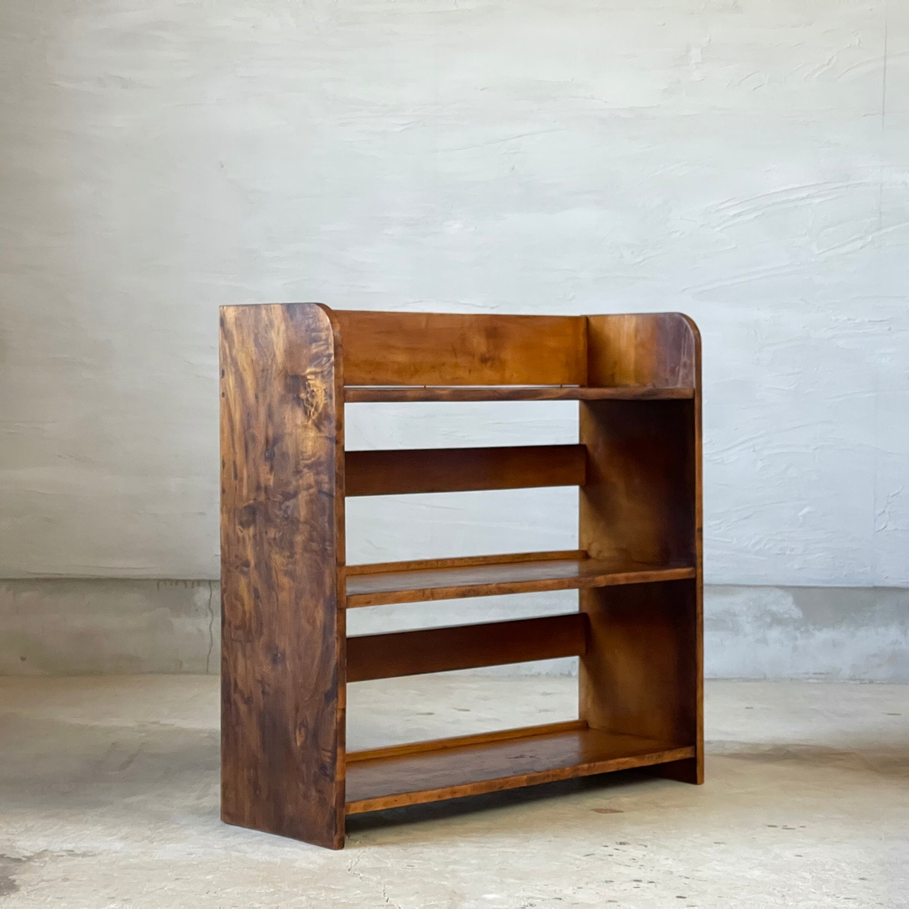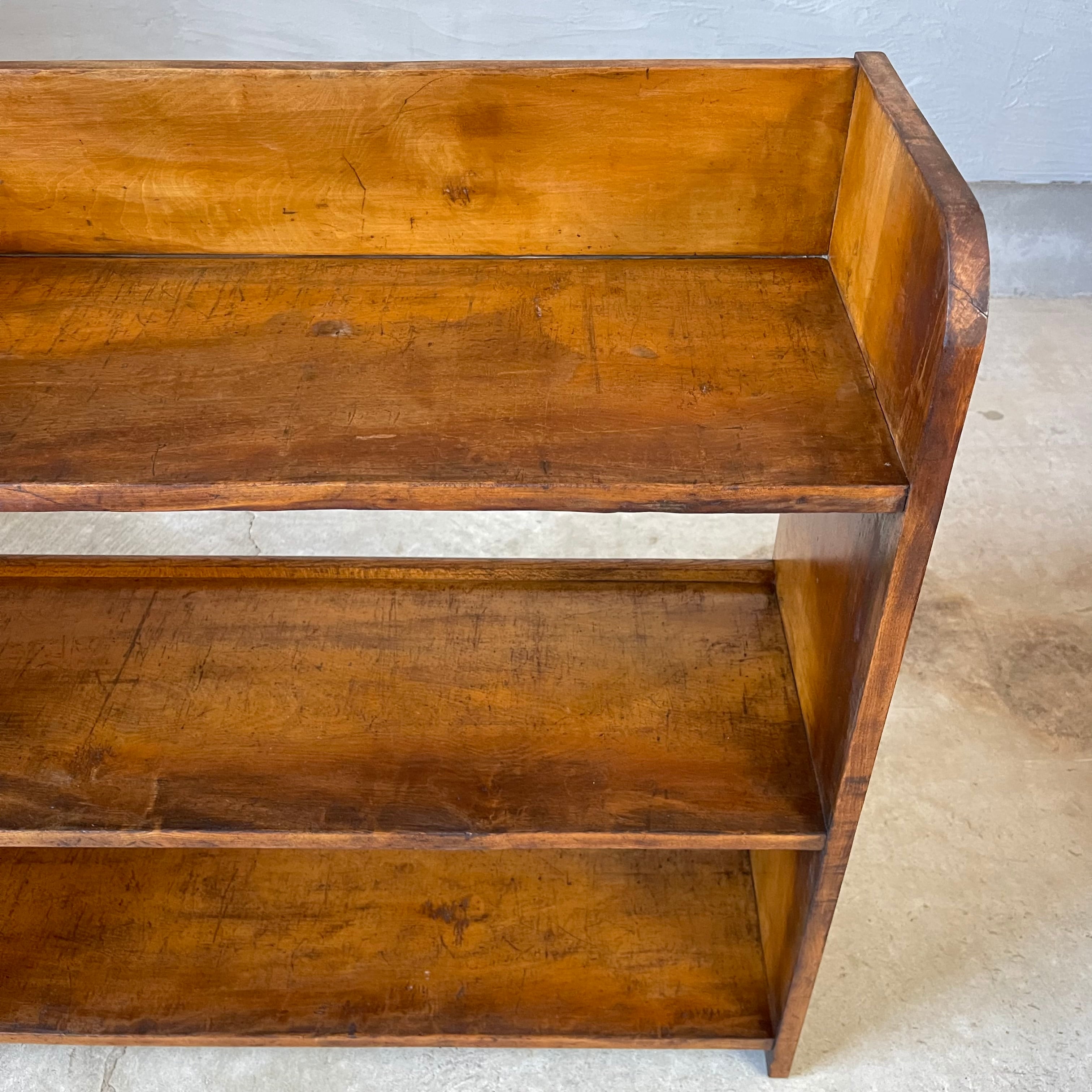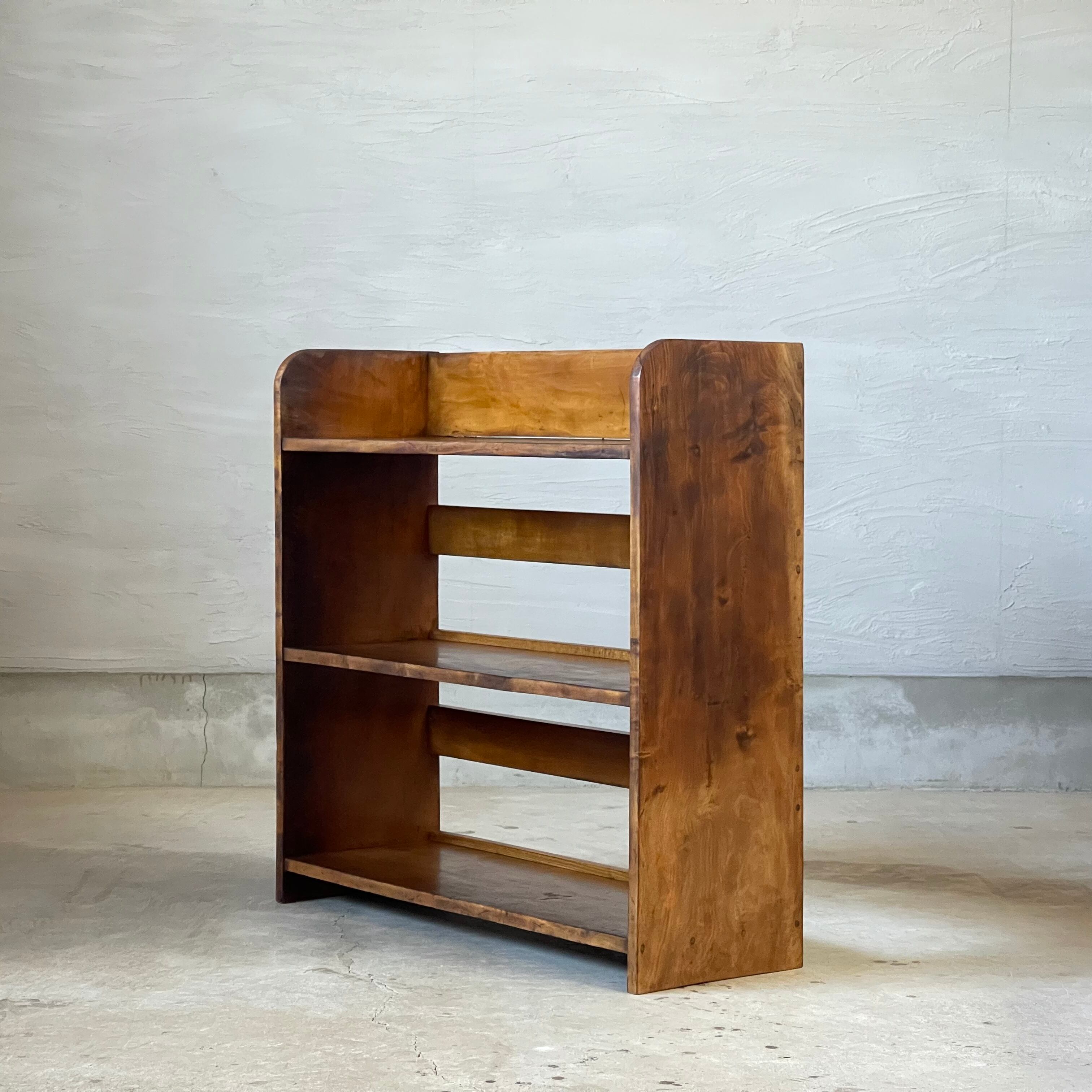 無垢材の深みのある経年変化とすっきりとした背板が美しい3段のブックシェルフです。