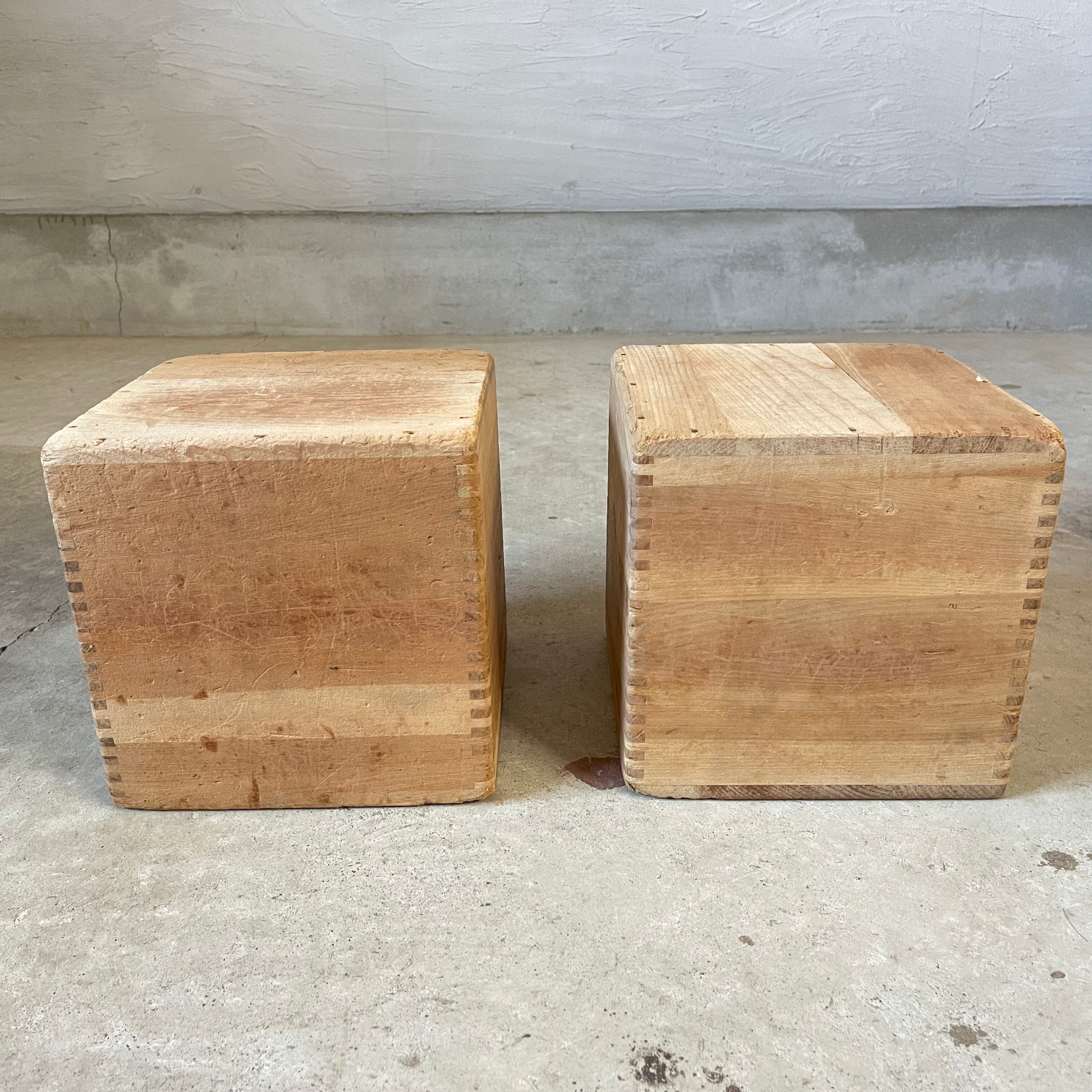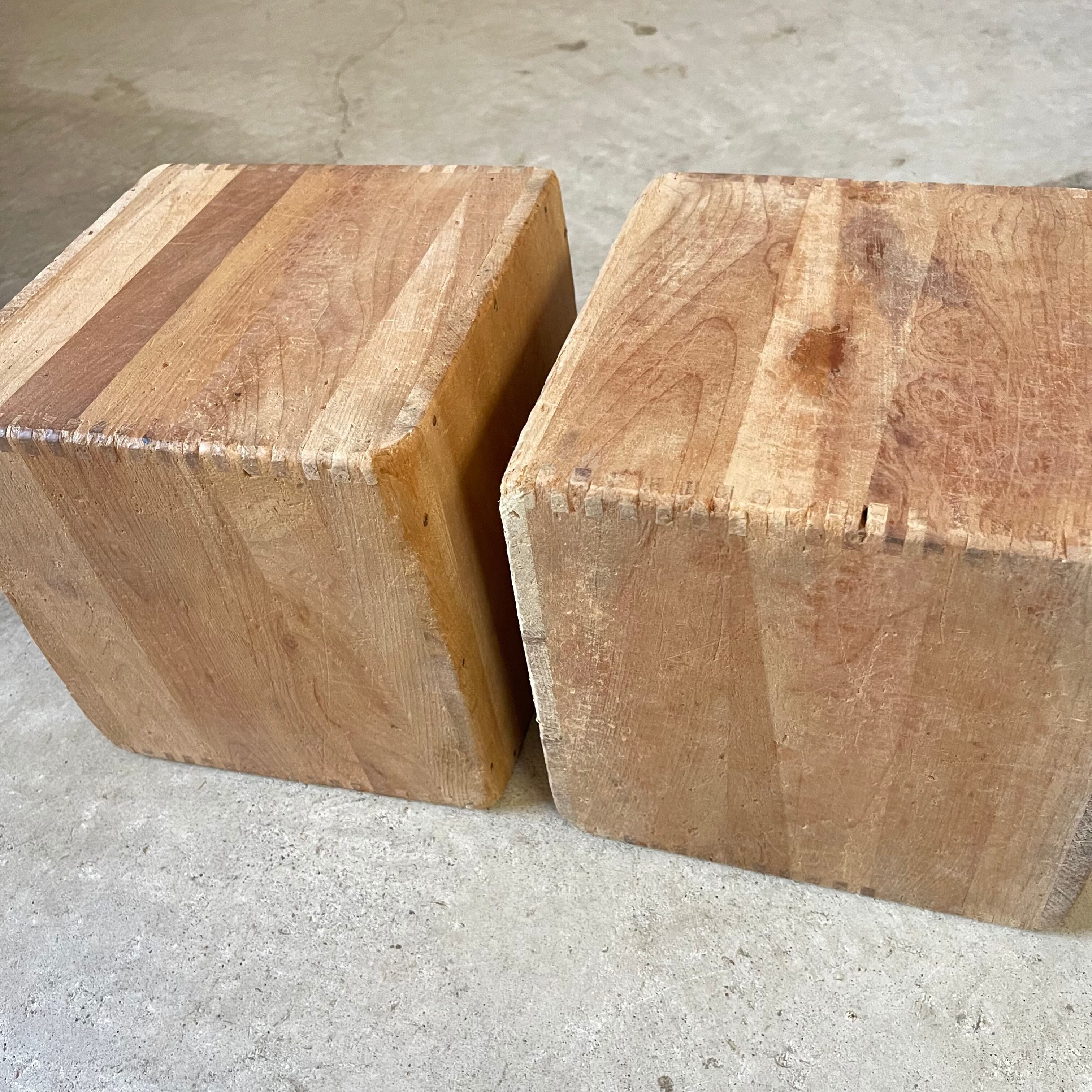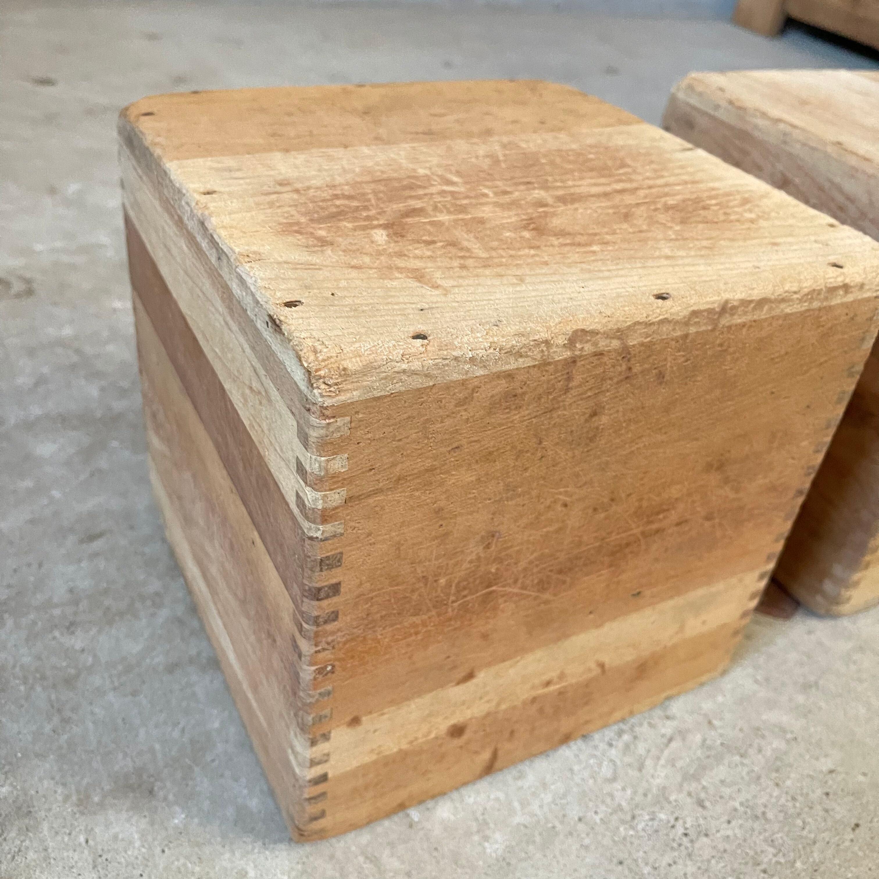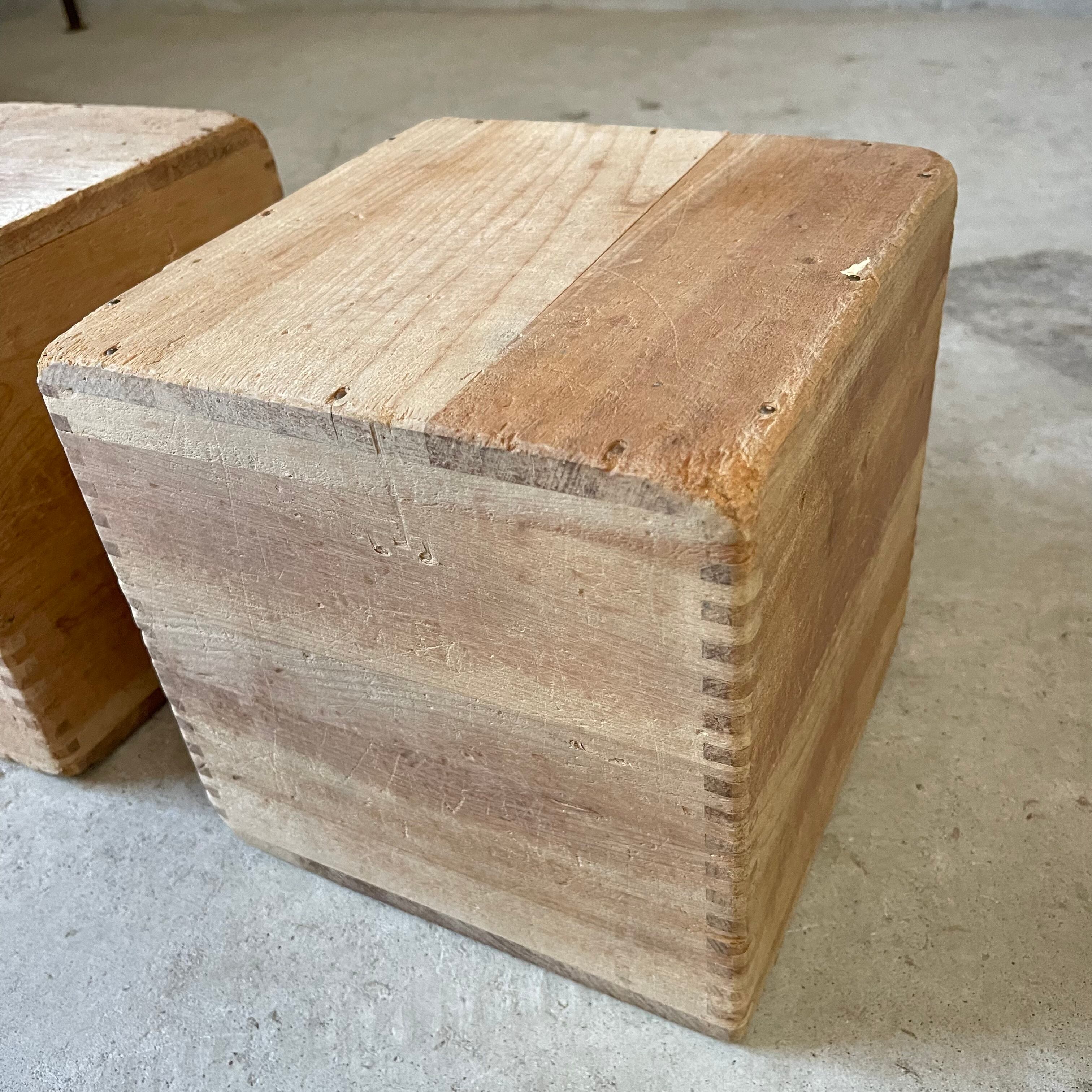 すっかり色の抜けた古木の質感とぴったりと組まれた木材の模様が美しい四角い木のオブジェです。