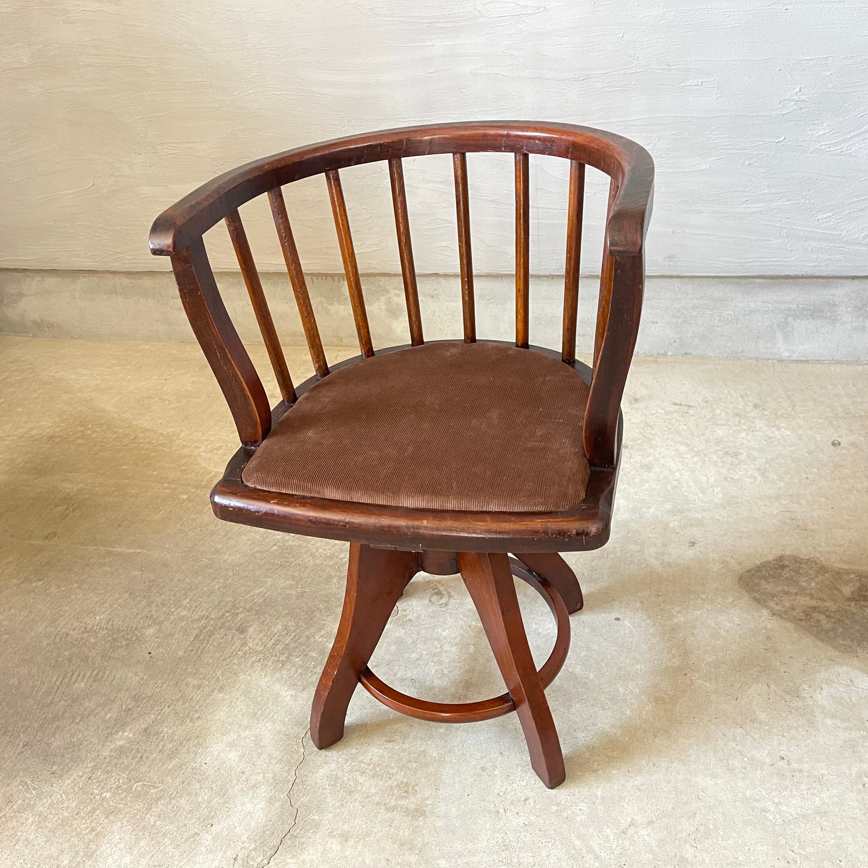 無垢材の温かみのある経年変化と曲木の美しい曲線が魅力的な古い回転椅子です。