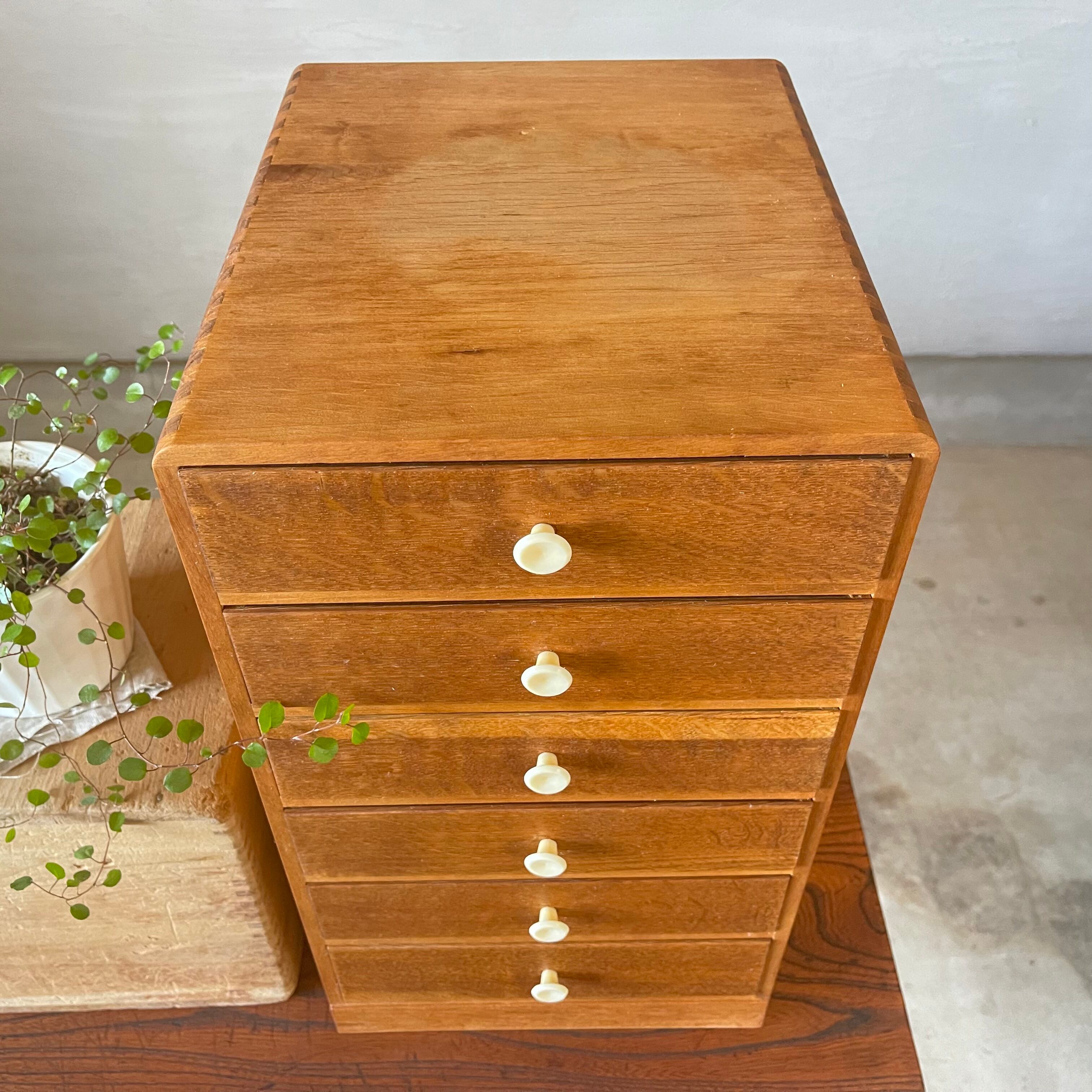 楢材のナチュラルな木味とクリーム色のつまみが可愛らしい6杯の引き出しです。