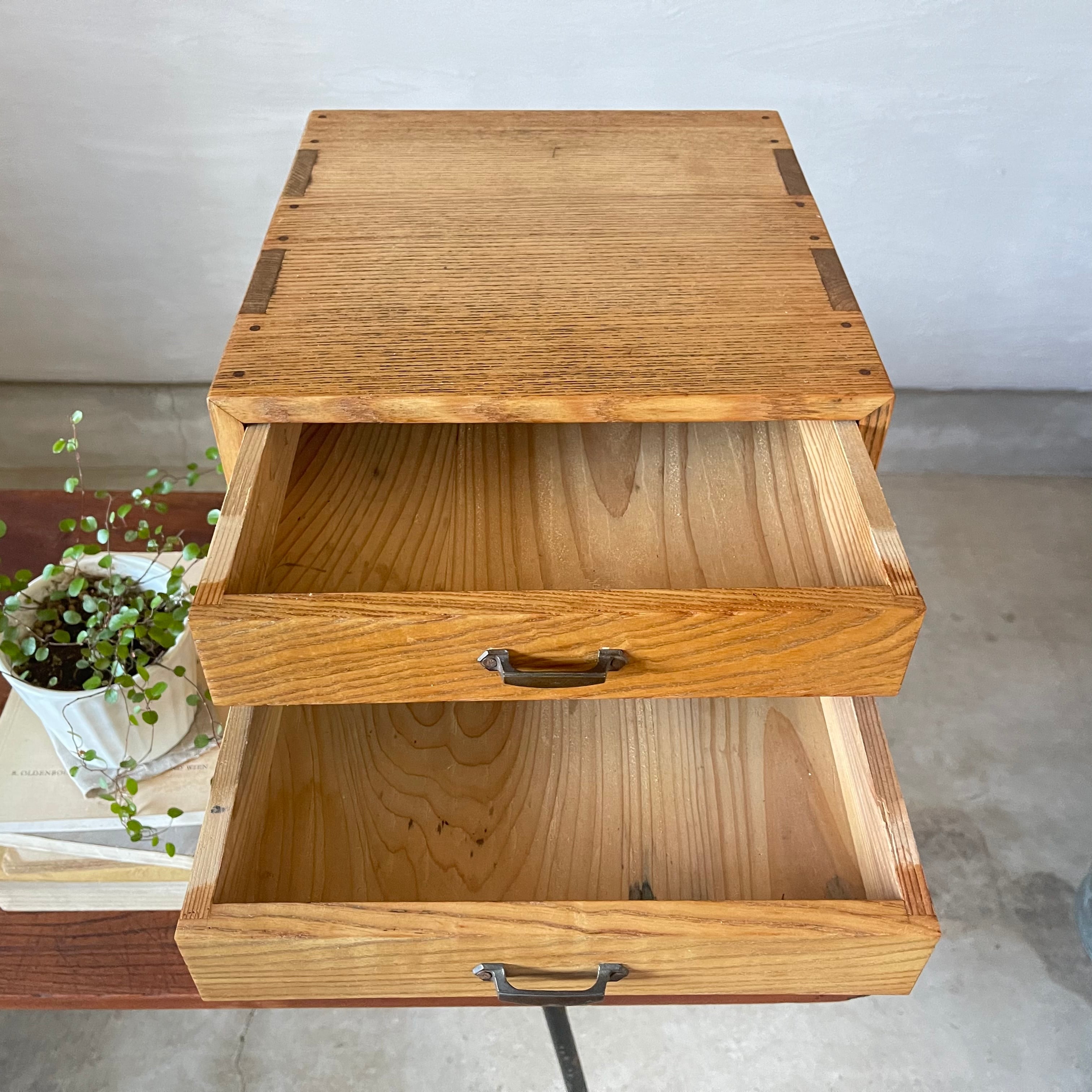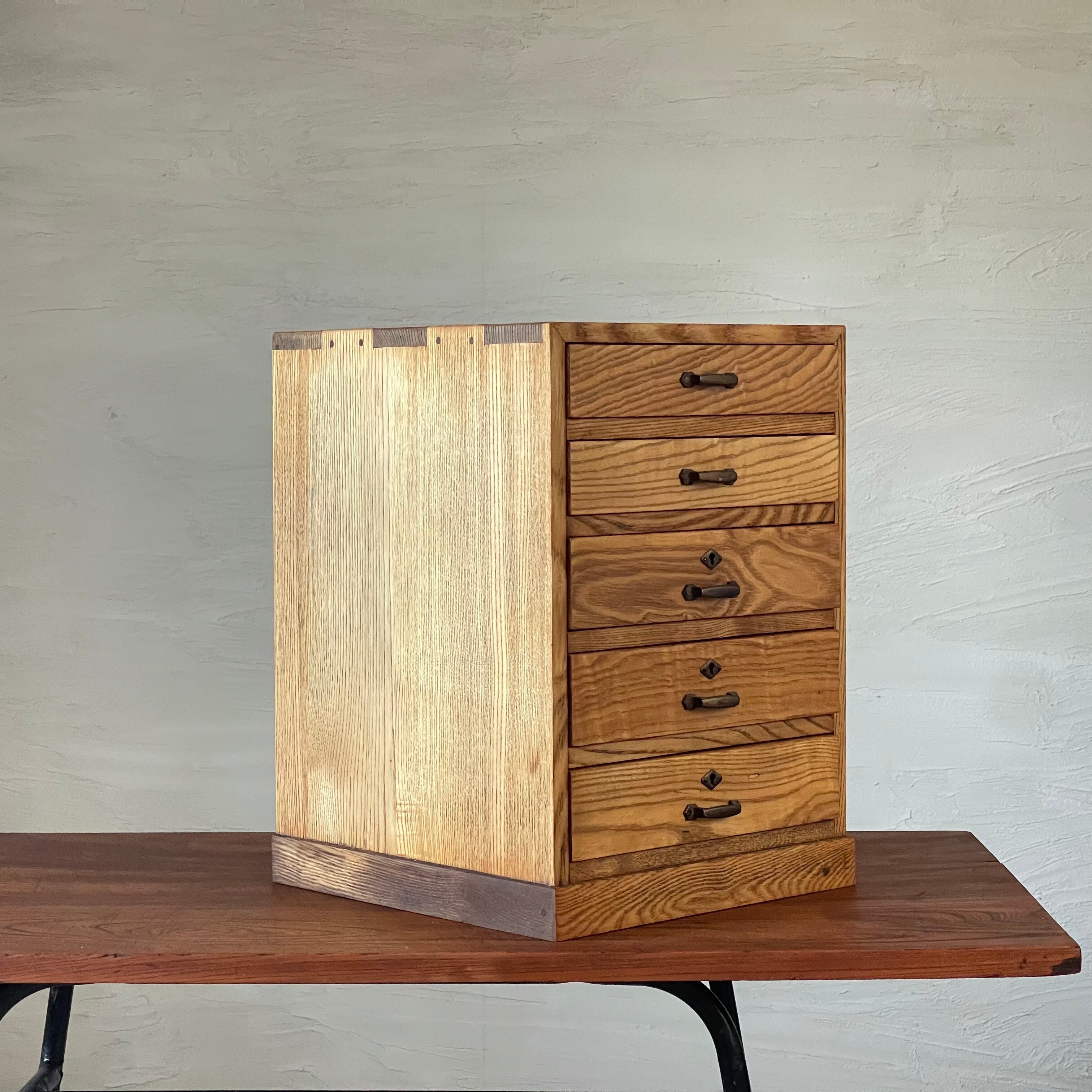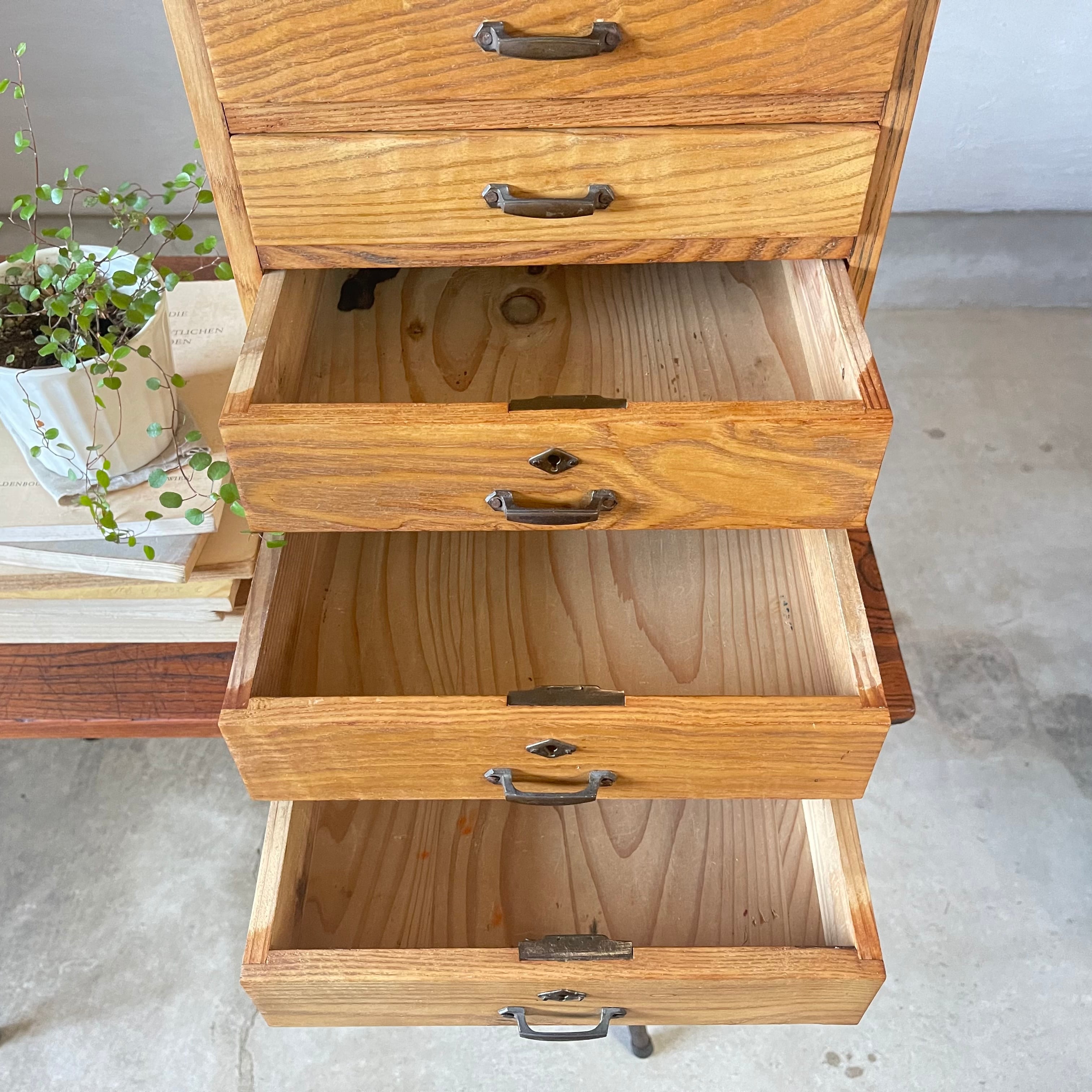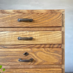 ナチュラルな木味と並んだ真鍮の取手が魅力的な5杯の引き出しです。