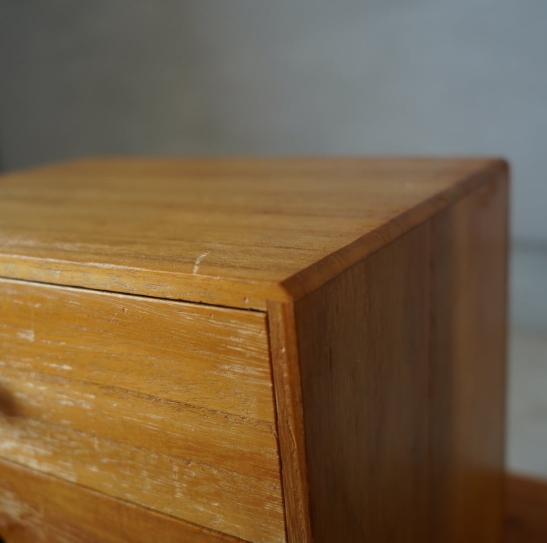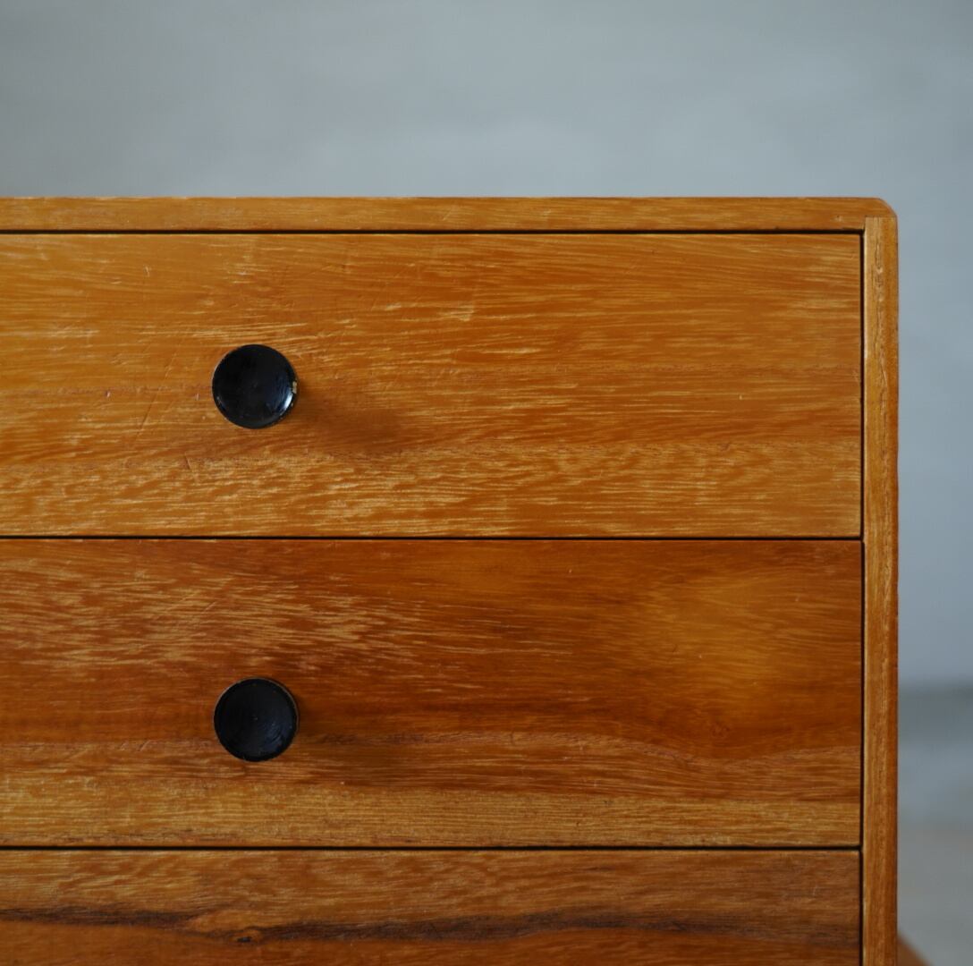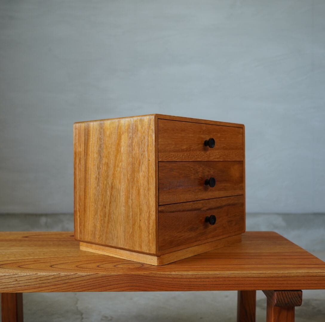 ナチュラルな木味と並んだ黒いつまみが可愛らしい3杯の小引き出しです。