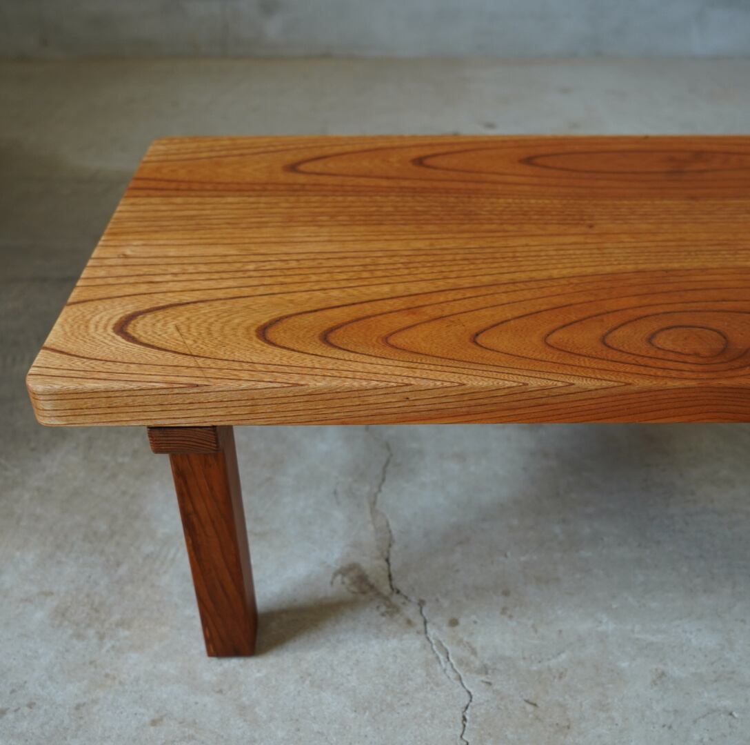 欅の木の流れるような木目とナチュラルな色味が美しいコーヒーテーブルです。