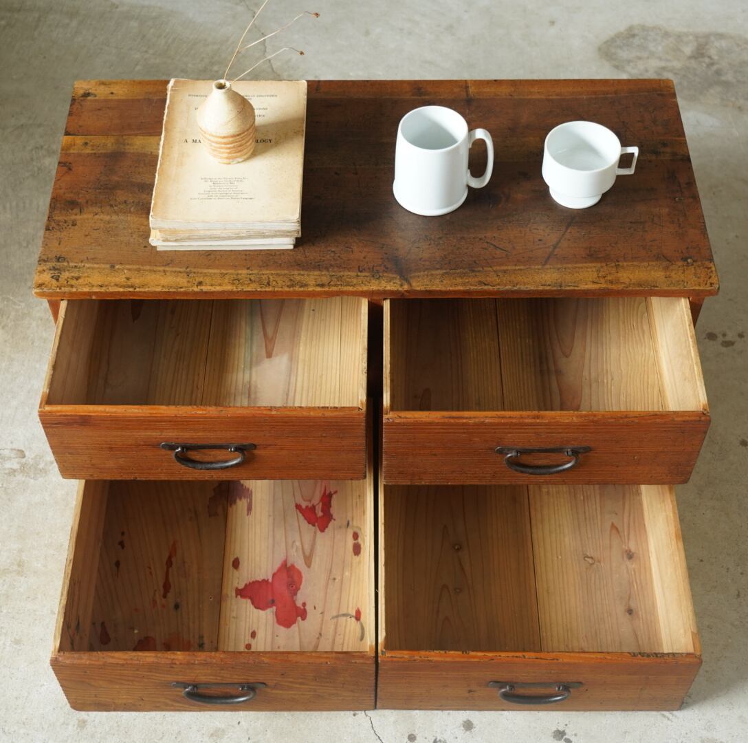 無垢材の温かみのある経年変化と美しく並んだ4杯の引き出しが魅力的なローボードです。