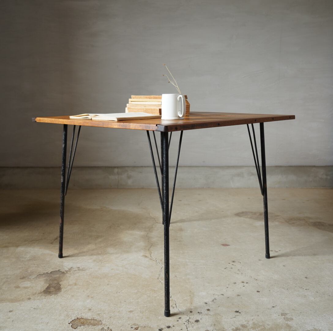 古材の天板に錆のアイアン脚はとても良く馴染み新しいものにはない独特の雰囲気があります。