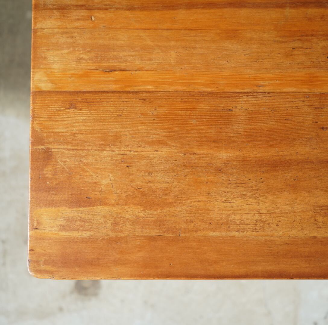 どこでつくられたものかは不明ですが、つかわれた上質なパイン材やデザインからフランスのブロカントのような雰囲気があります。