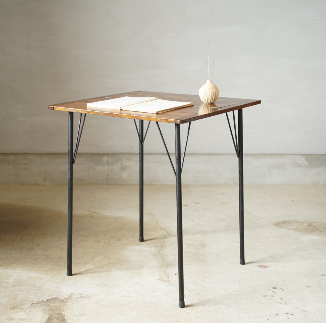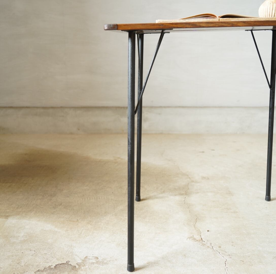 古材の天板に錆のアイアン脚はとても良く馴染み新しいものにはない独特の雰囲気があります。