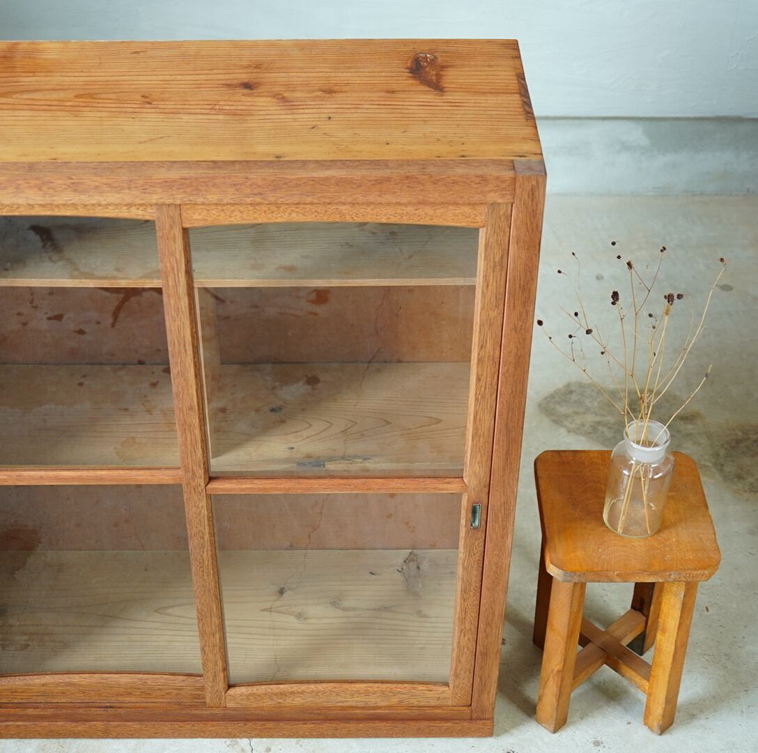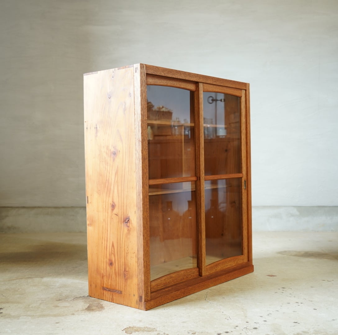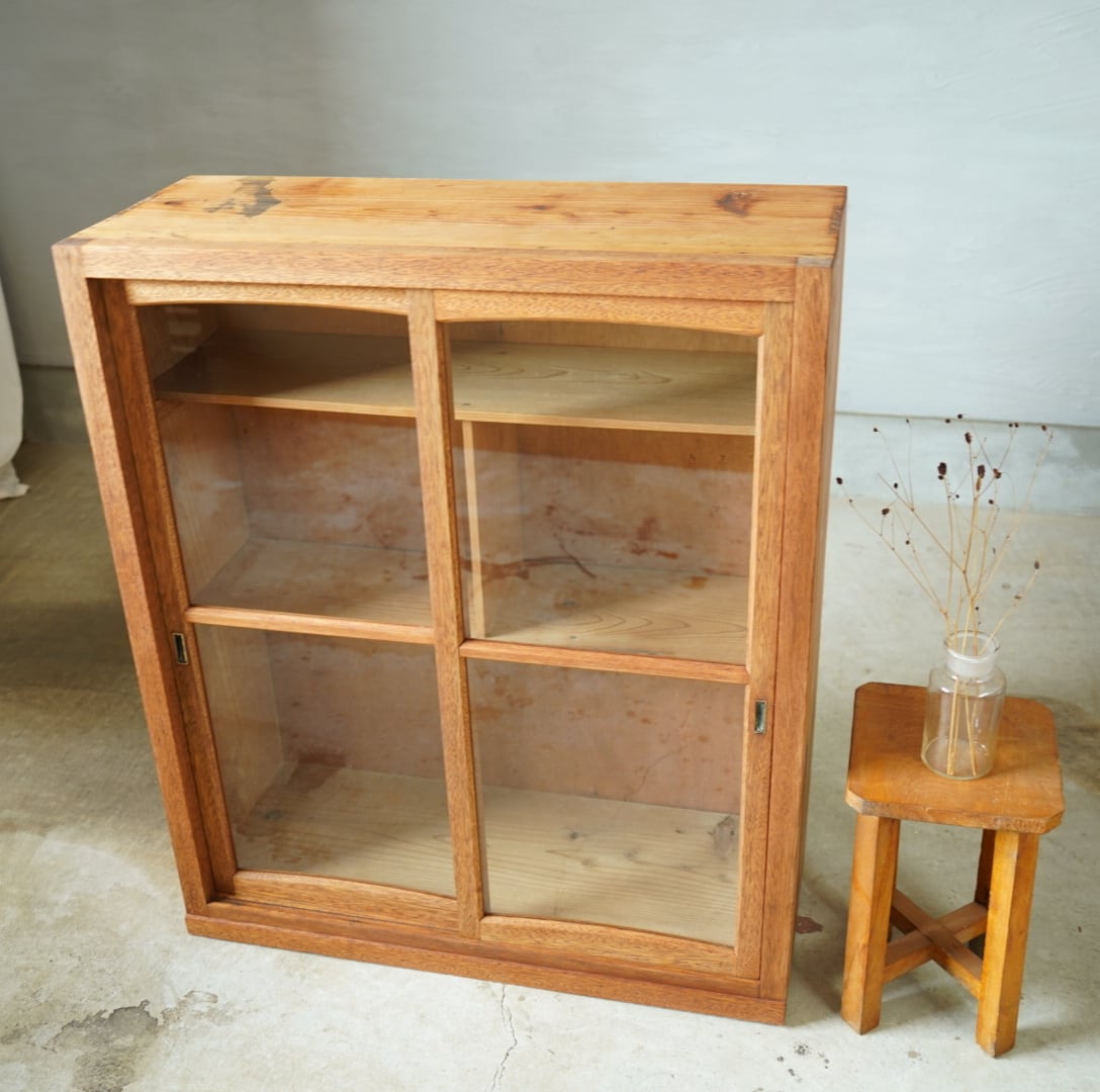温かみのある経年変化とアーチ型のガラス引き戸が美しいキャビネットです。