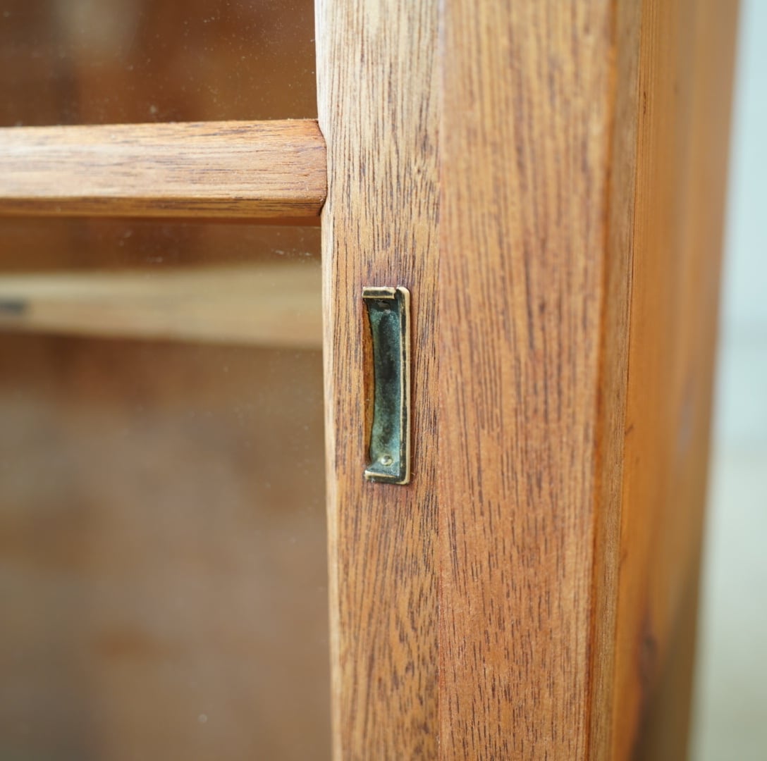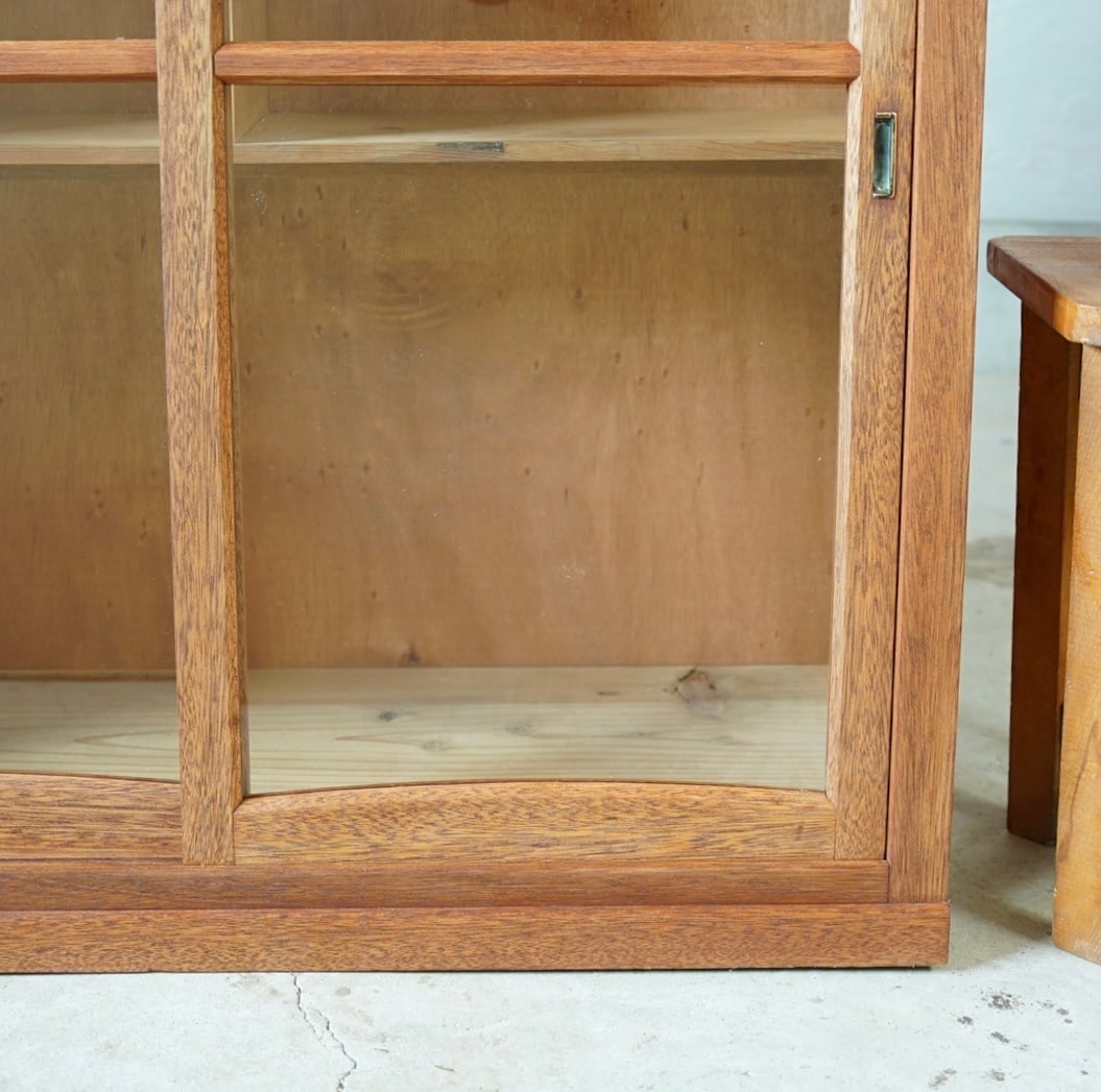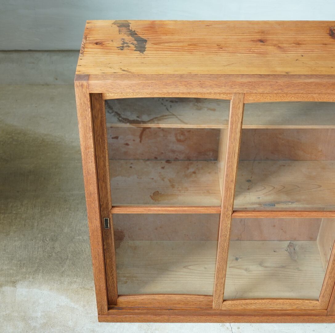 温かみのある経年変化とアーチ型のガラス引き戸が美しいキャビネットです。