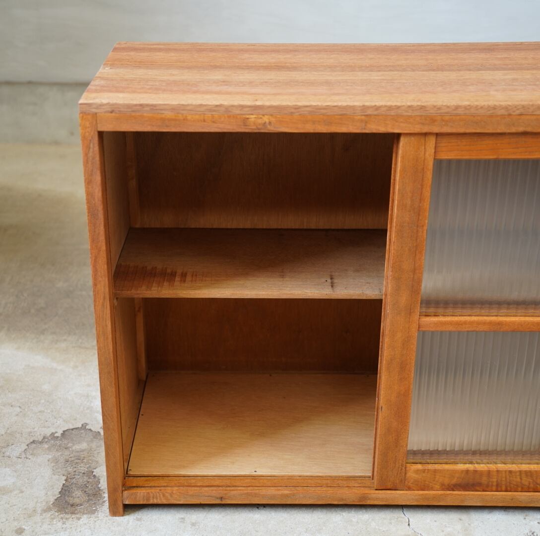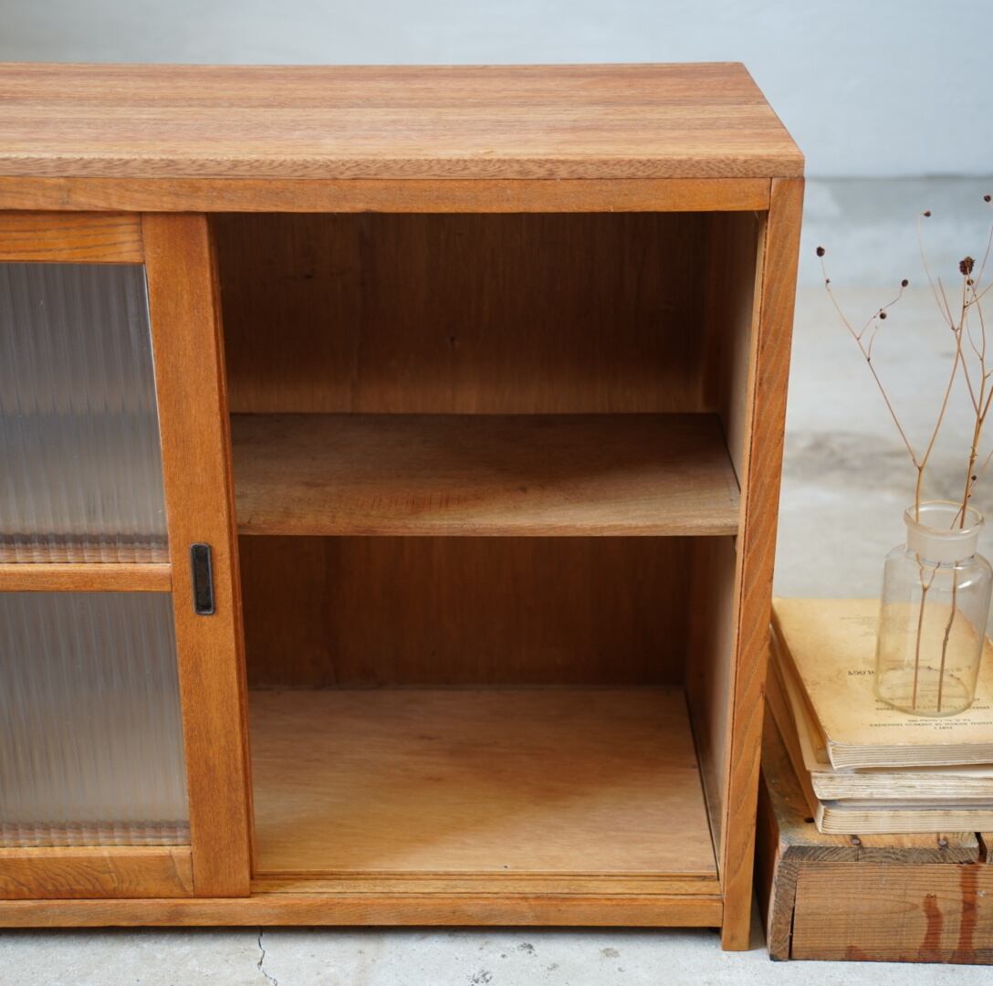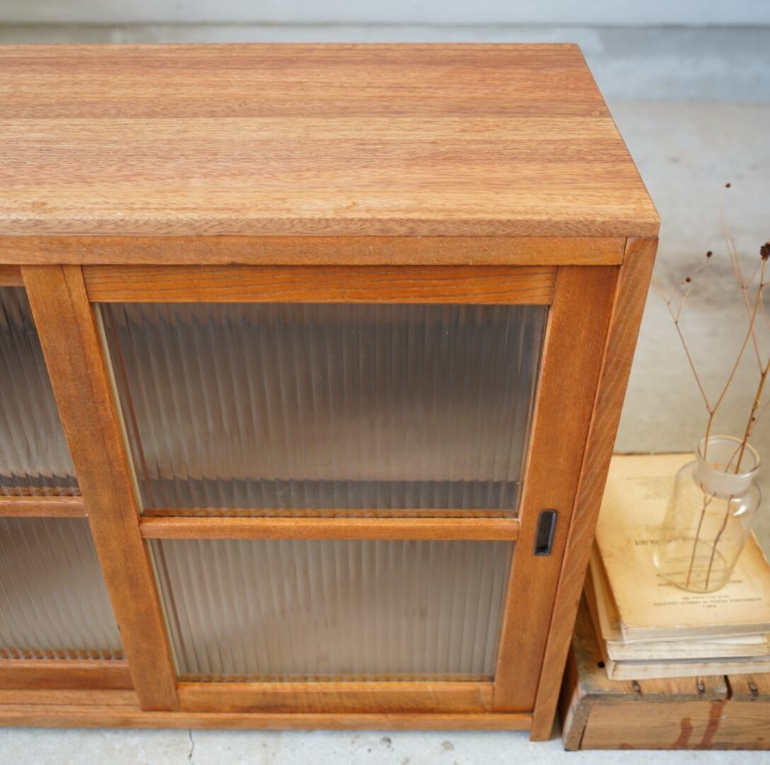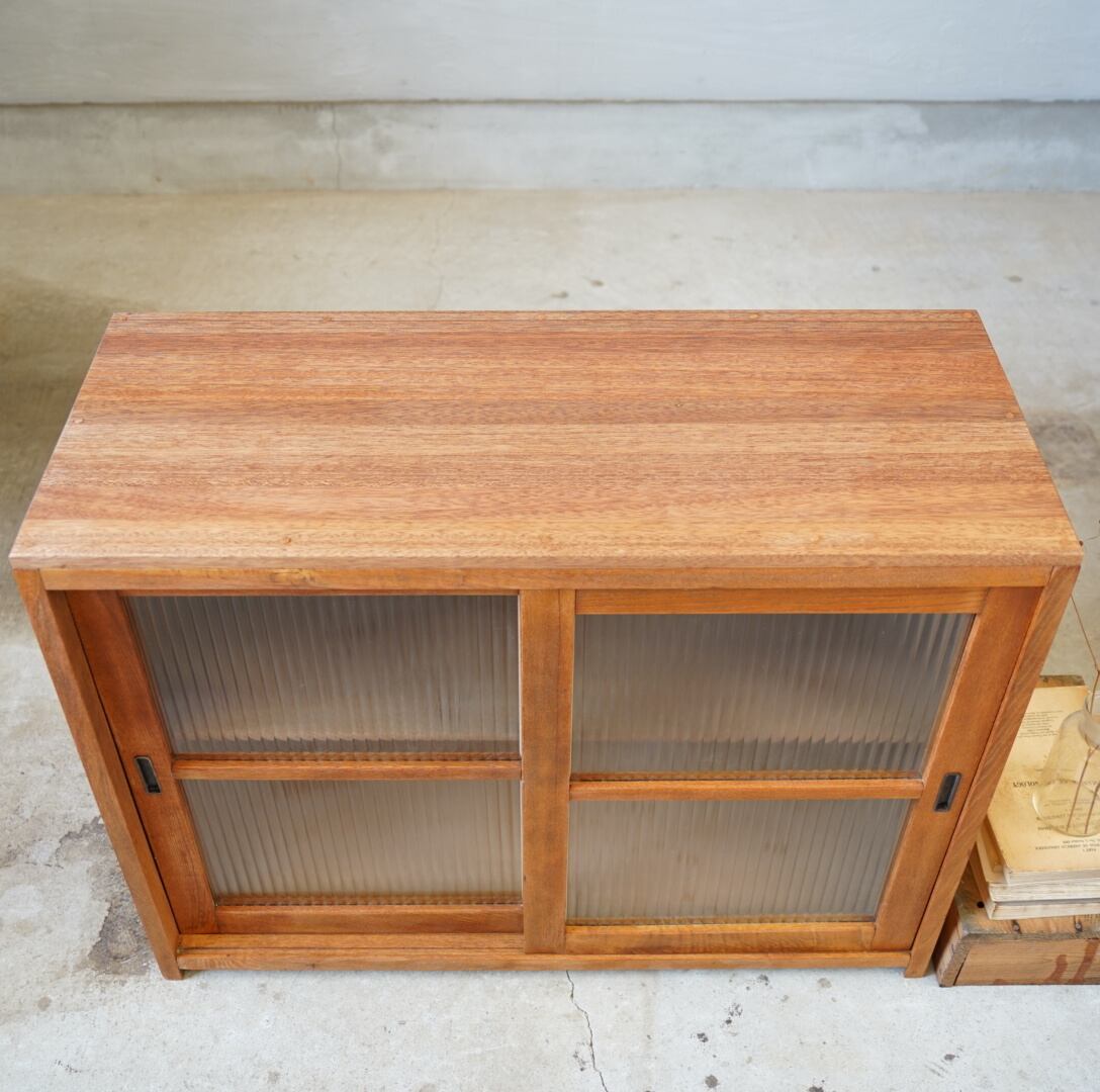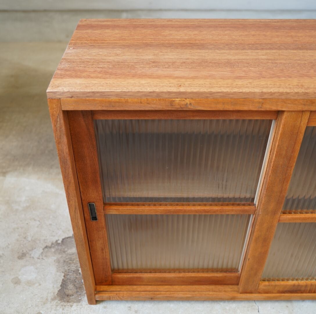 温かみのある経年変化ときらきらと光を反射するモールガラスの引き戸が美しい食器棚です。