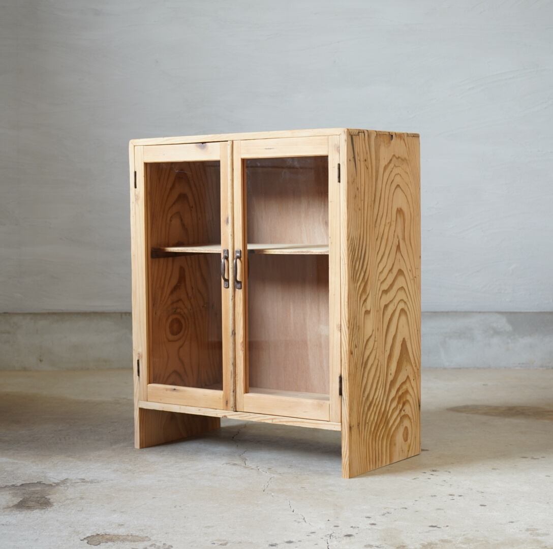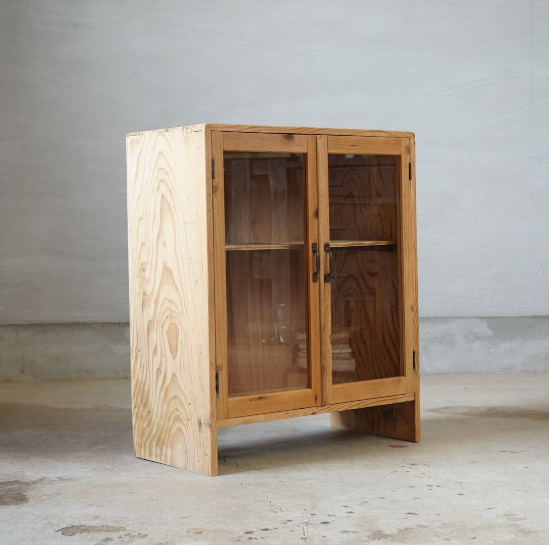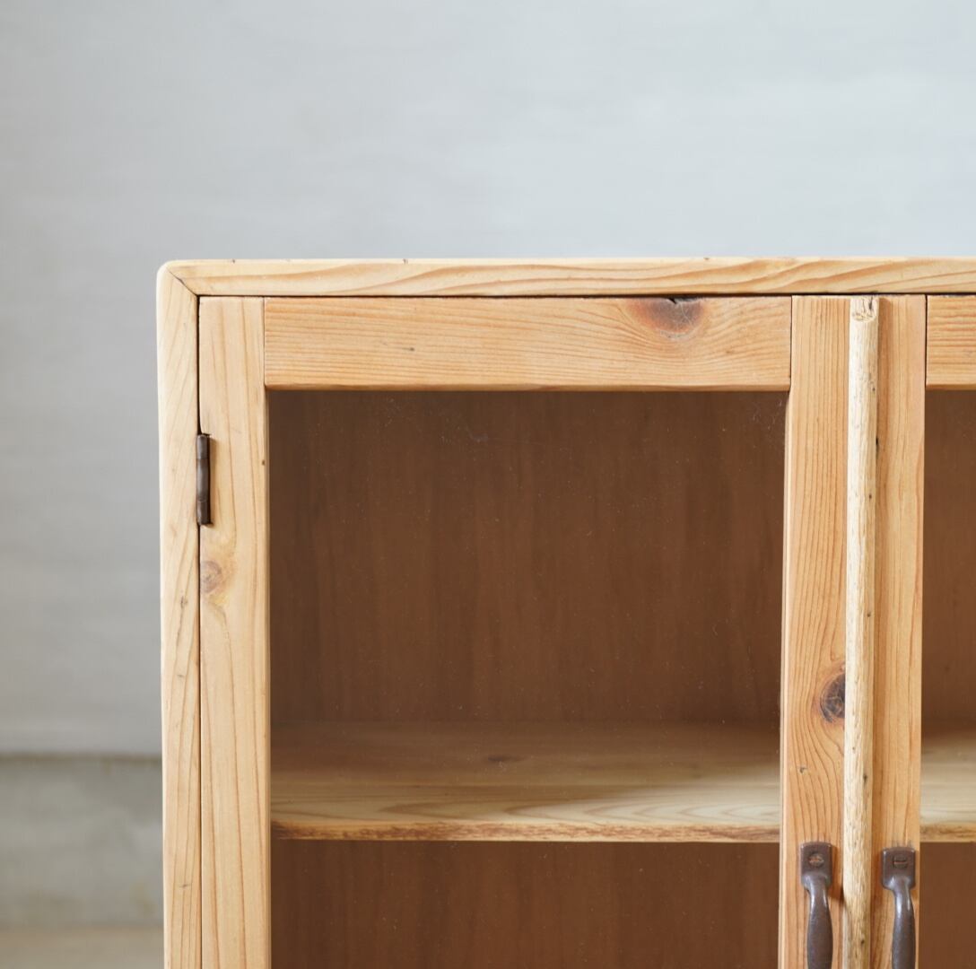 白木のナチュラルな木味と大きなガラスの開き戸が美しいキャビネットです。