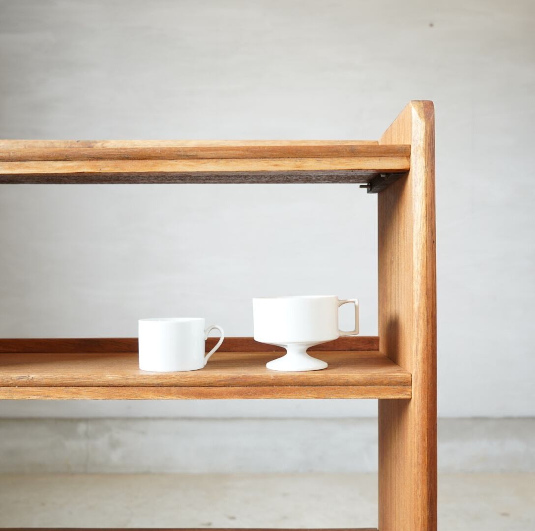 経年変化のある木味とすっきりとしたシルエットがとても美しい4段のオープンラックです。