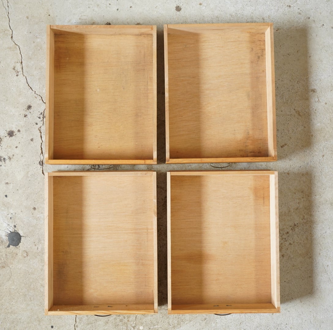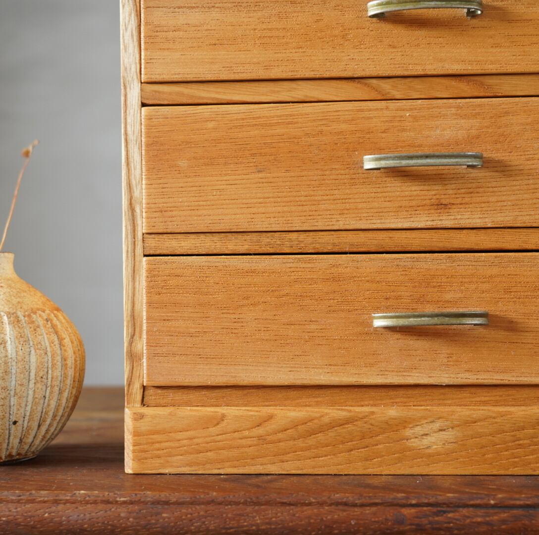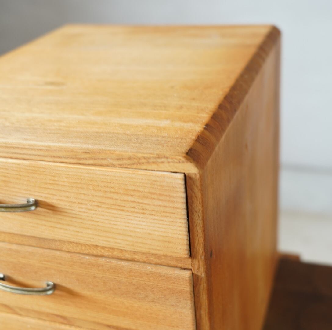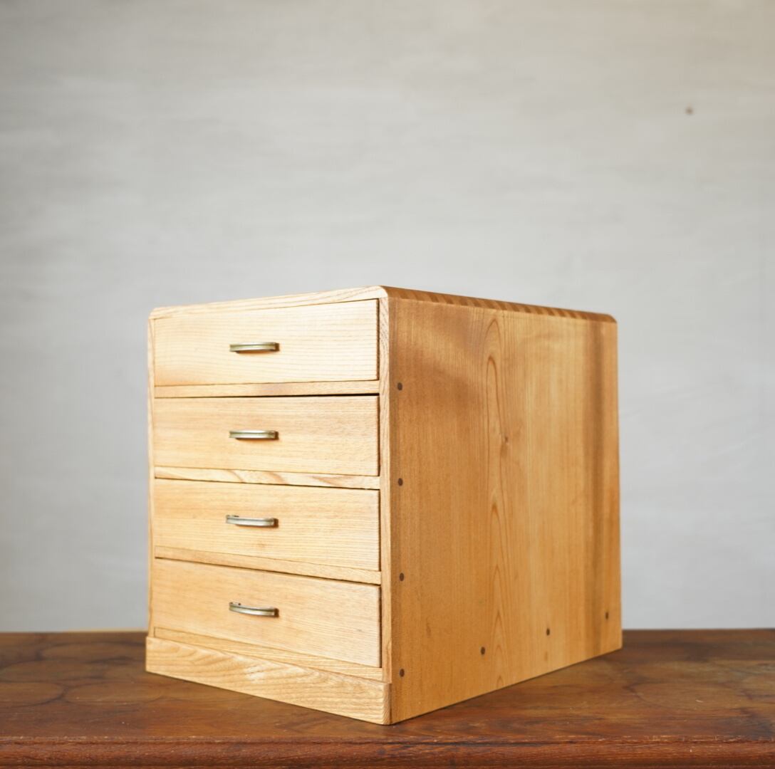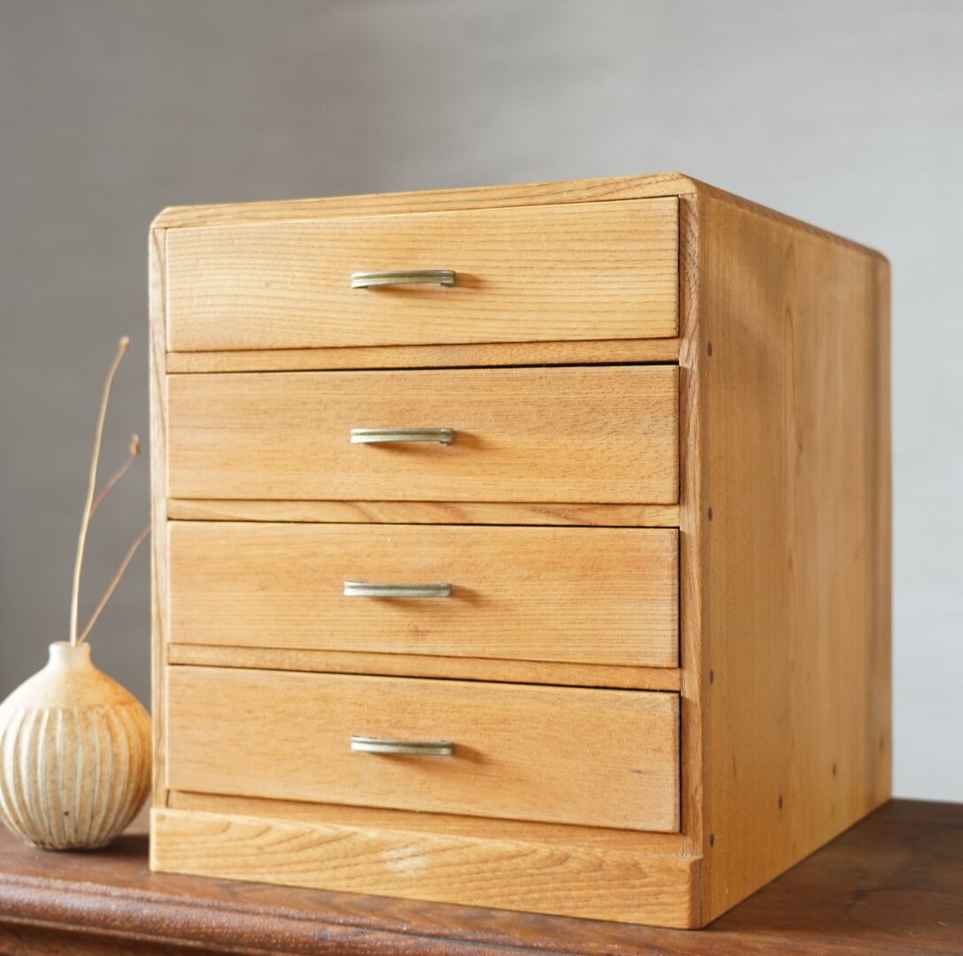 ナチュラルな木味と並んだひかえめな取っ手が可愛らしい4杯の引き出しです。
