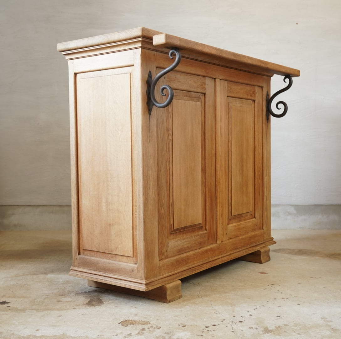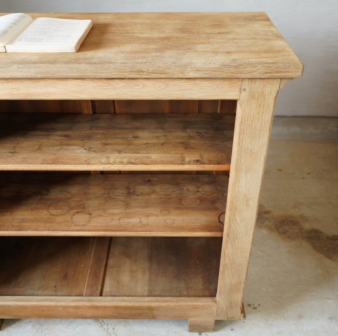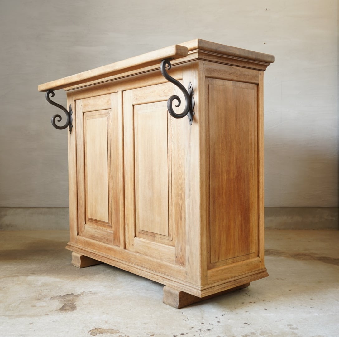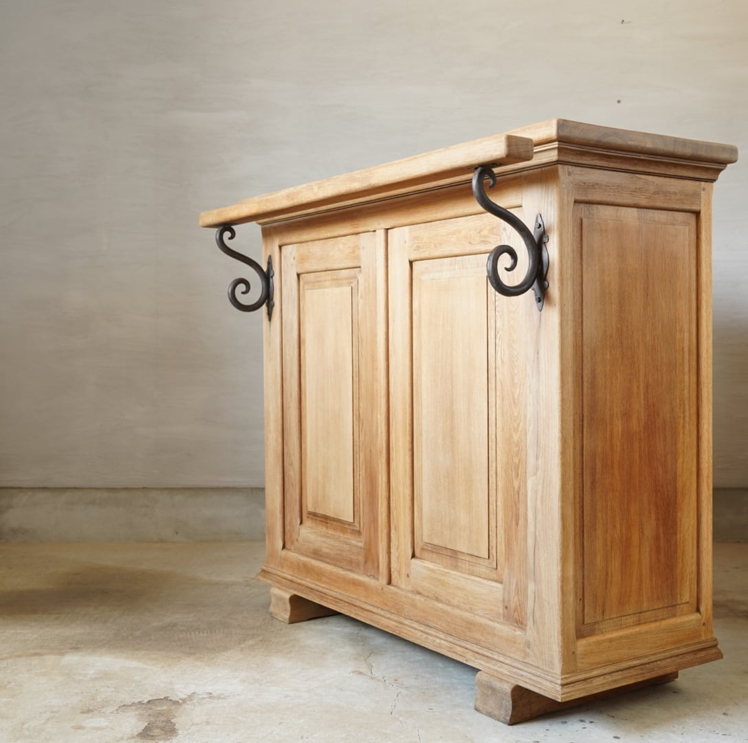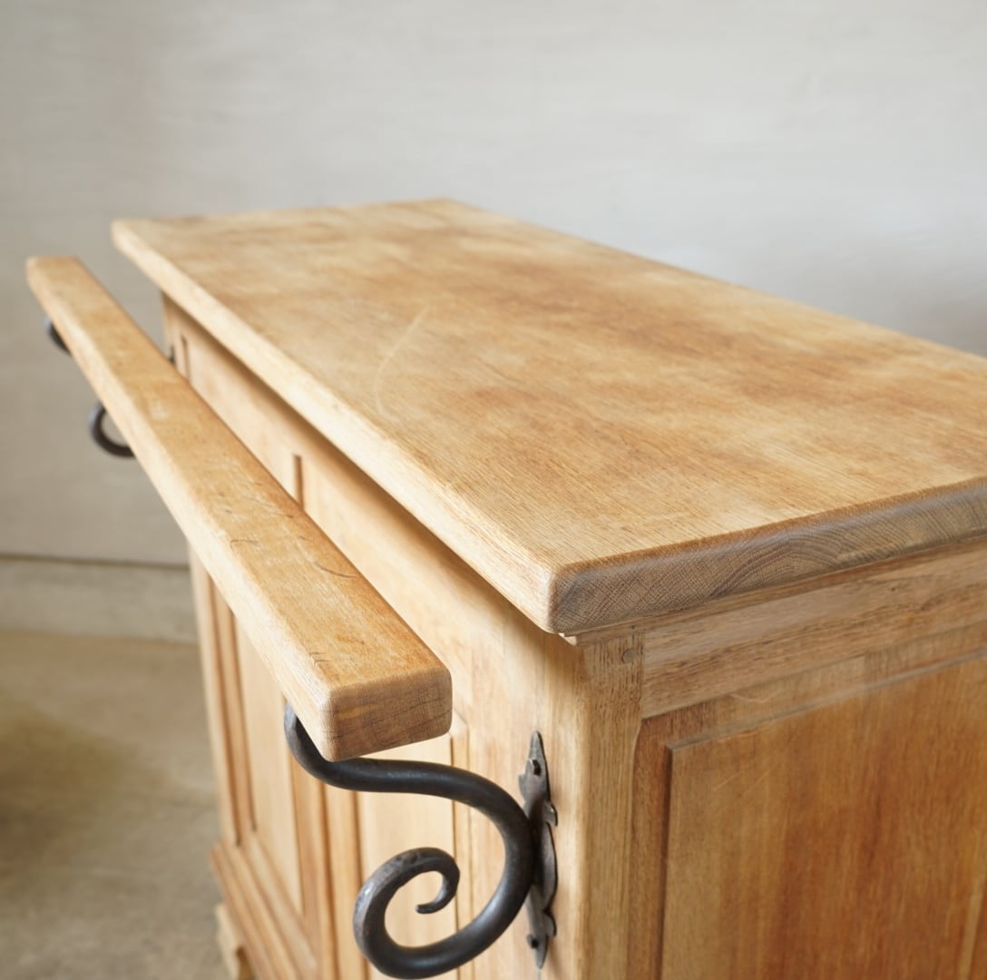 古いオーク材の温かみのある木味と細部にまで凝らされた装飾が美しいカウンターテーブルです。