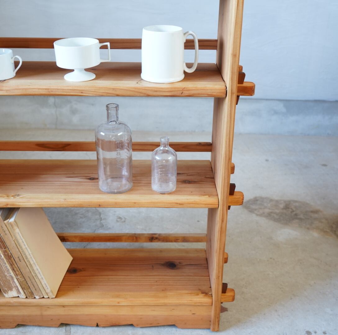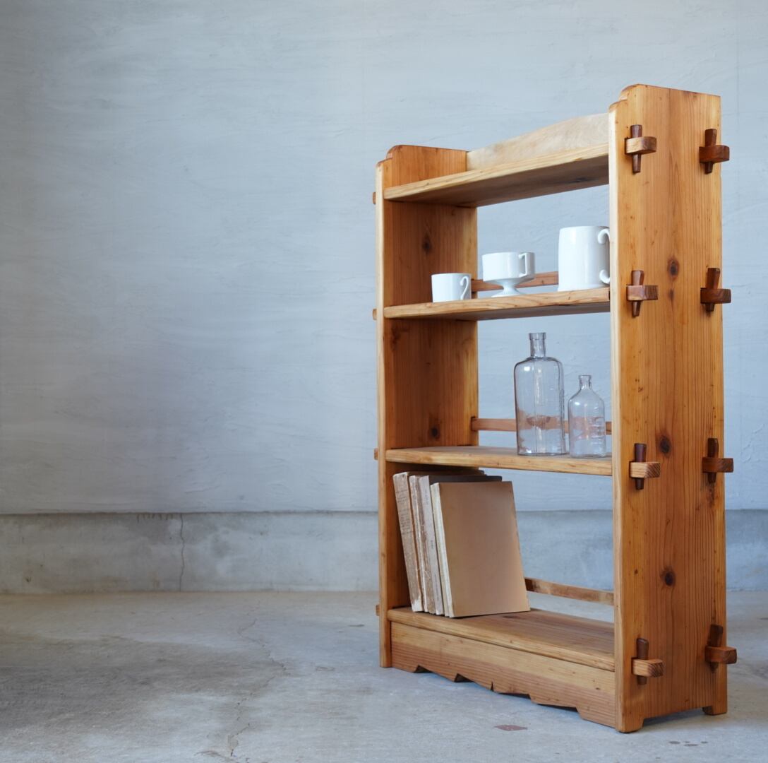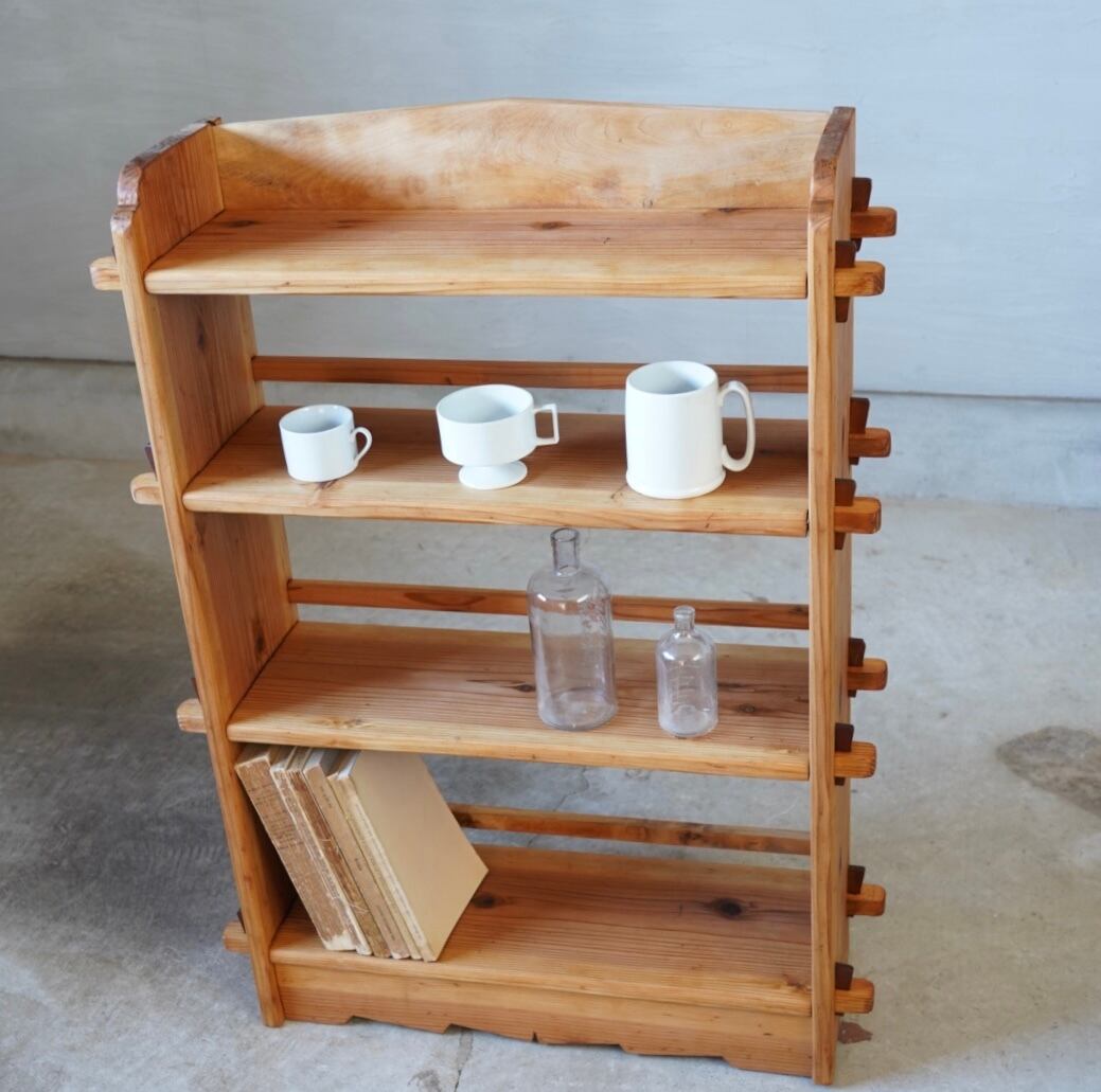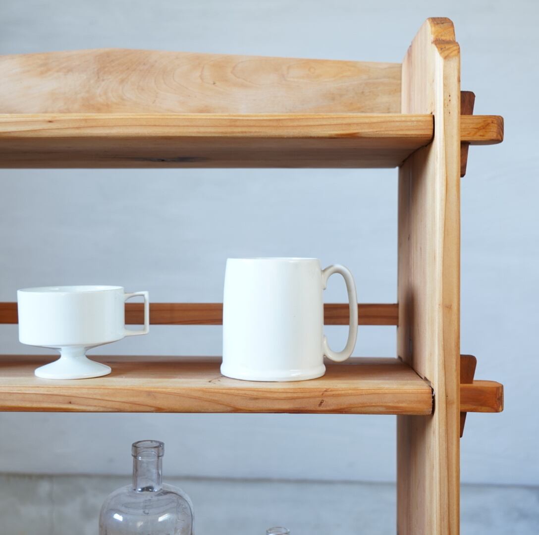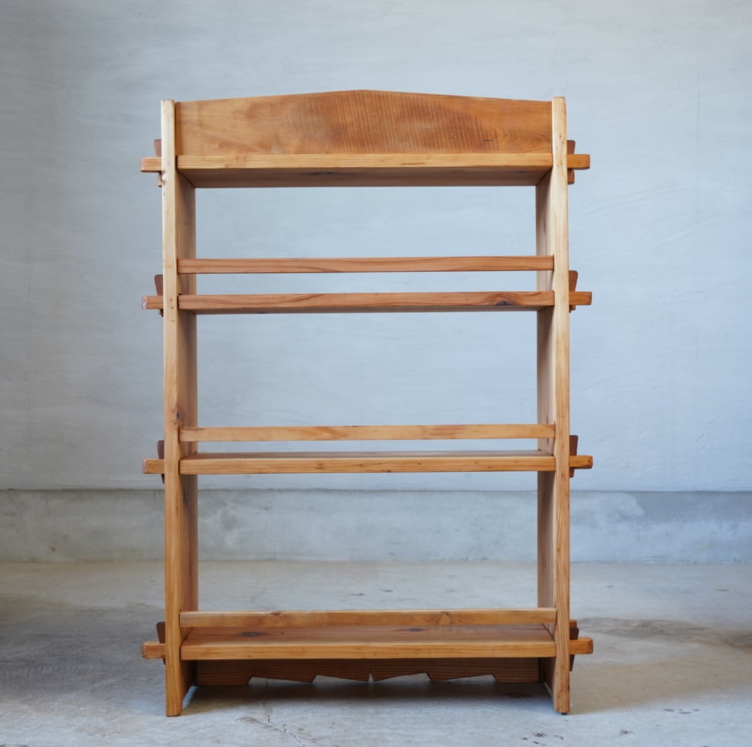 無垢材の温かみのある経年変化とすっきりとした佇まいがとても美しい4段のオープンラックです。