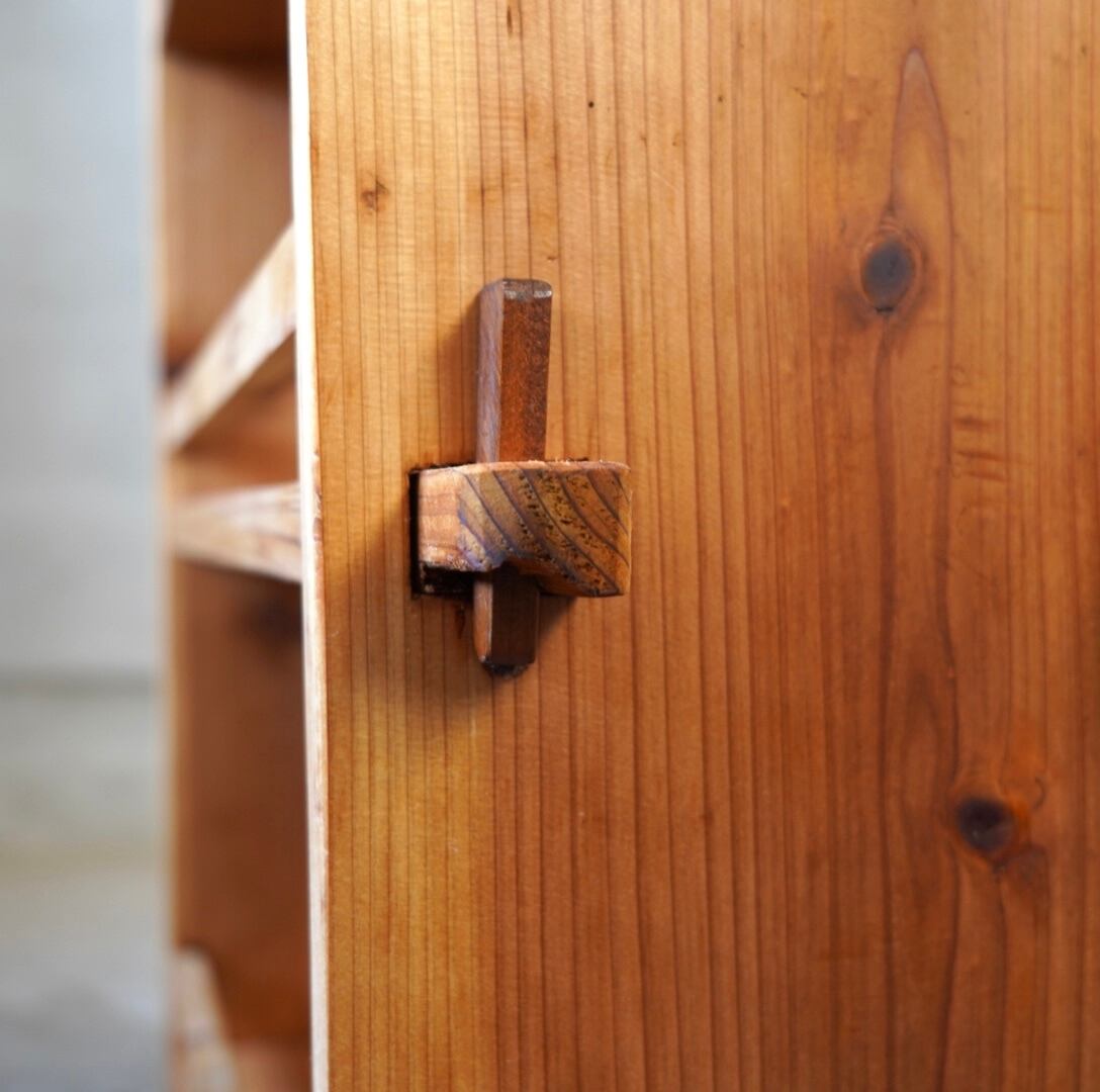 16本の楔が棚をしっかりと固定する造りになっており、機能性と美しさを兼ね備えております。