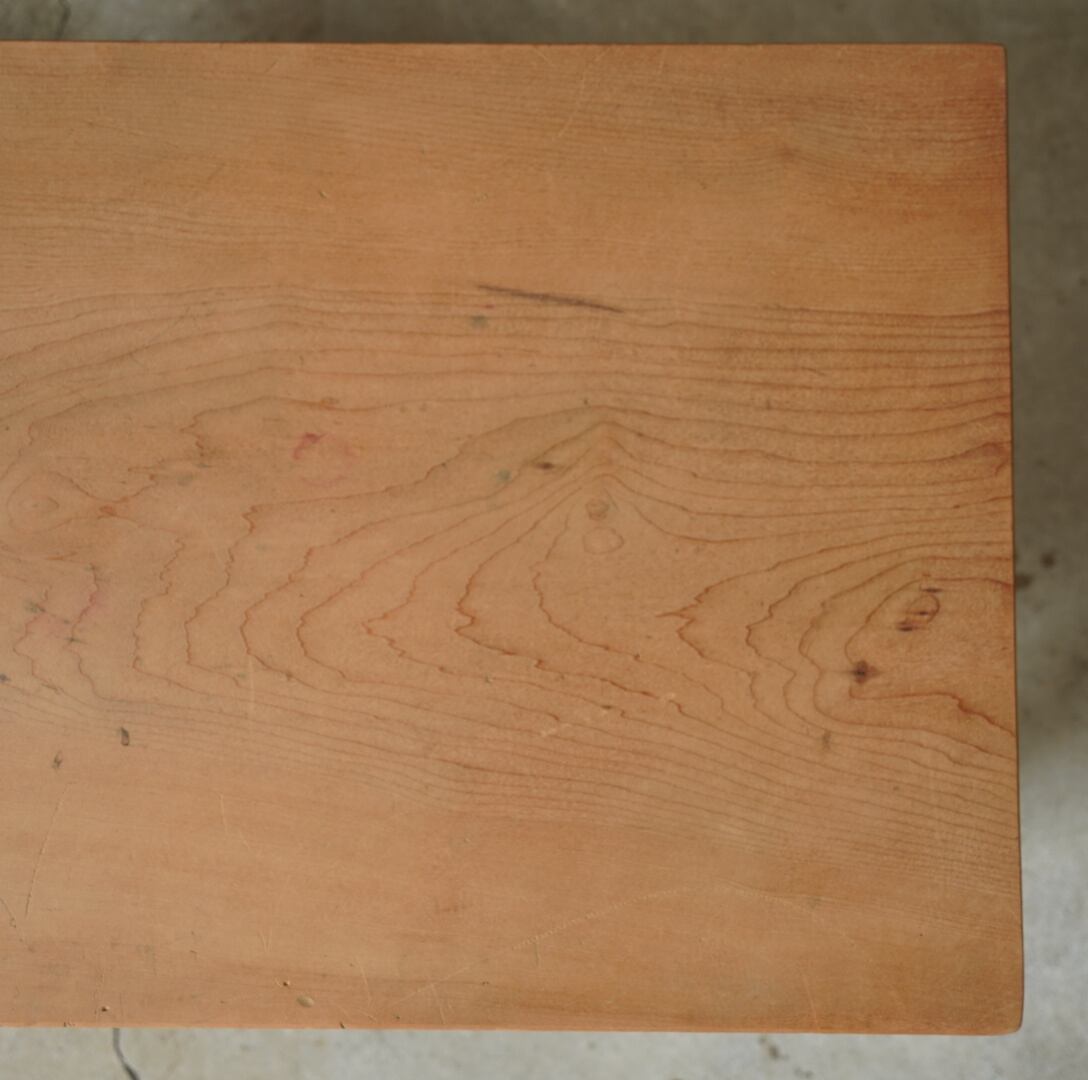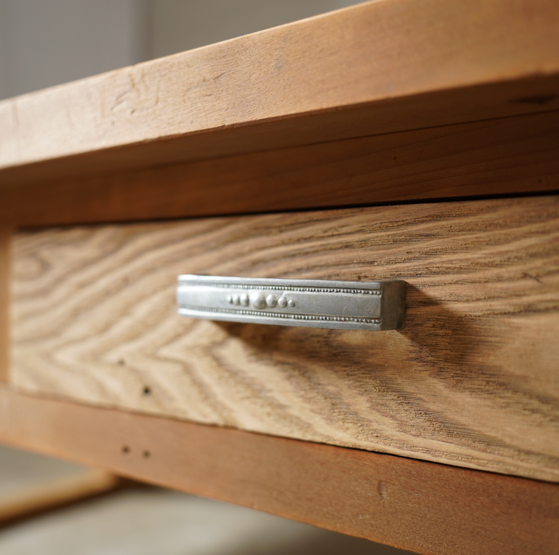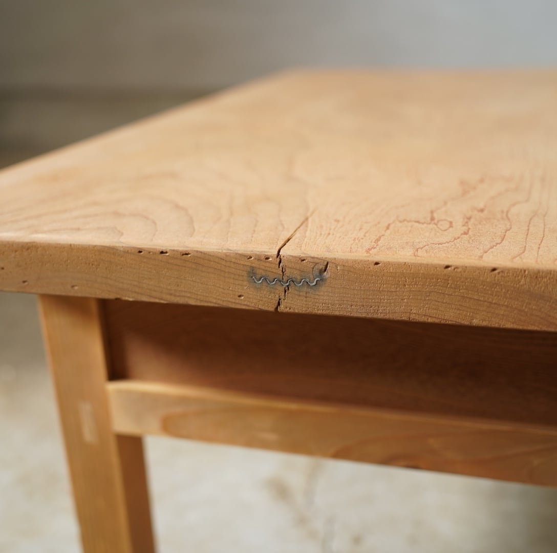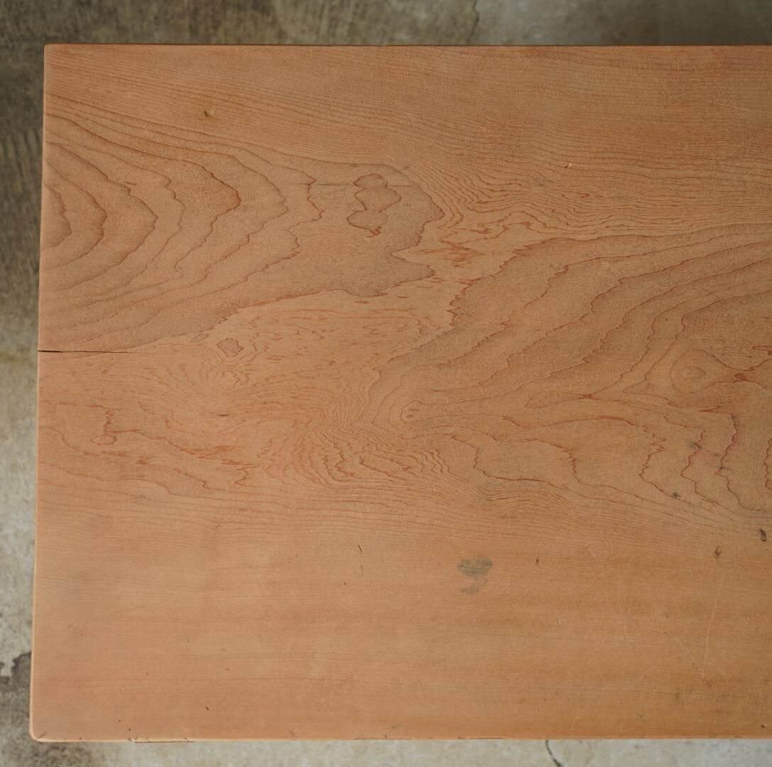 天板には一枚板がつかわれ、木材を組むようにしてつくられており、どっしりとした重厚感があります。