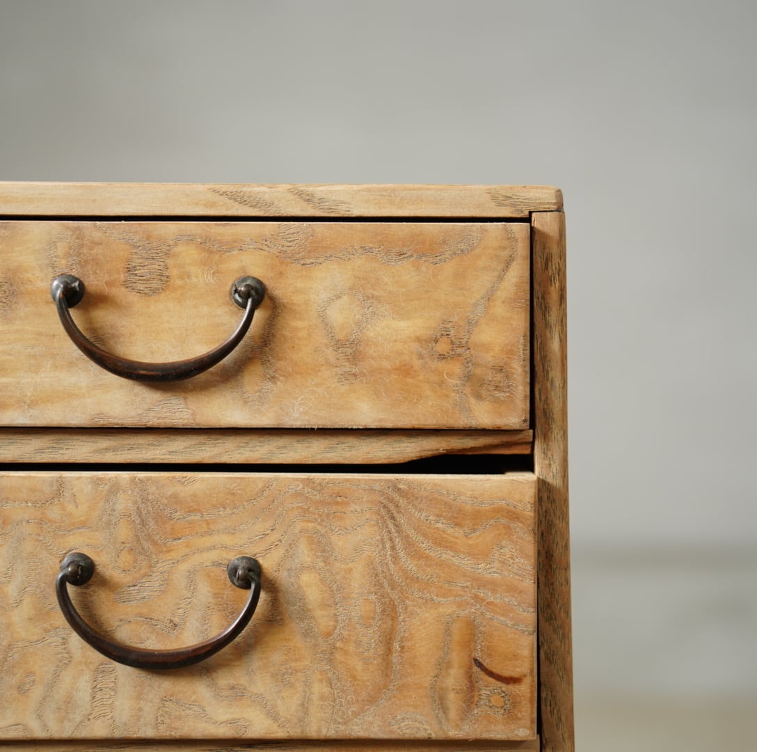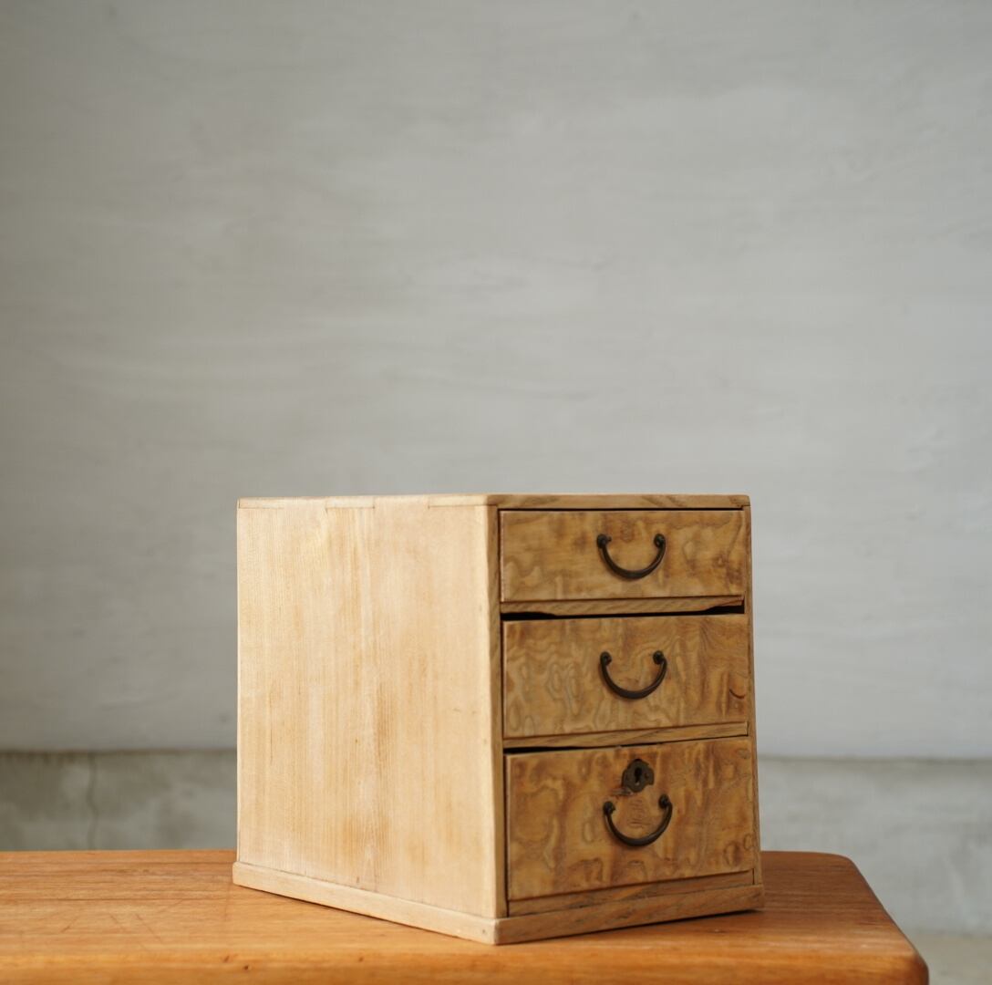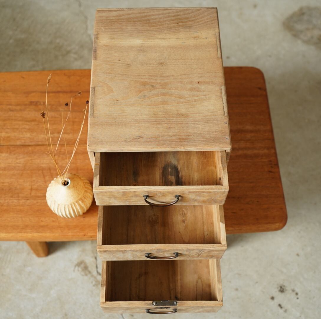 素朴な雰囲気が魅力的な古い3杯の小引き出しです。