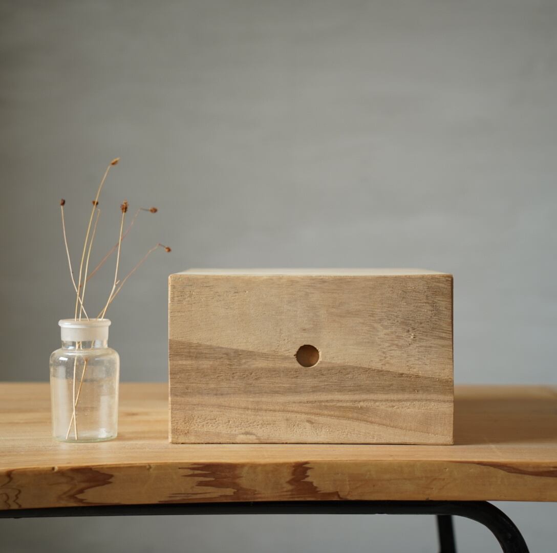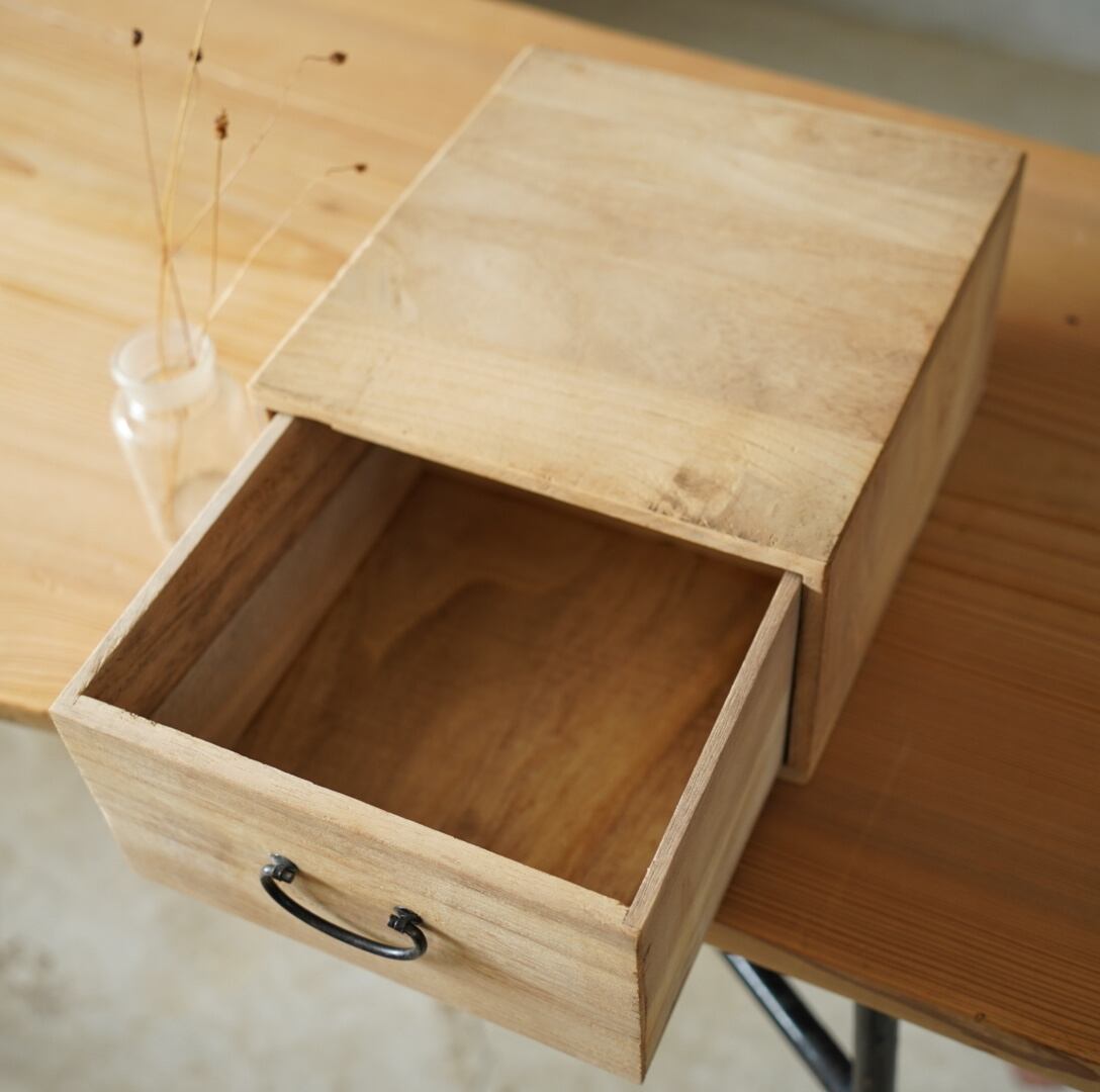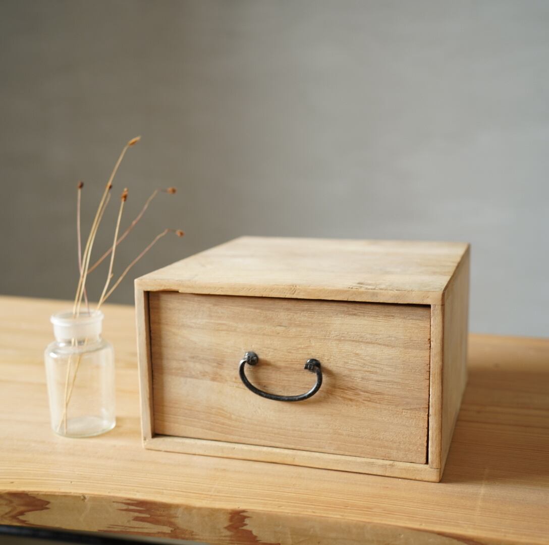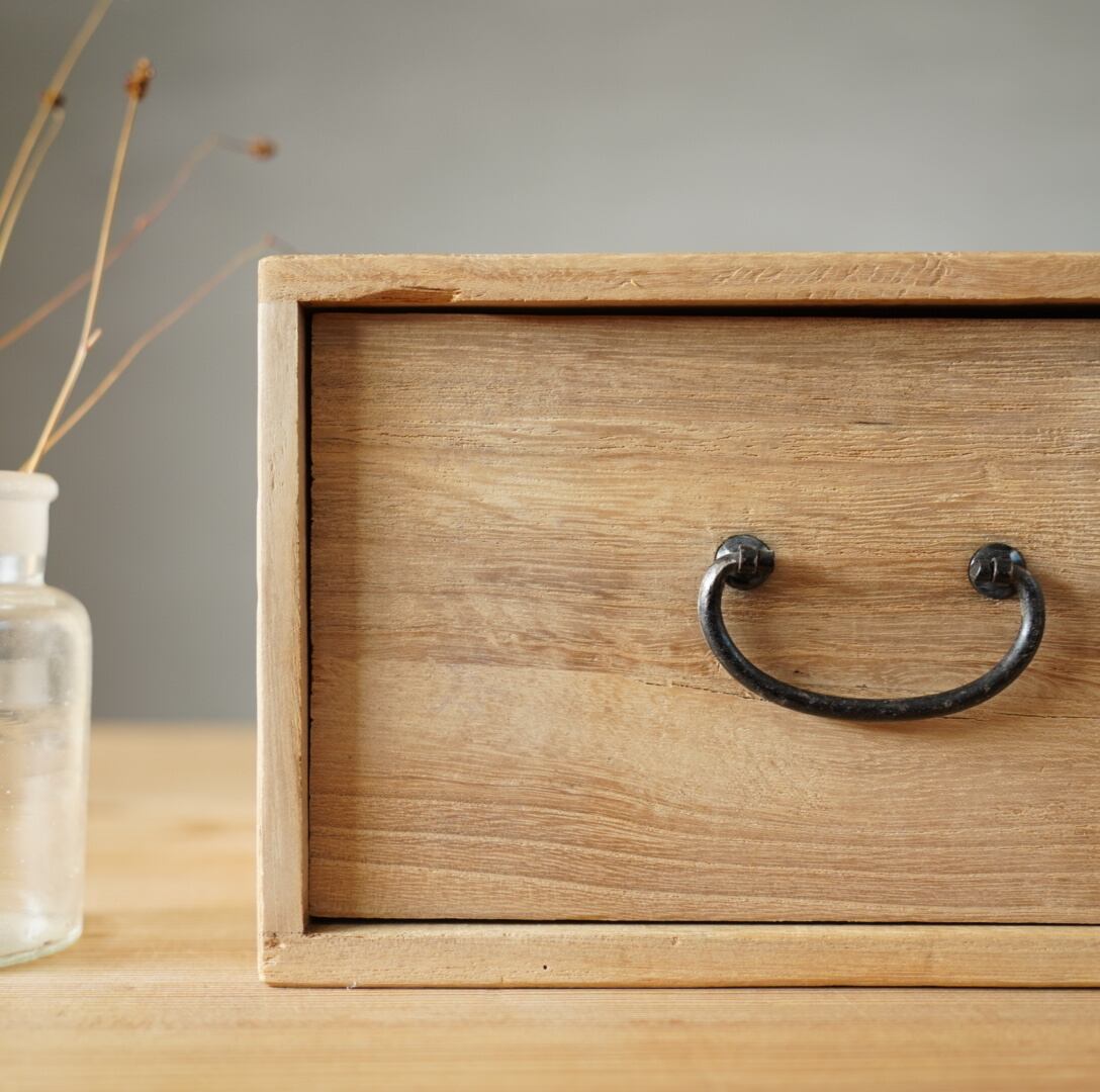 ナチュラルな木味と黒い金属の取手が可愛らしい1杯の小引き出しです。