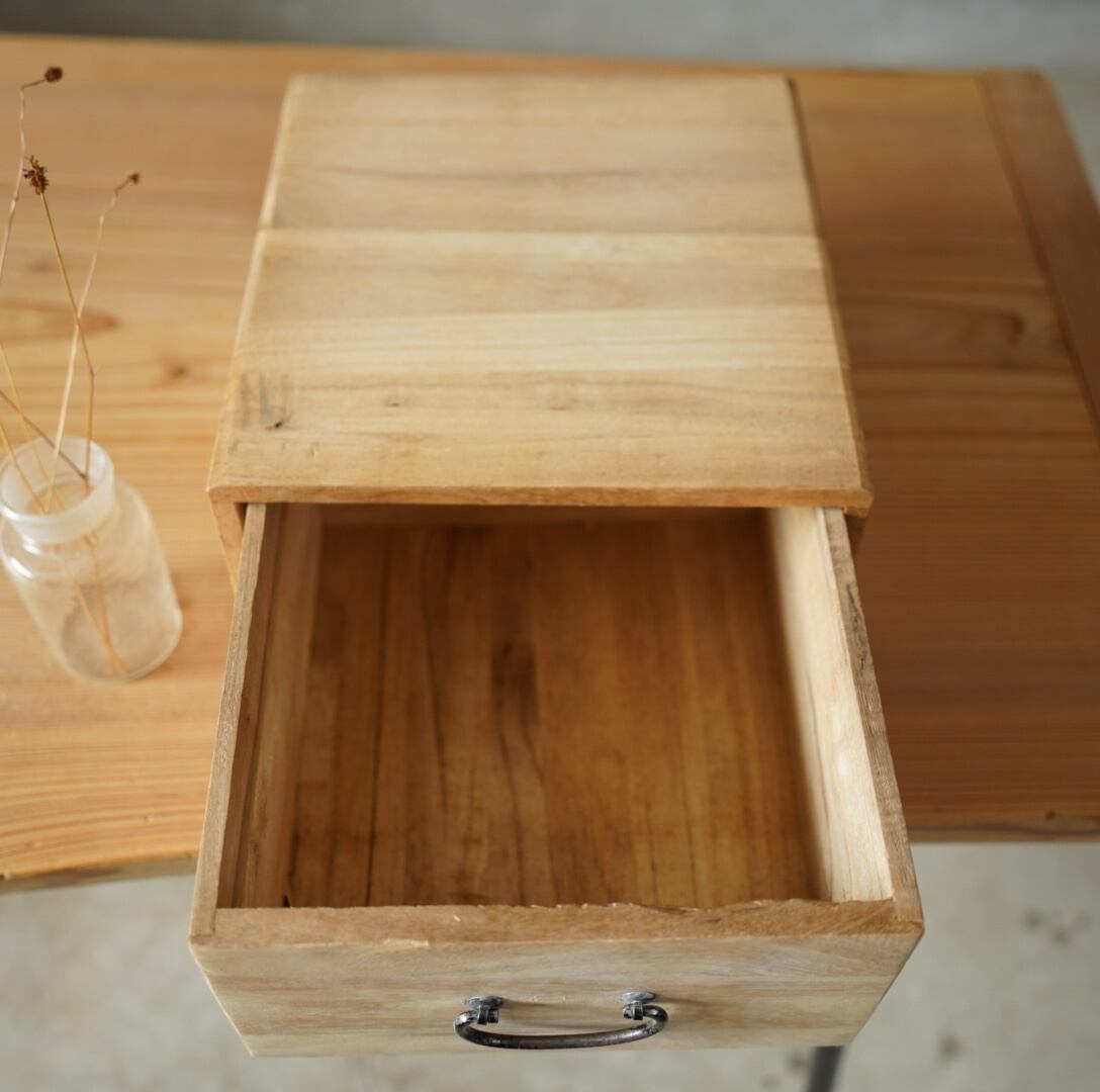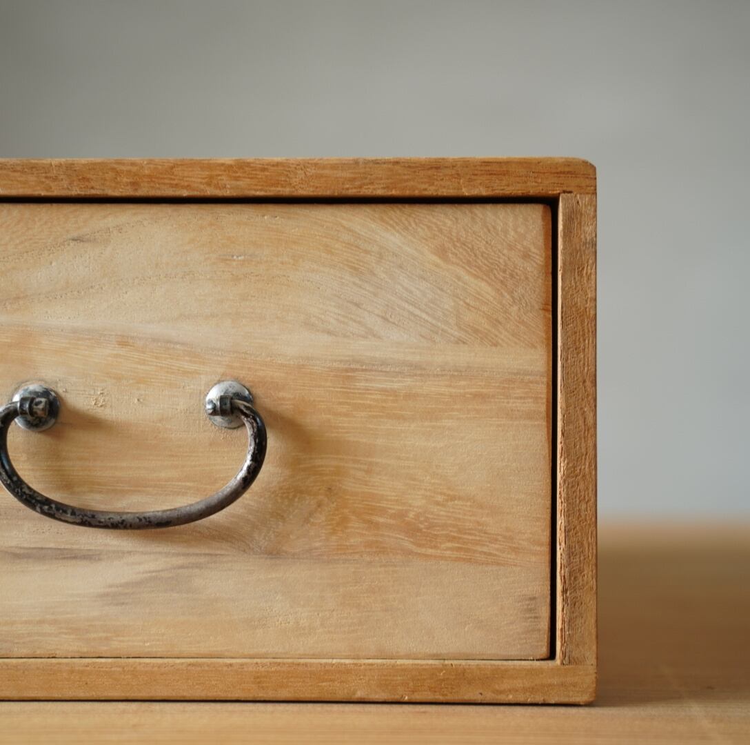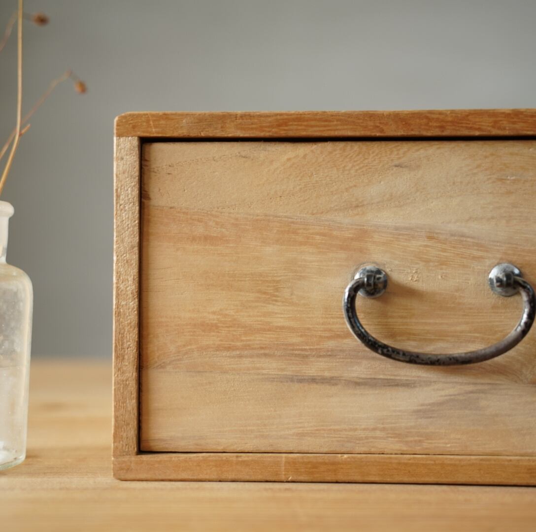 ナチュラルな木味と黒い金属の取手が可愛らしい1杯の小引き出しです。