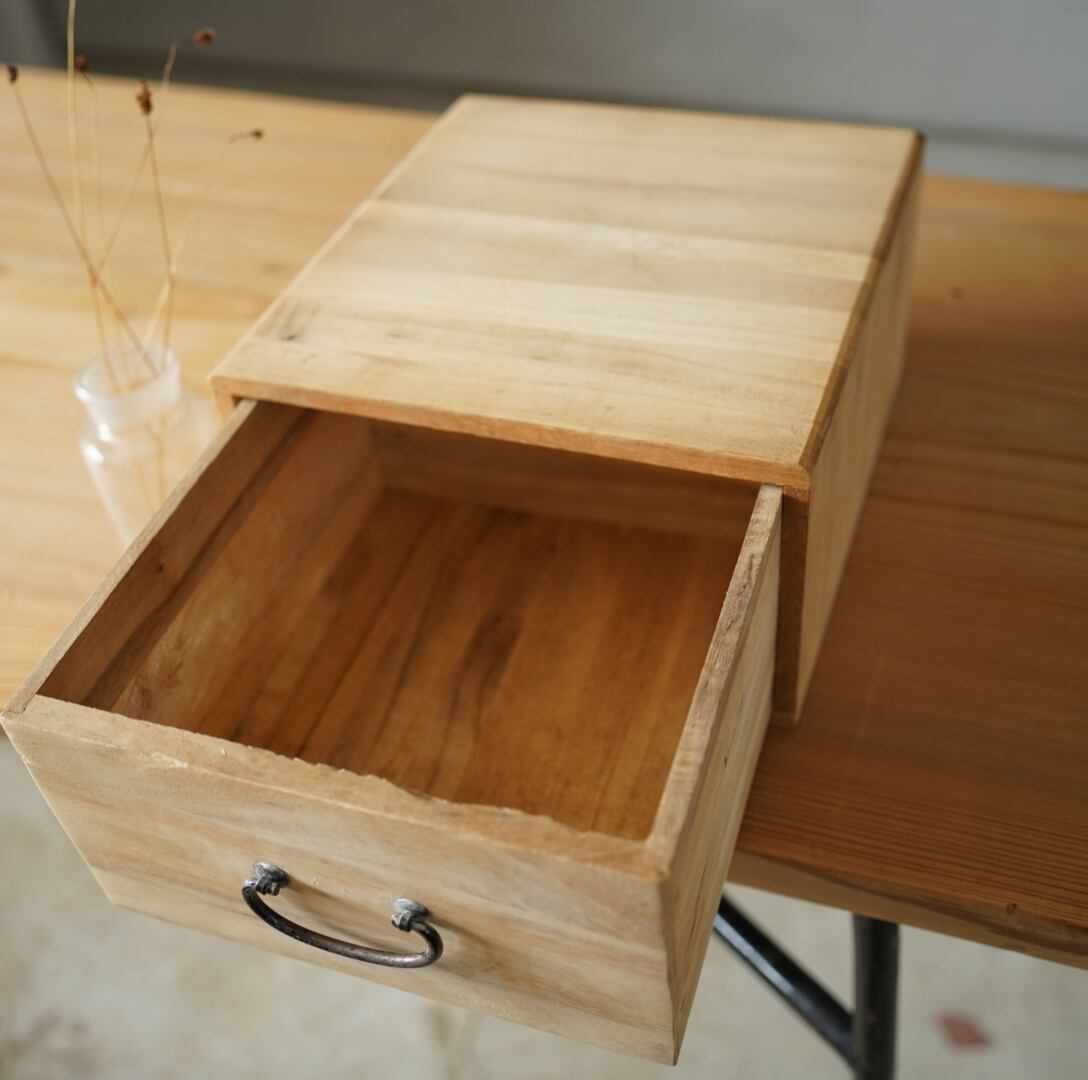 もともと薬箱として使われていたもので新しいものにはない深い味わいがあります。