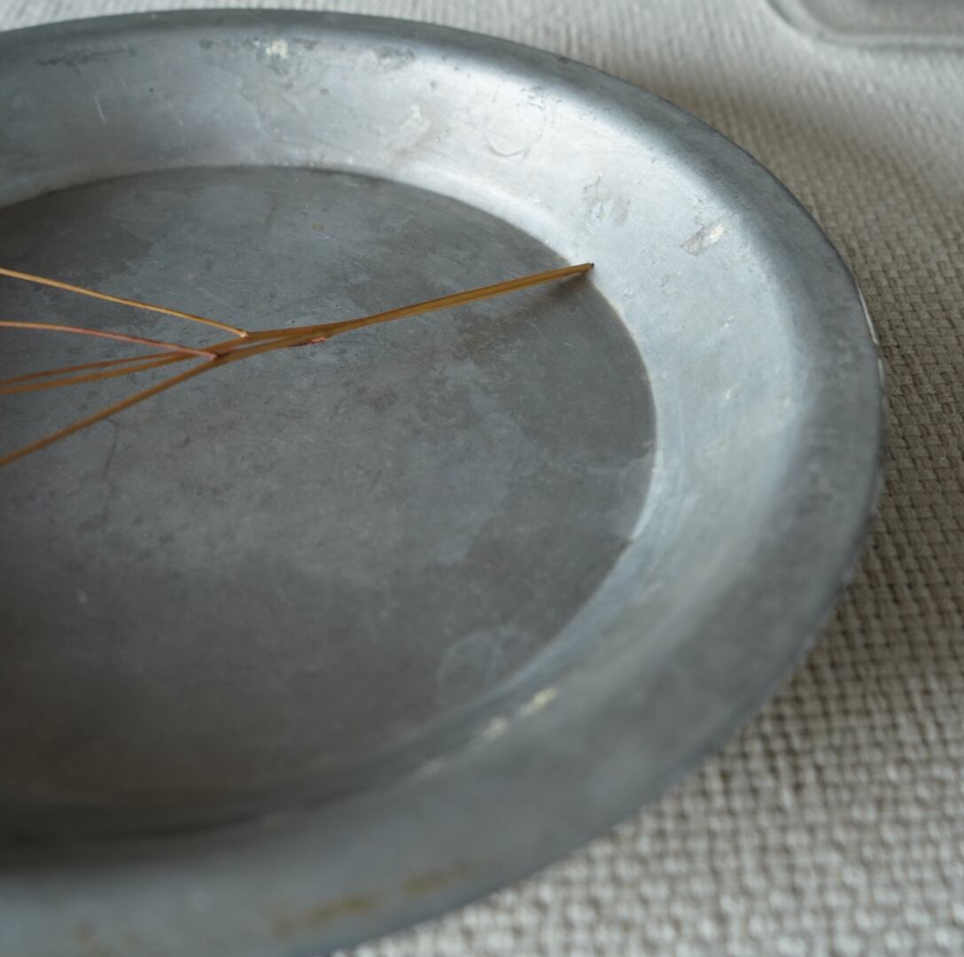 使い込まれた風合いが魅力的な古いアルミのプレートです。