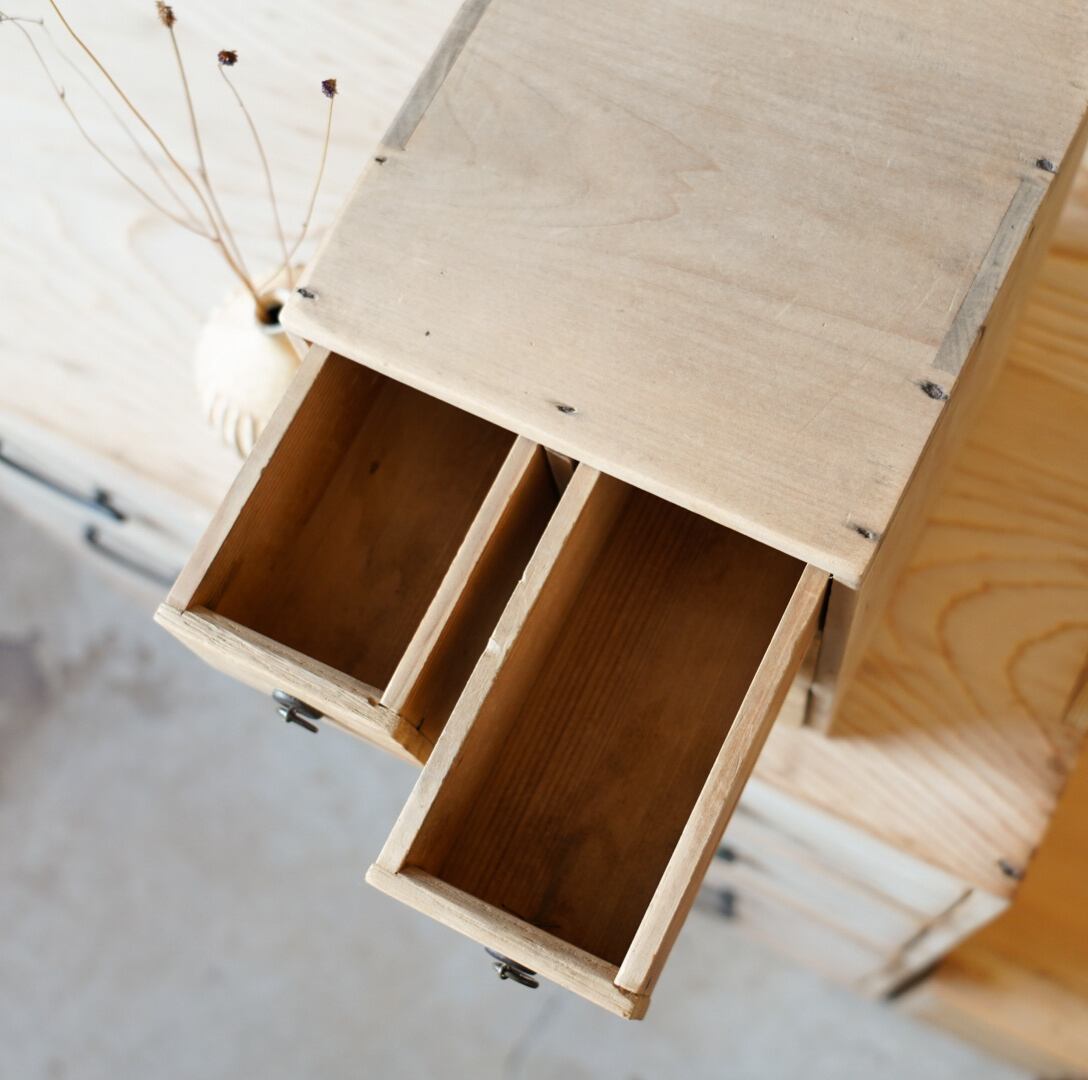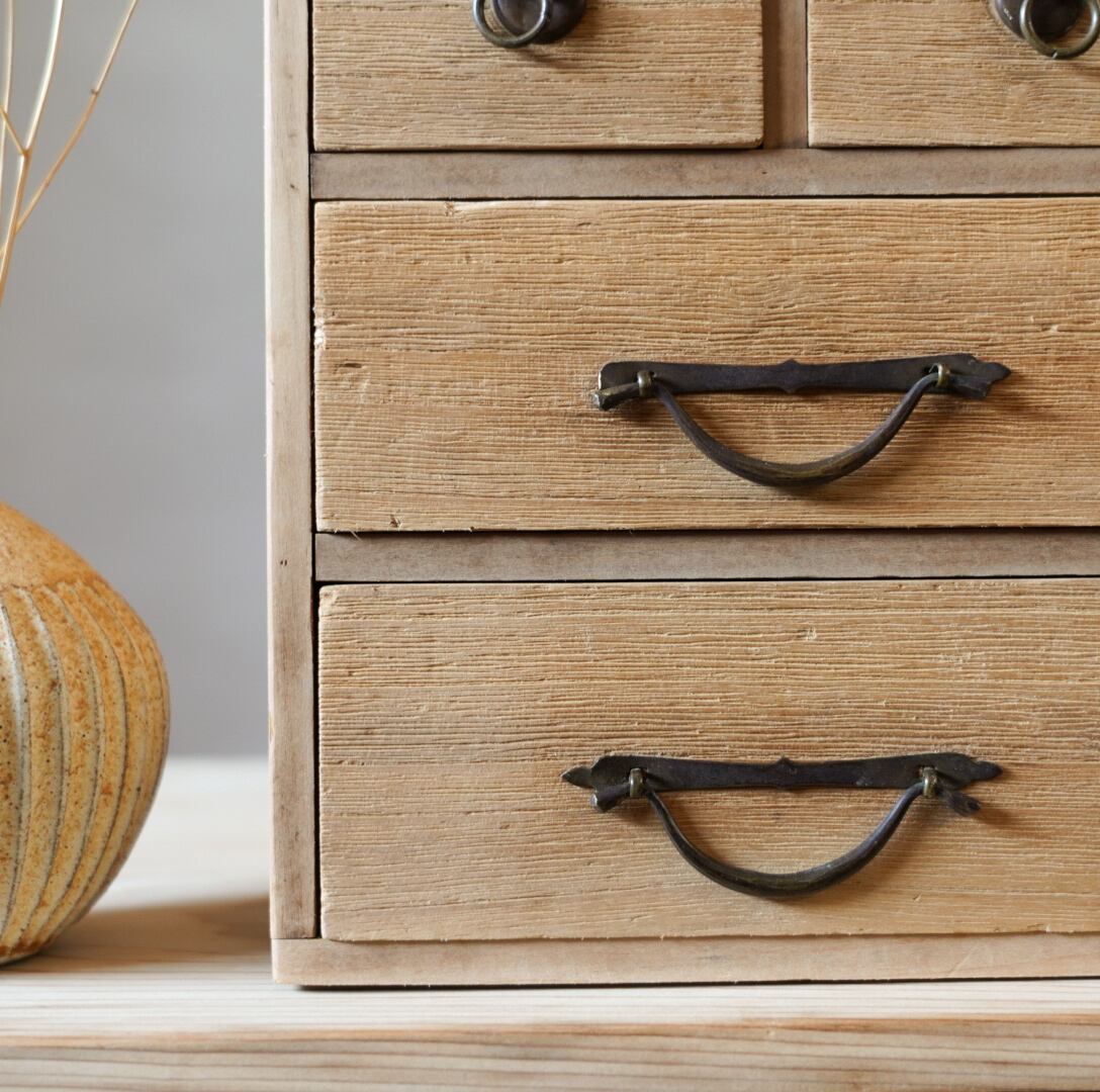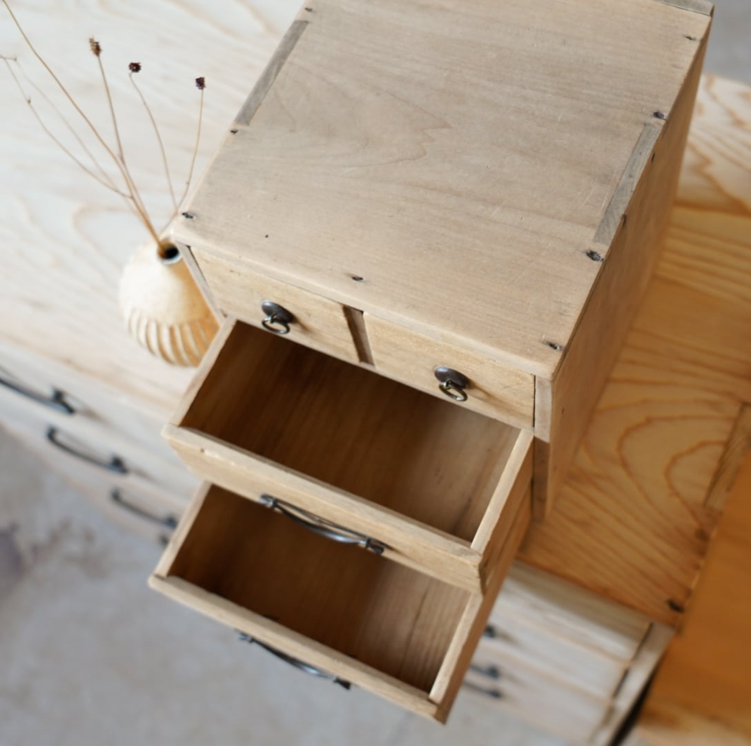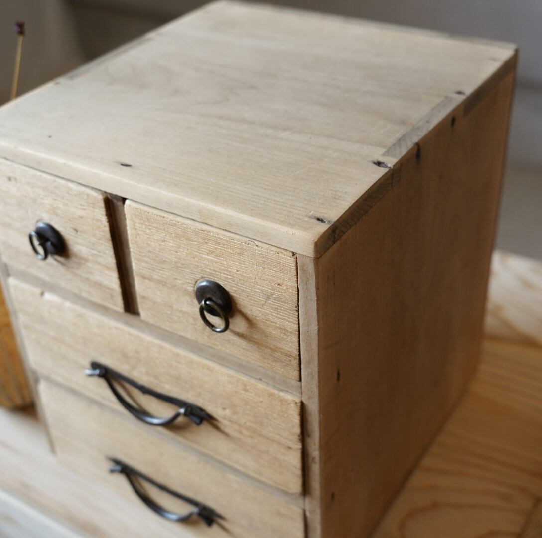 素朴な雰囲気が魅力的な古い4杯の引き出しです。