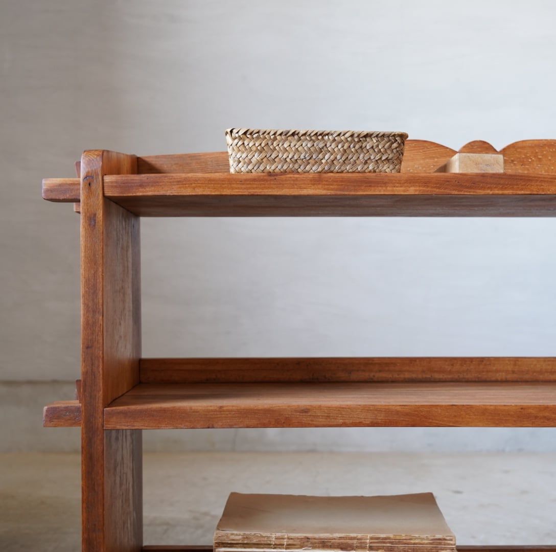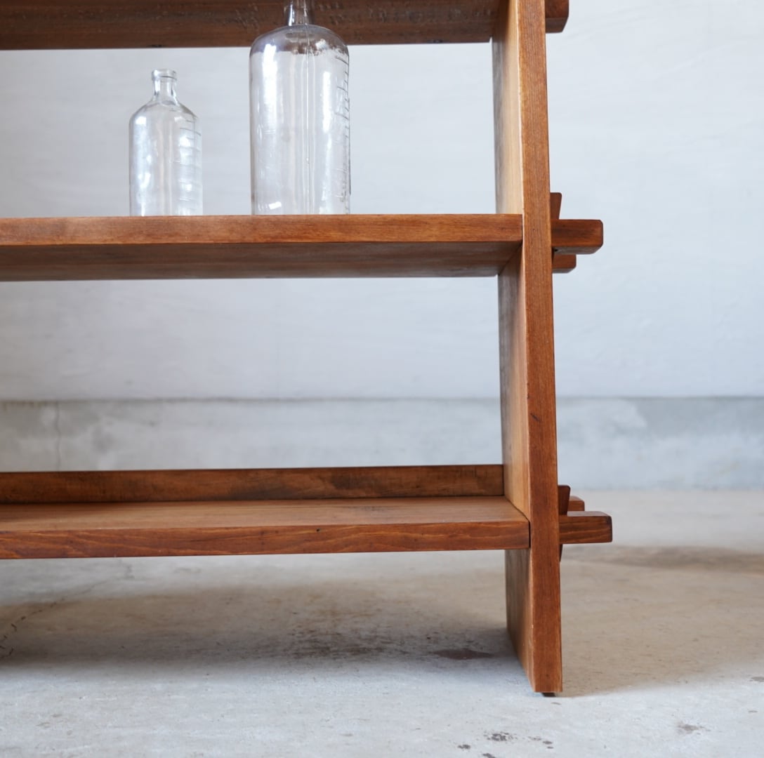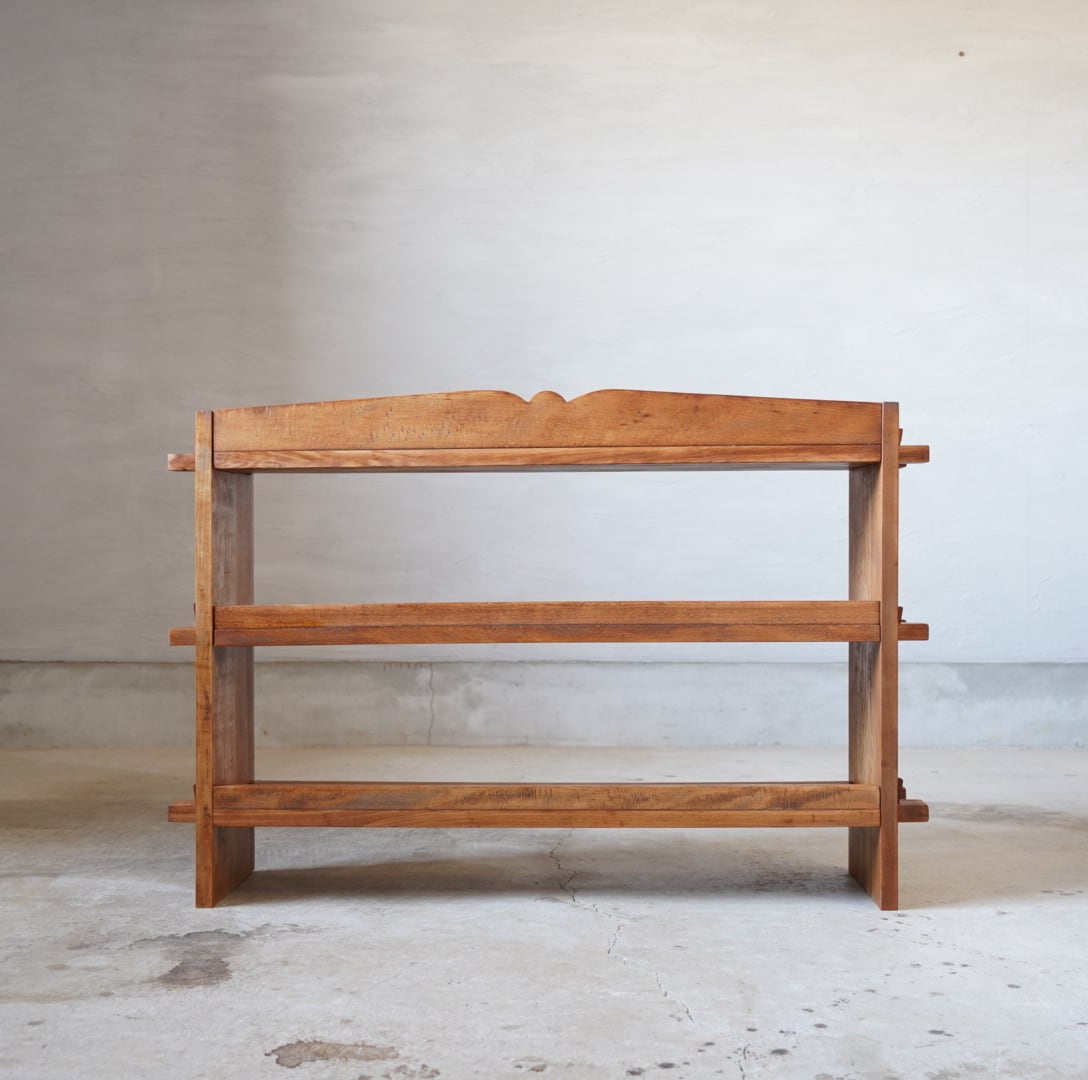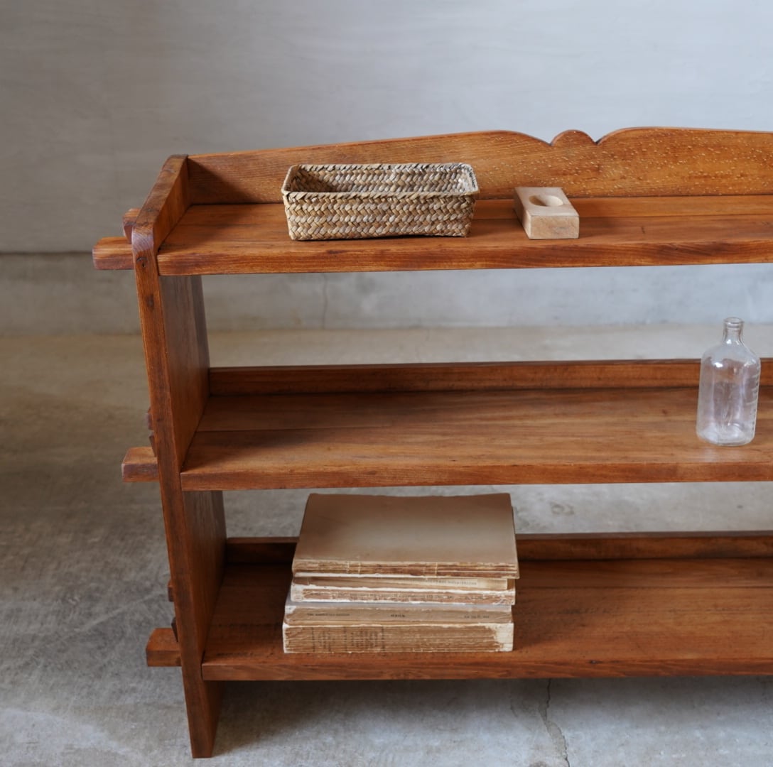 無垢材の温かみのある経年変化とすっきりとした佇まいがとても美しい3段のオープンラックです。