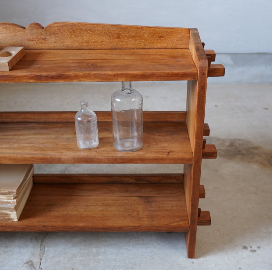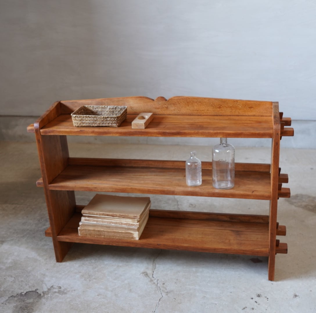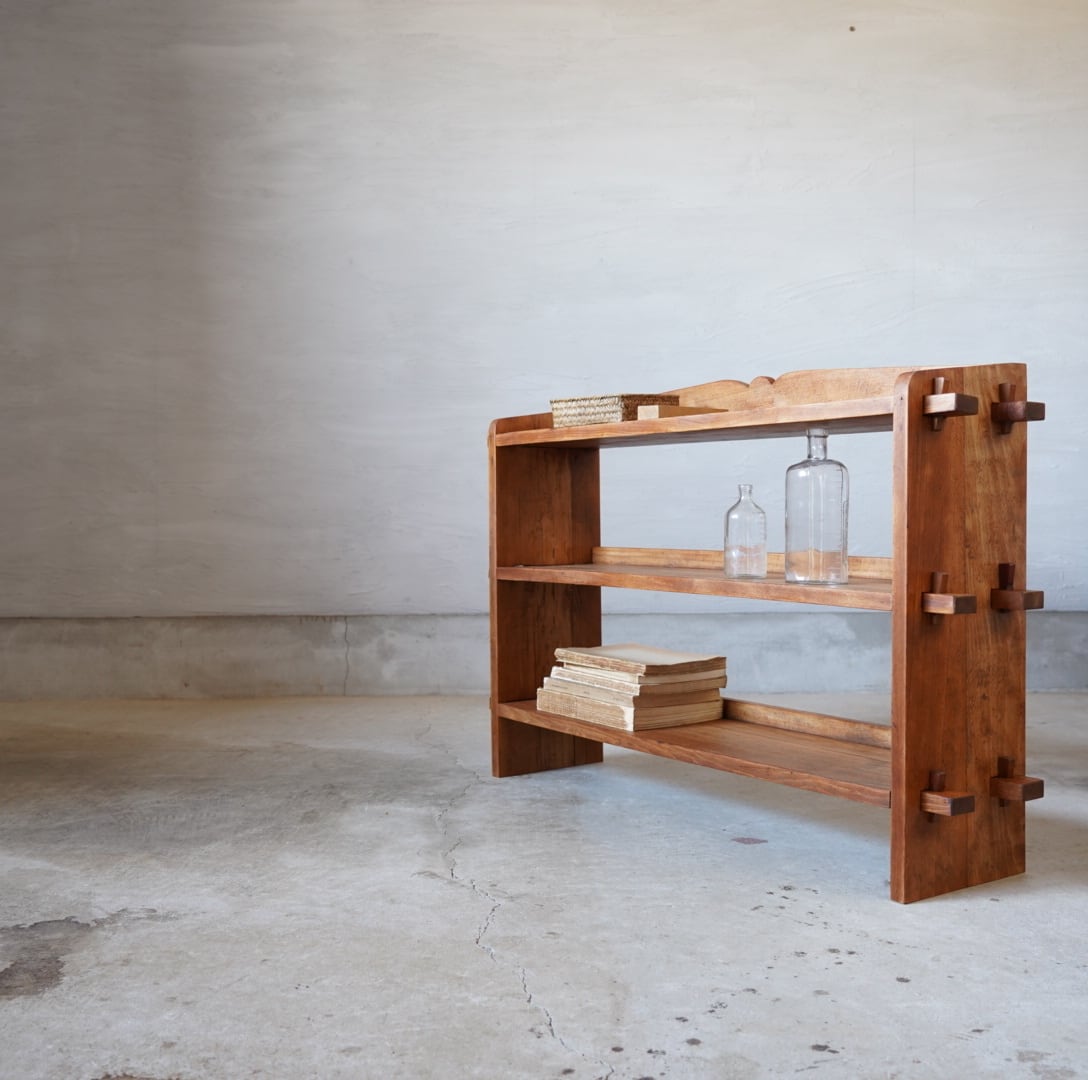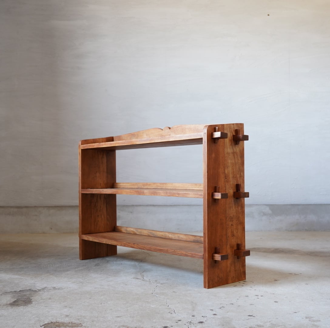 無垢材の温かみのある経年変化とすっきりとした佇まいがとても美しい3段のオープンラックです。