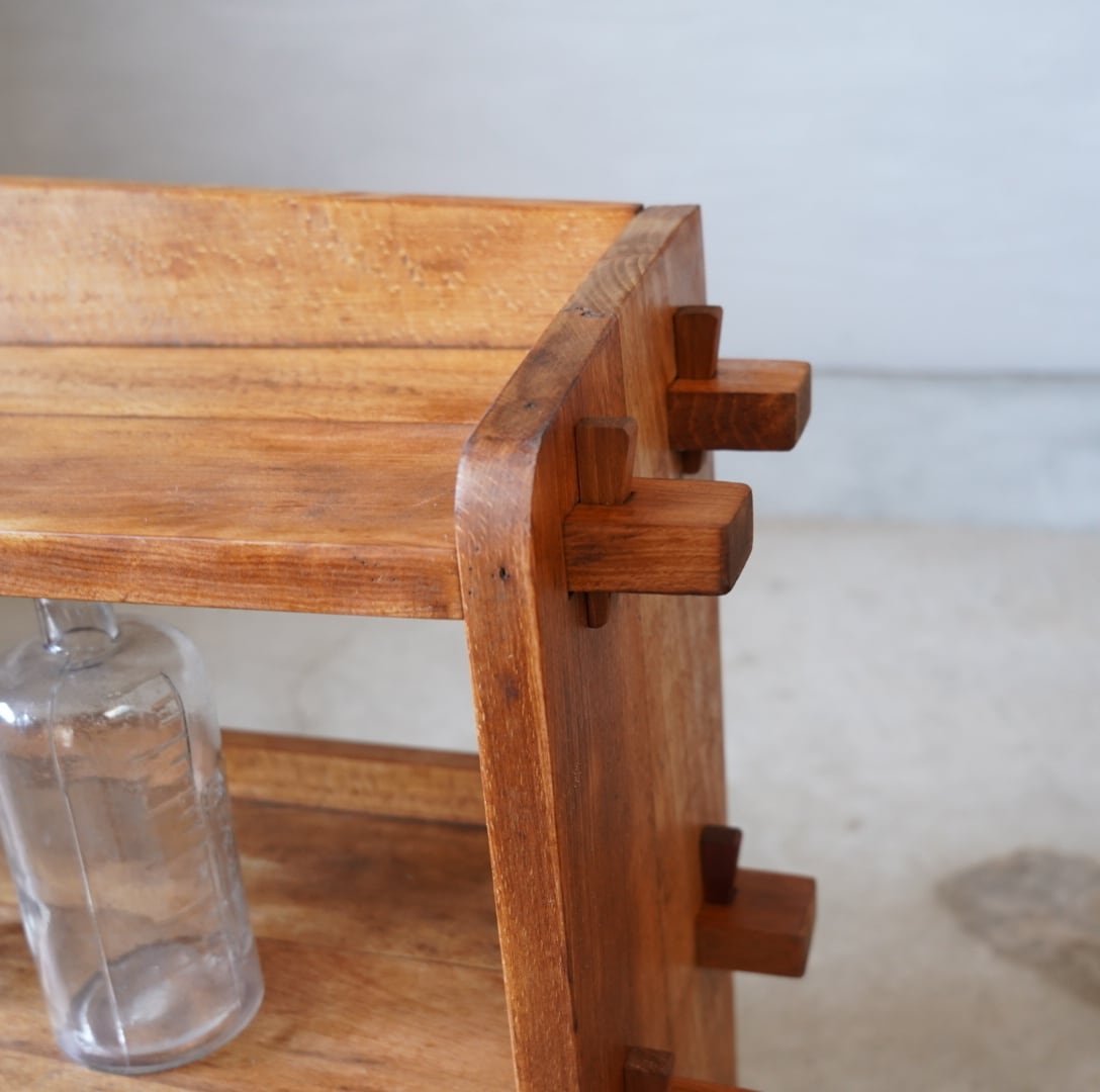 *配送中の事故防止のため棚はバラバラにした状態で発送致します。楔は当て木をしてハンマーで軽く叩いて打ち込む事で簡単に組み立てができます。
