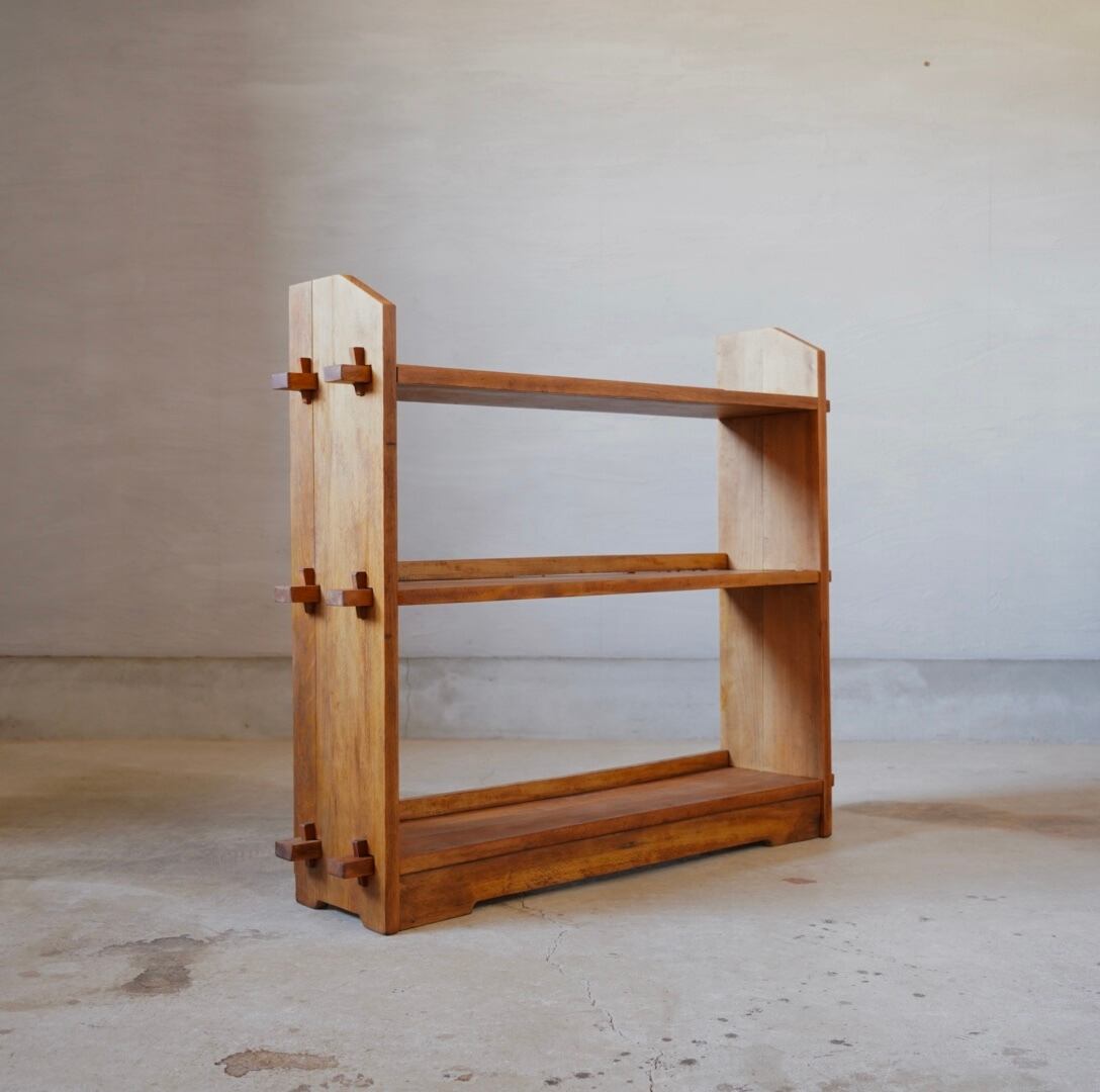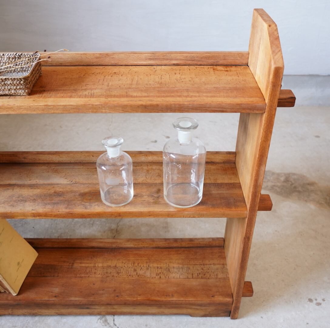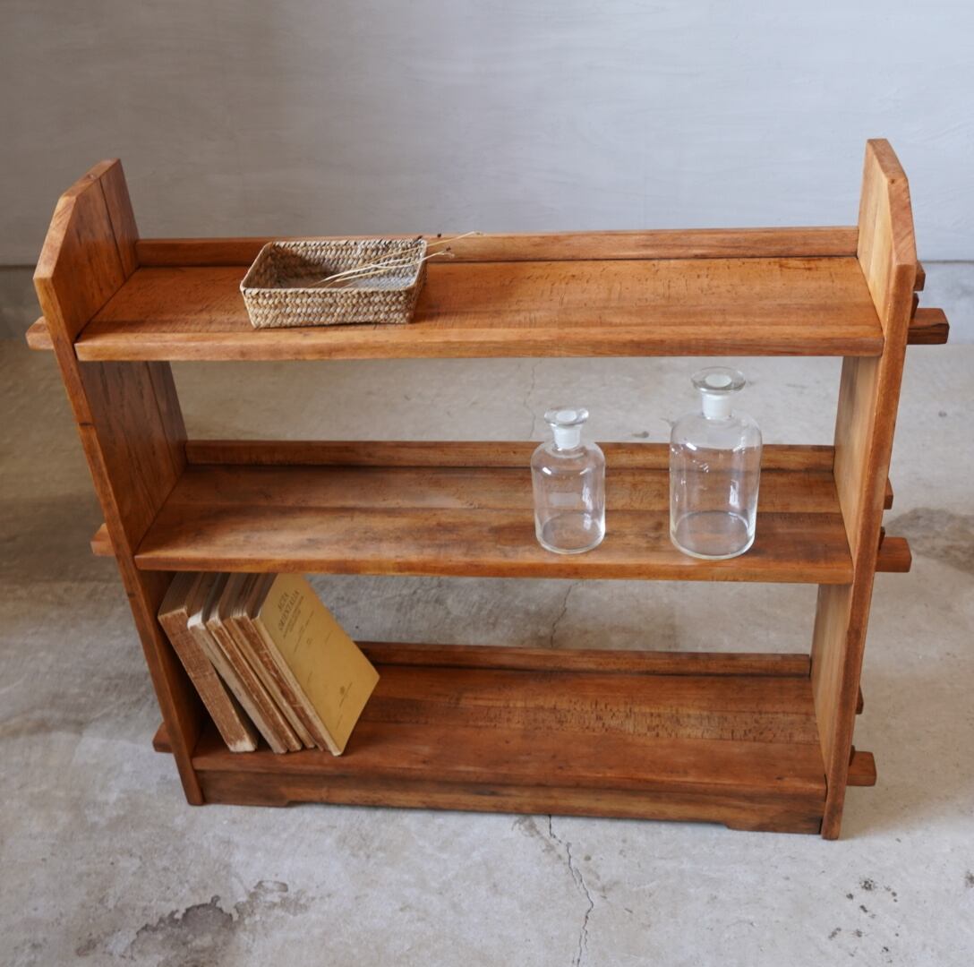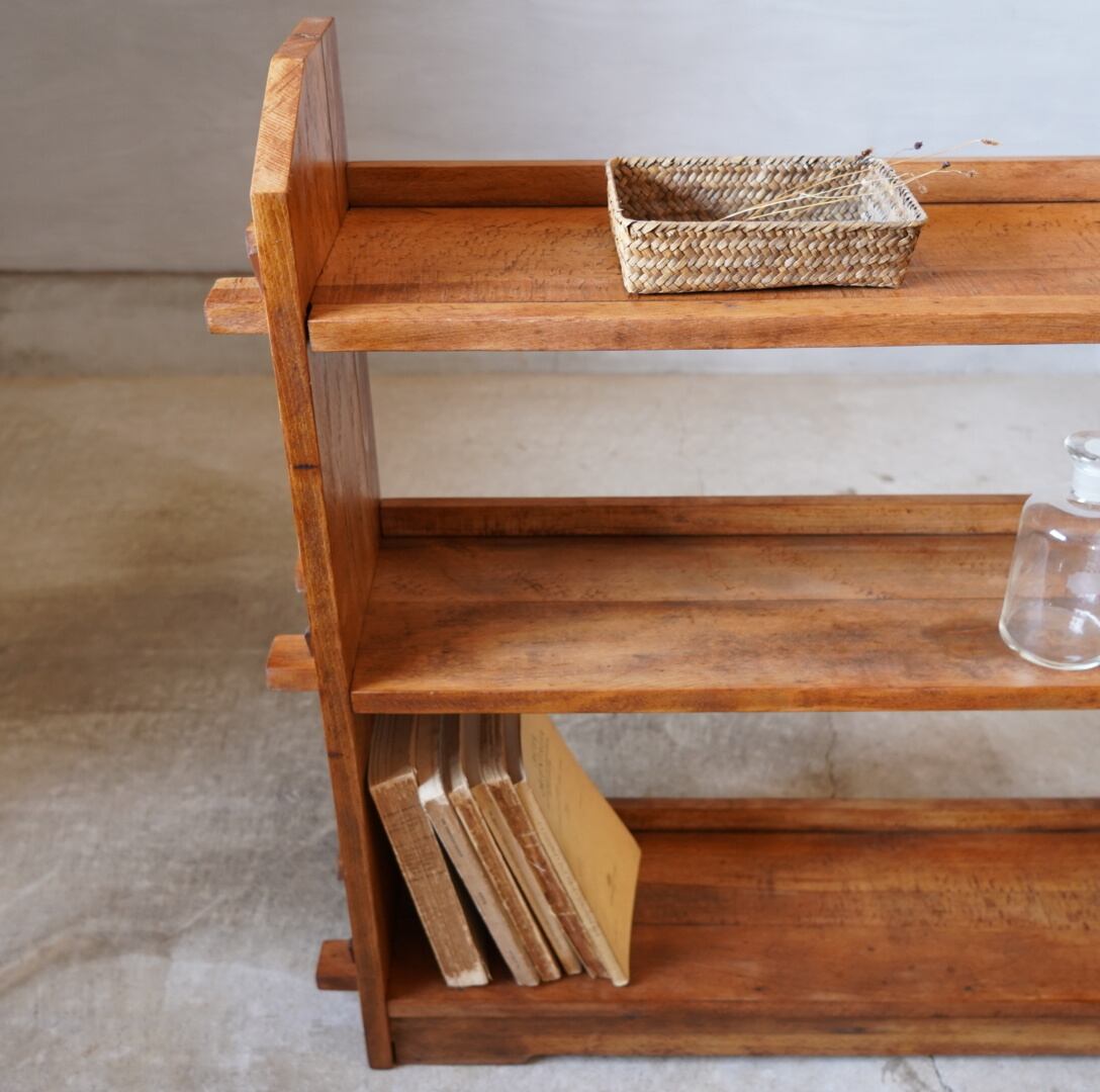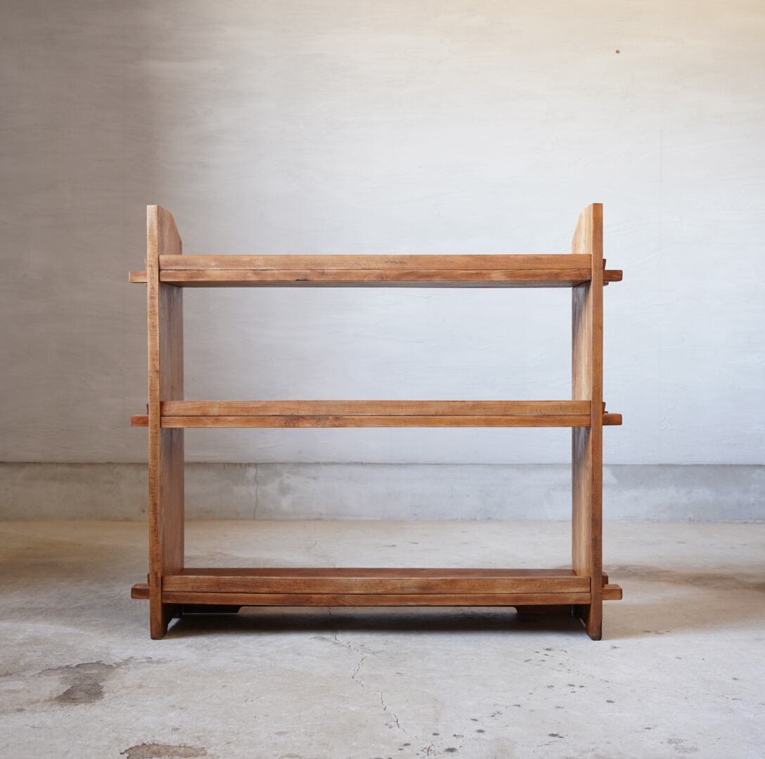 無垢材の温かみのある経年変化とすっきりとした佇まいがとても美しい3段のオープンラックです。