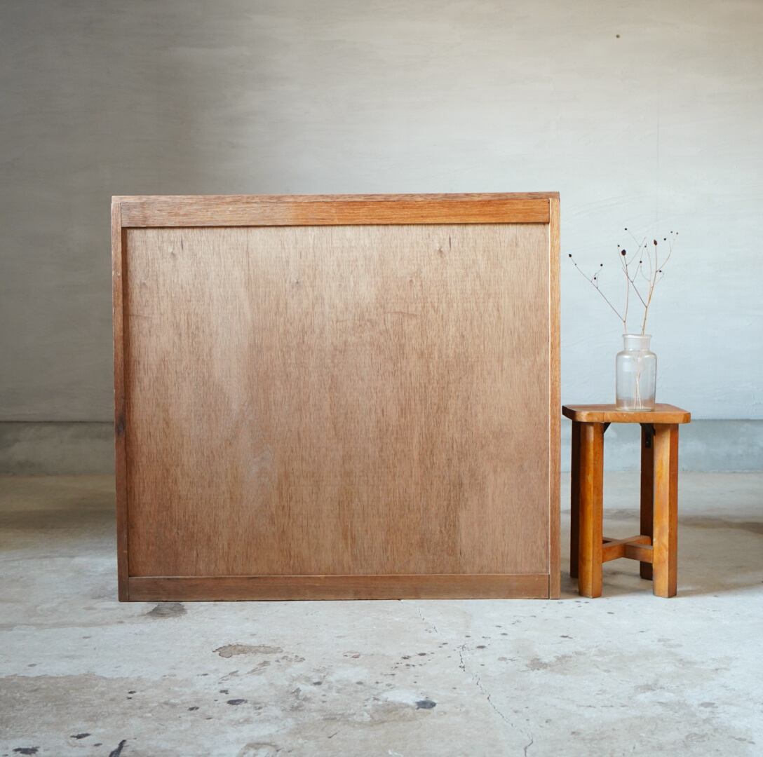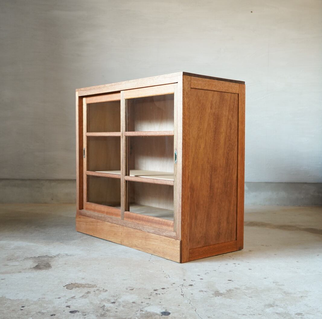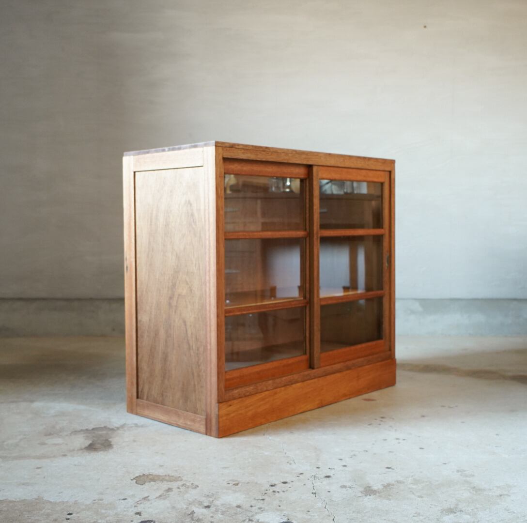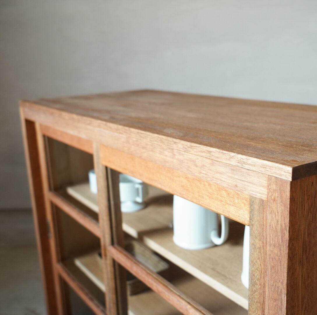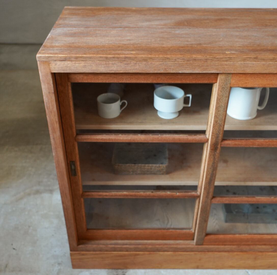 温かみのある経年変化と大きな格子ガラス戸が美しいキャビネットです。
