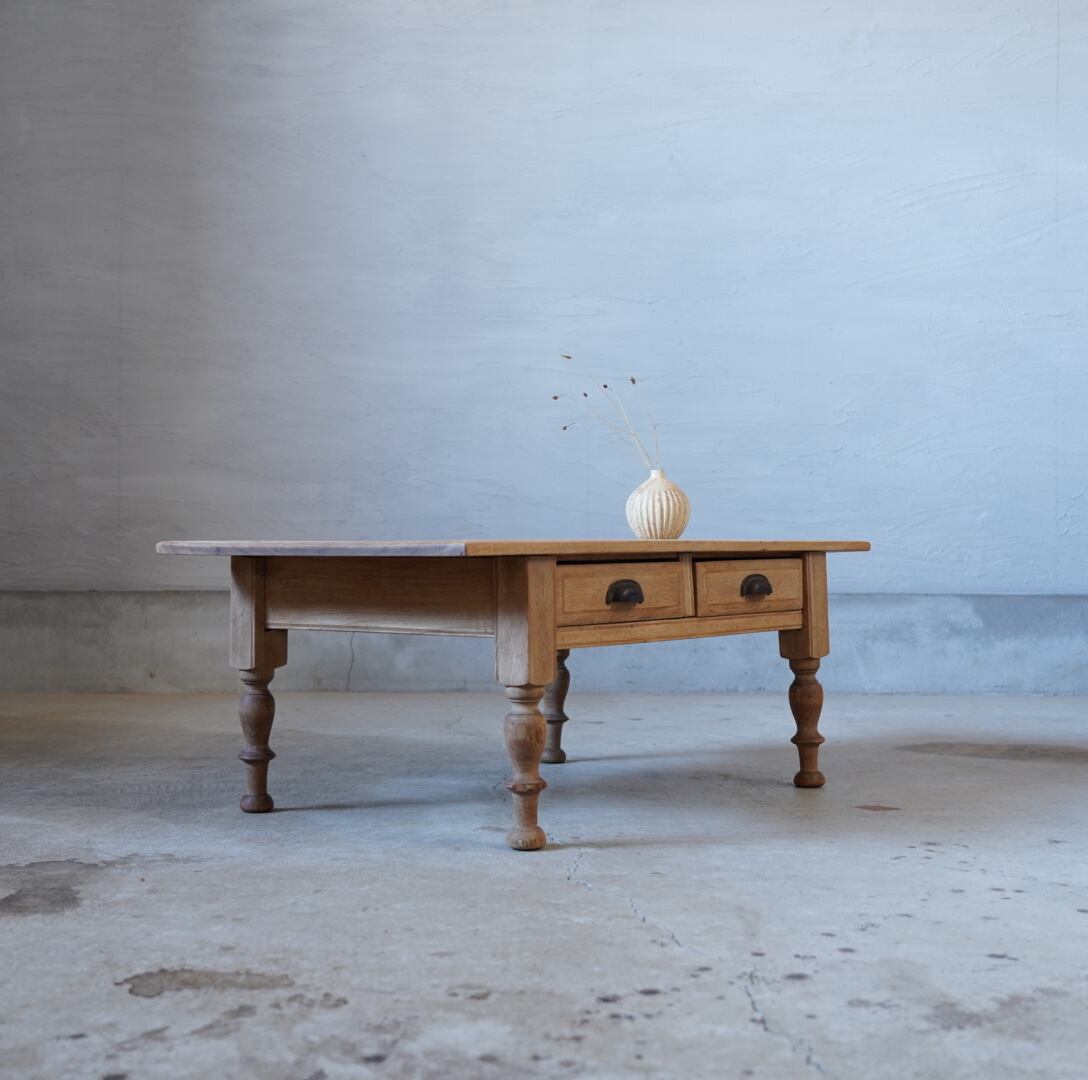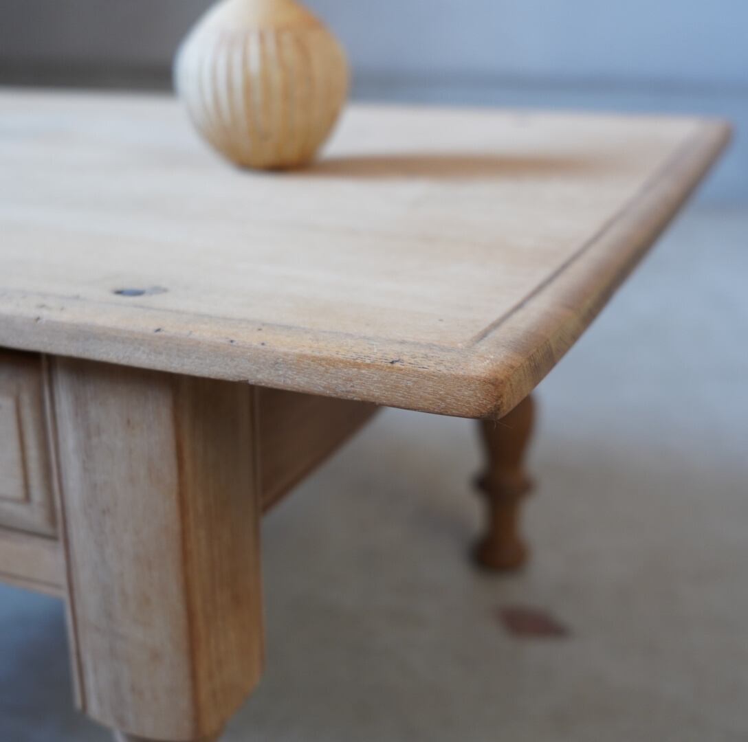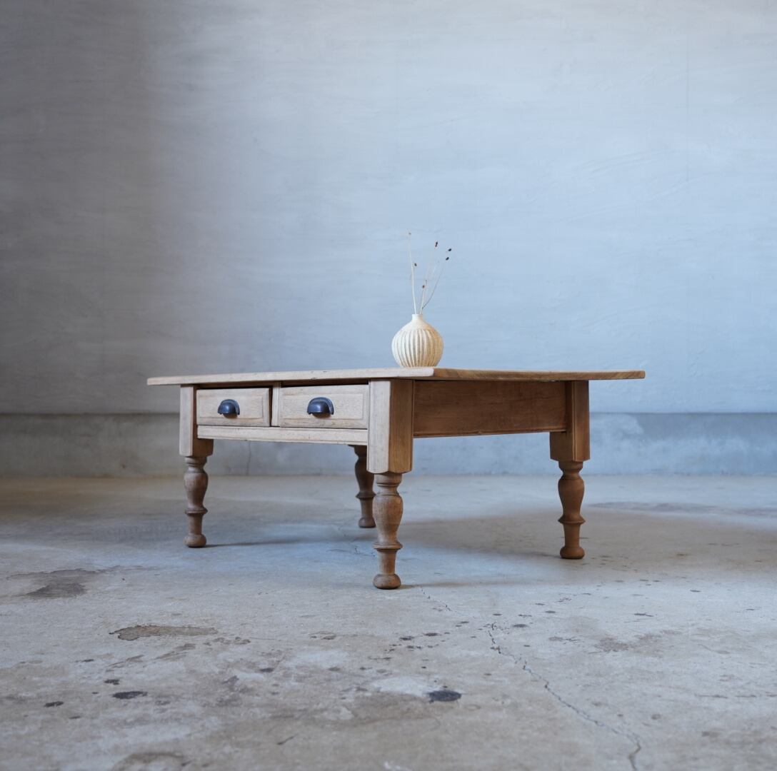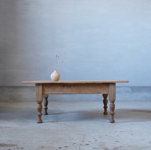 無垢材のナチュラルな木味と脚部の精巧なろくろ飾りが美しいコーヒーテーブルです。