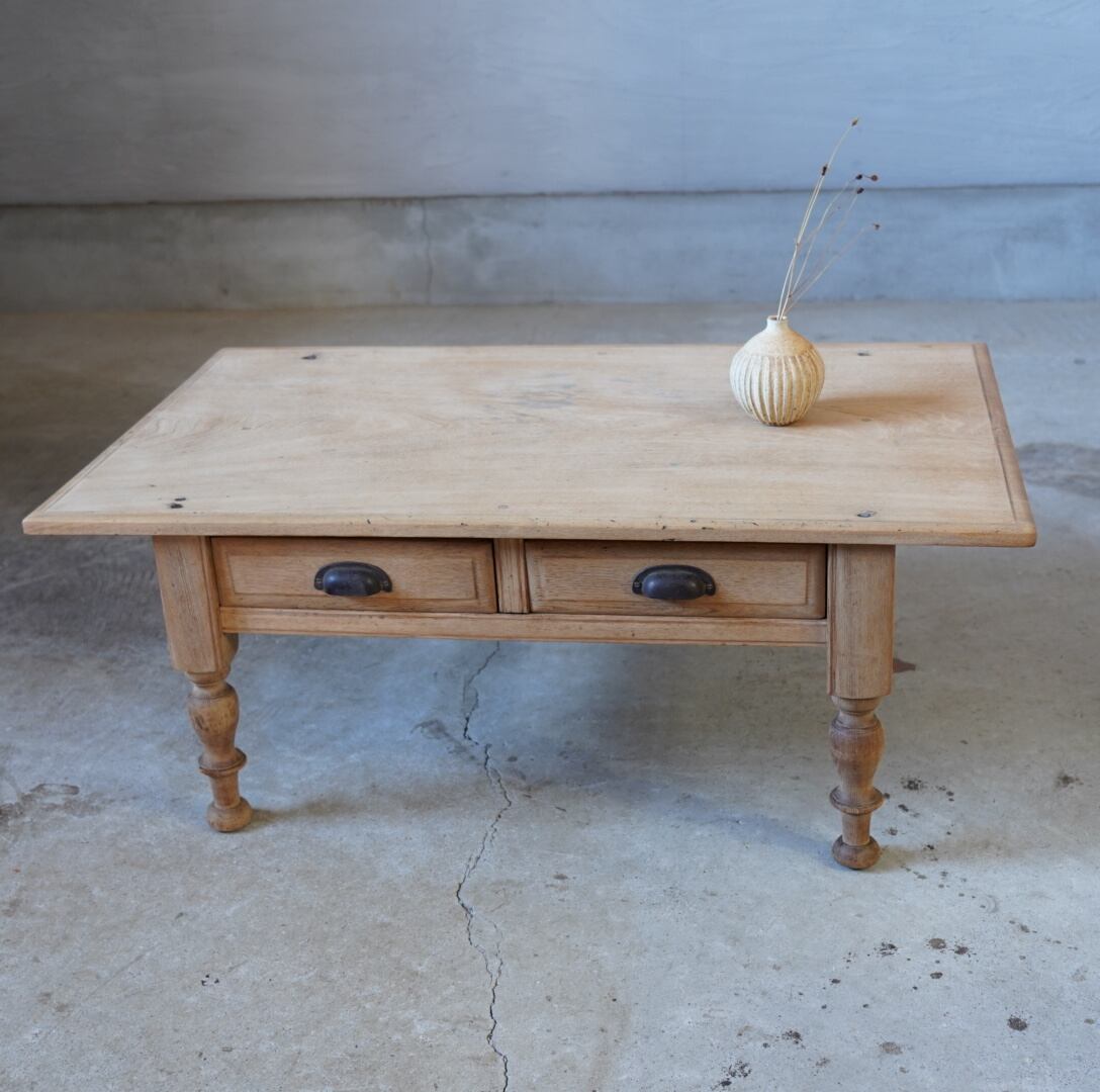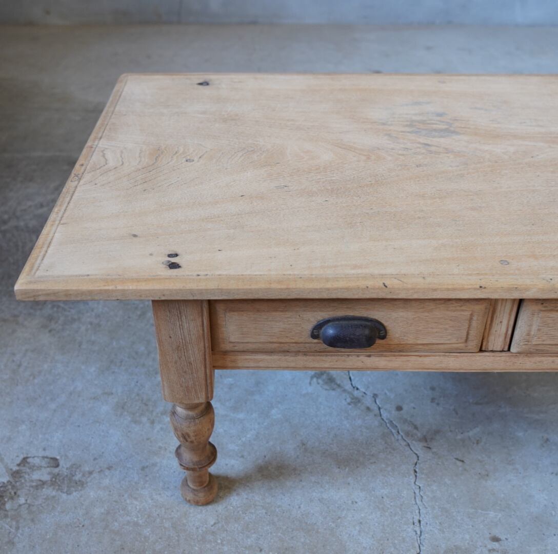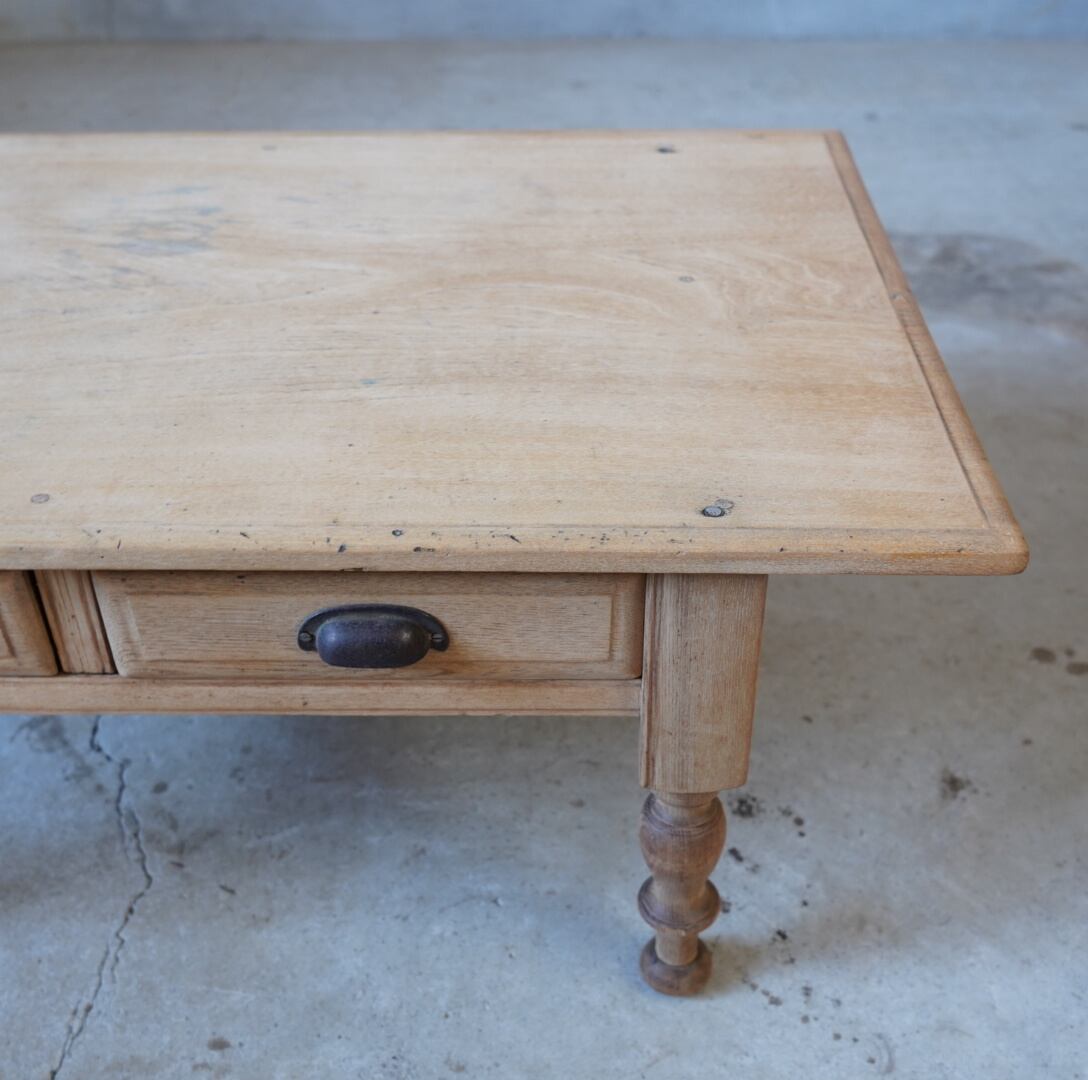 無垢材のナチュラルな木味と脚部の精巧なろくろ飾りが美しいコーヒーテーブルです。
