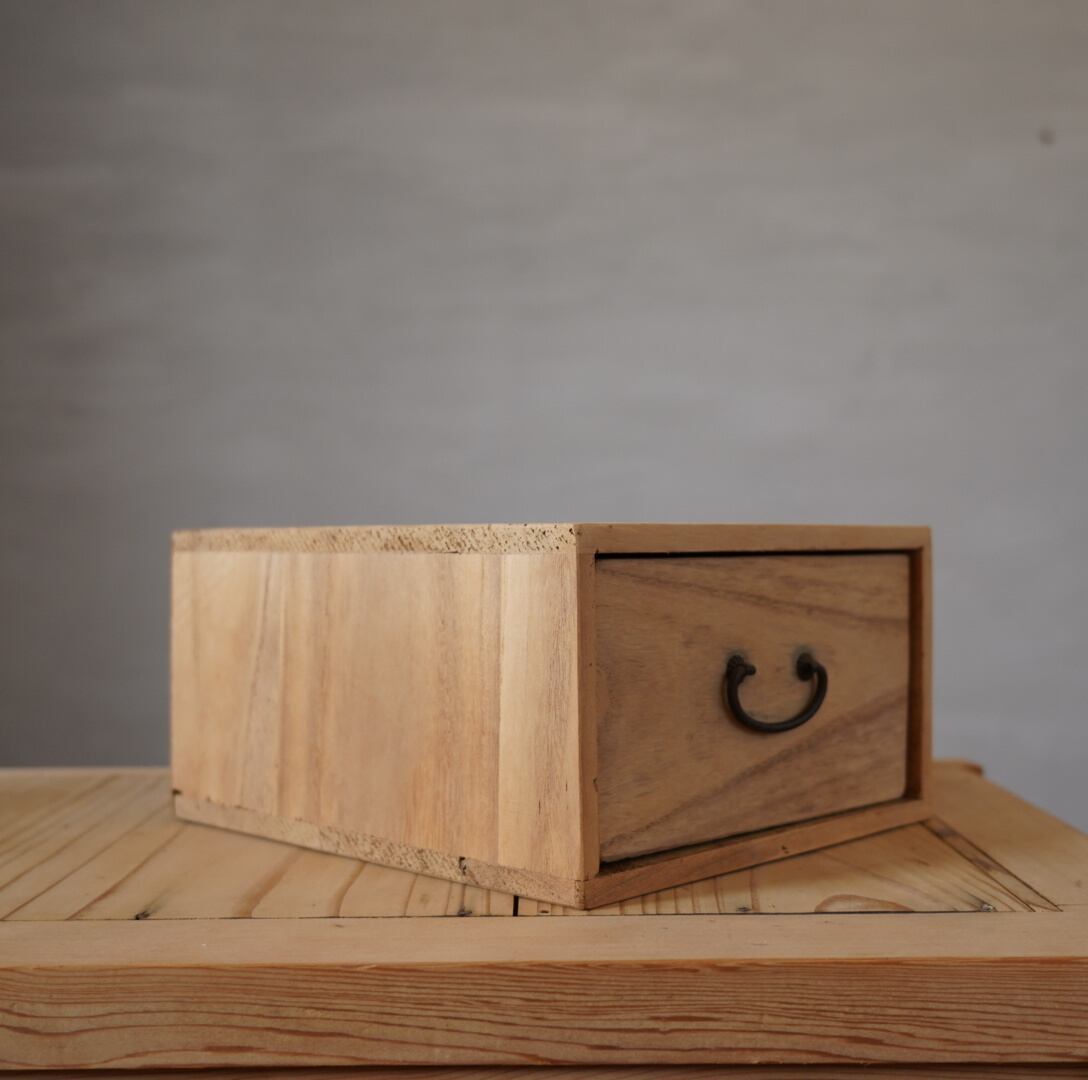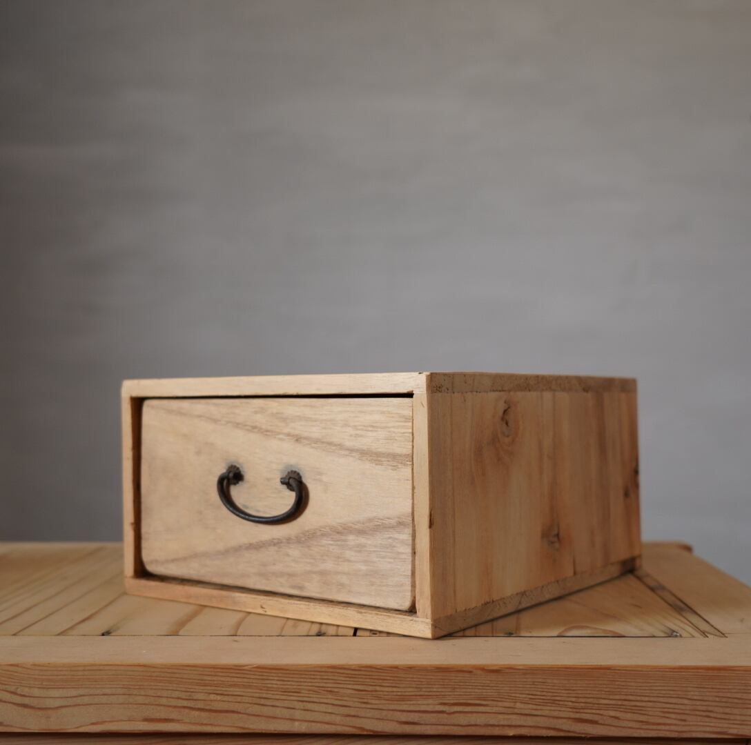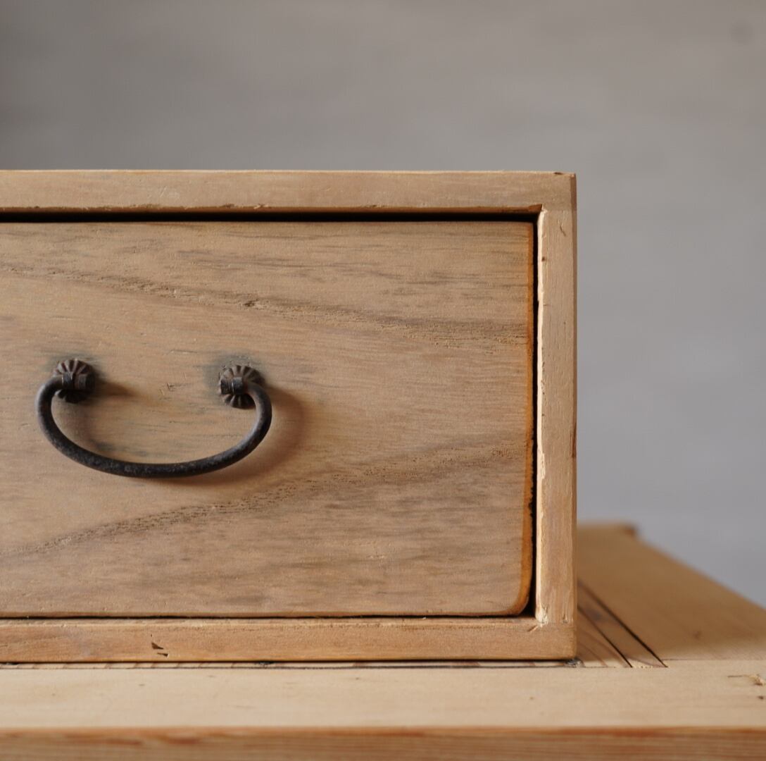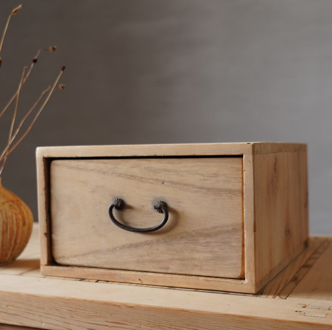 ナチュラルな木味と黒い金属の取手が可愛らしい1杯の小引き出しです。