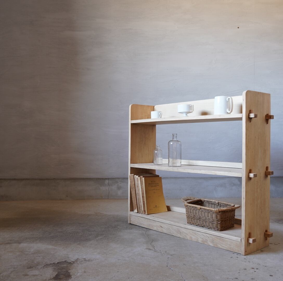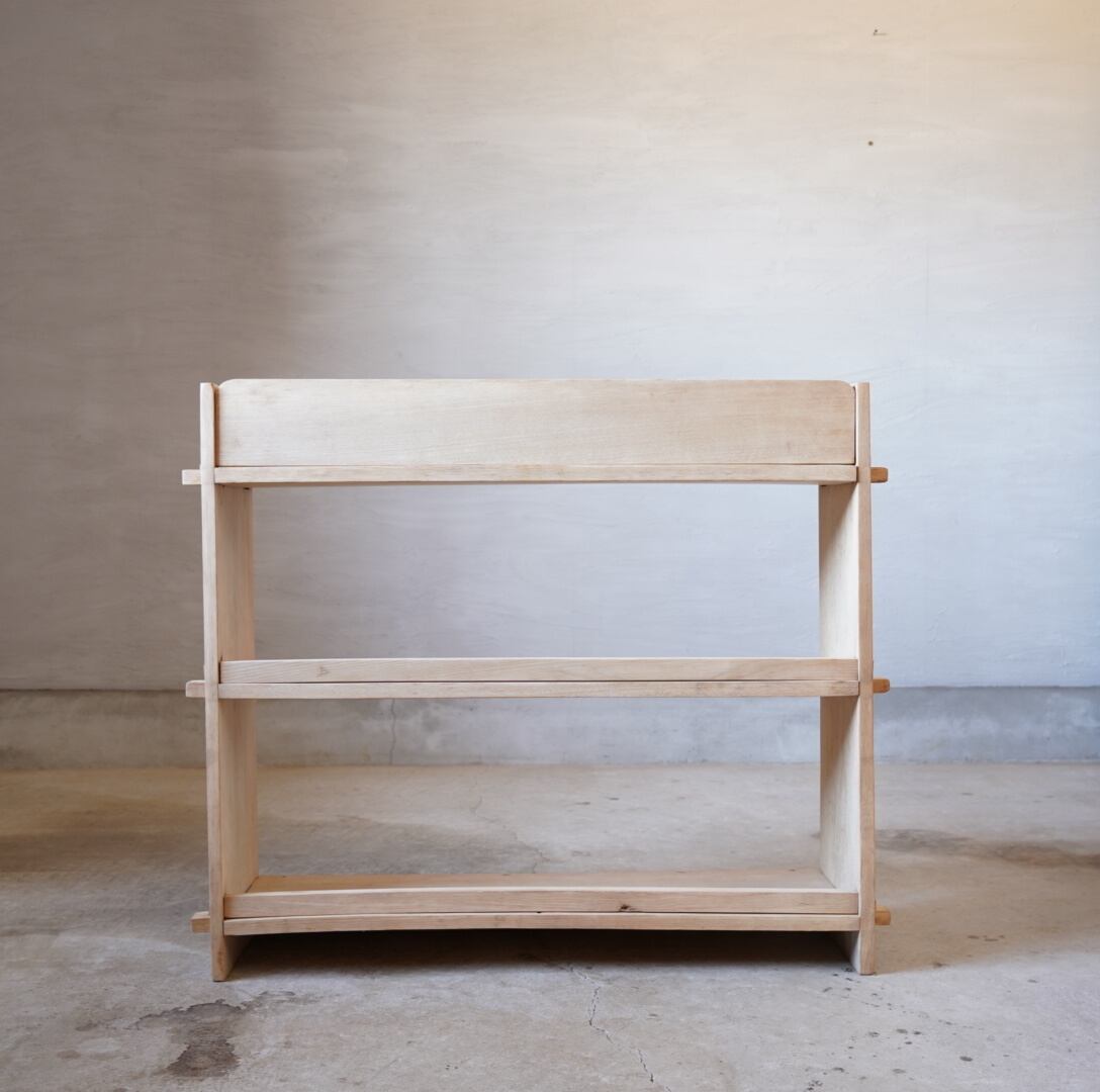 無垢材のナチュラルな木味とすっきりとした佇まいがとても美しい3段のオープンラックです。