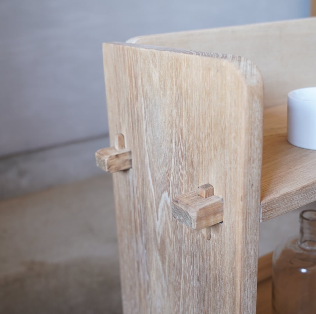 12本の楔が棚をしっかりと固定する造りになっており、機能性と美しさを兼ね備えております。