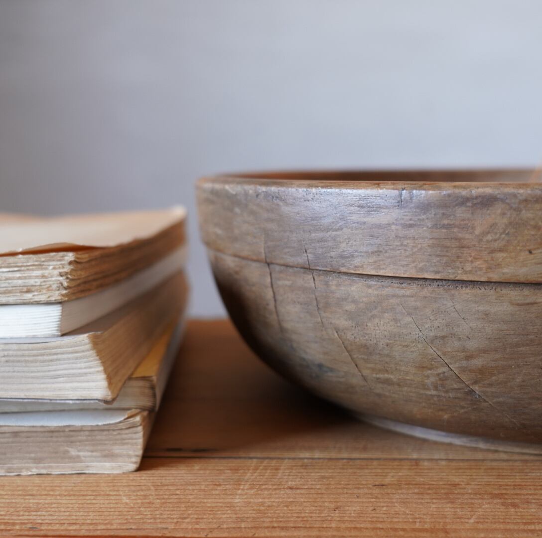 温かみのある経年変化と滑らかでやさしいフォルムが魅力的な木鉢です。