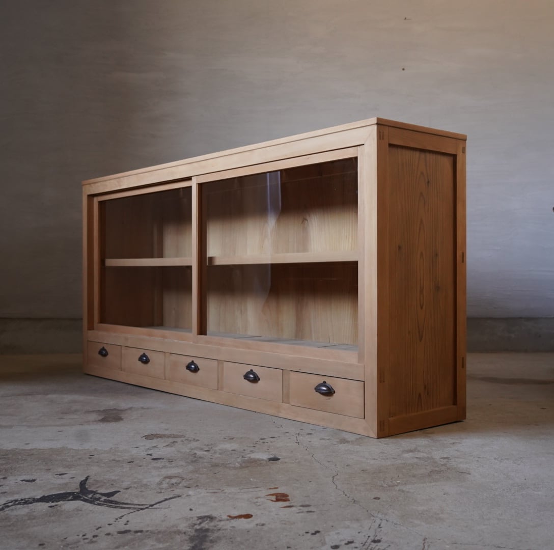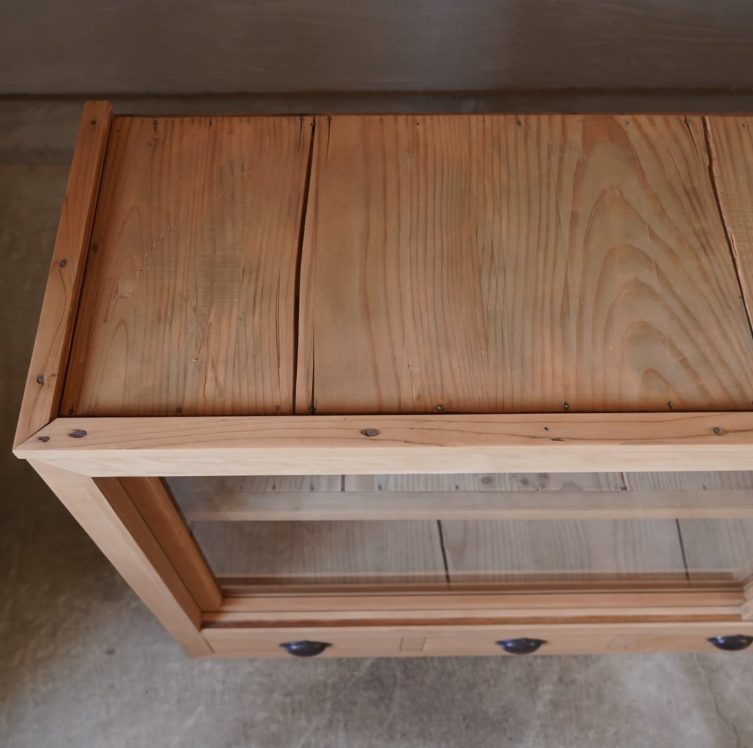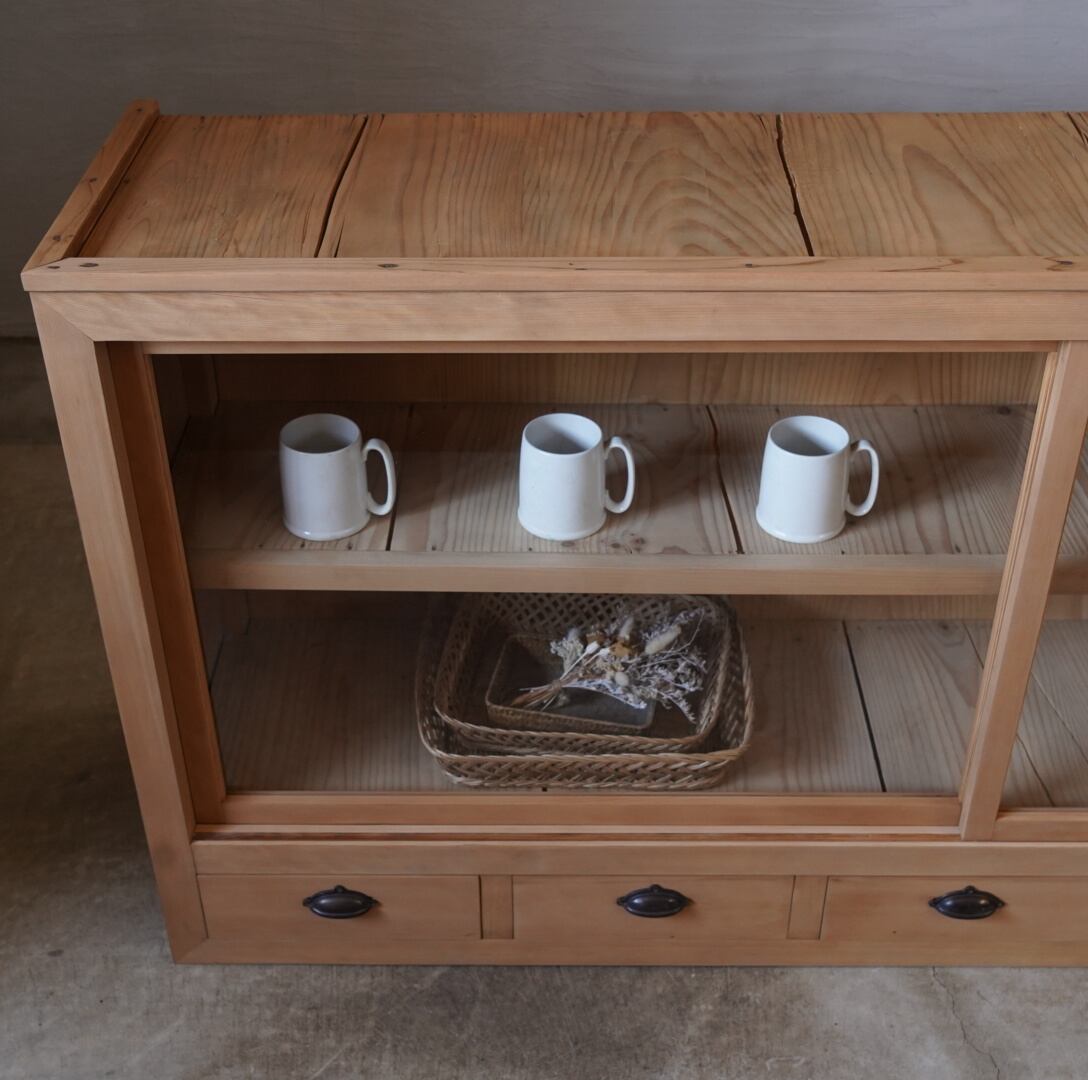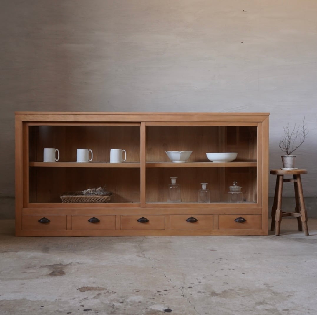 お部屋の食器棚やショップのショーケースとしてはもちろん、程よい高さの天板はカウンターや陳列棚としても実用的にお使いいただけそうです。