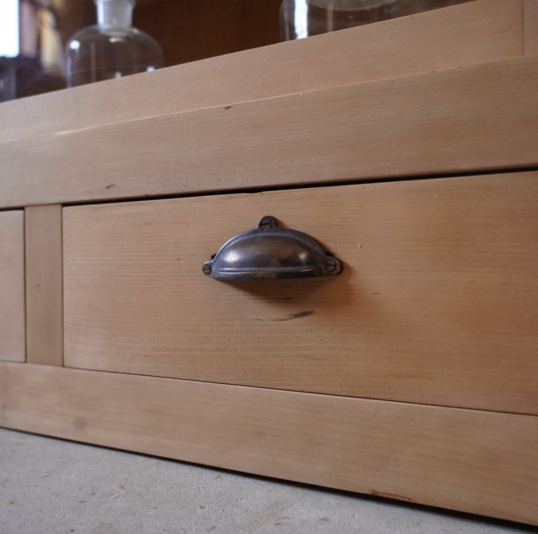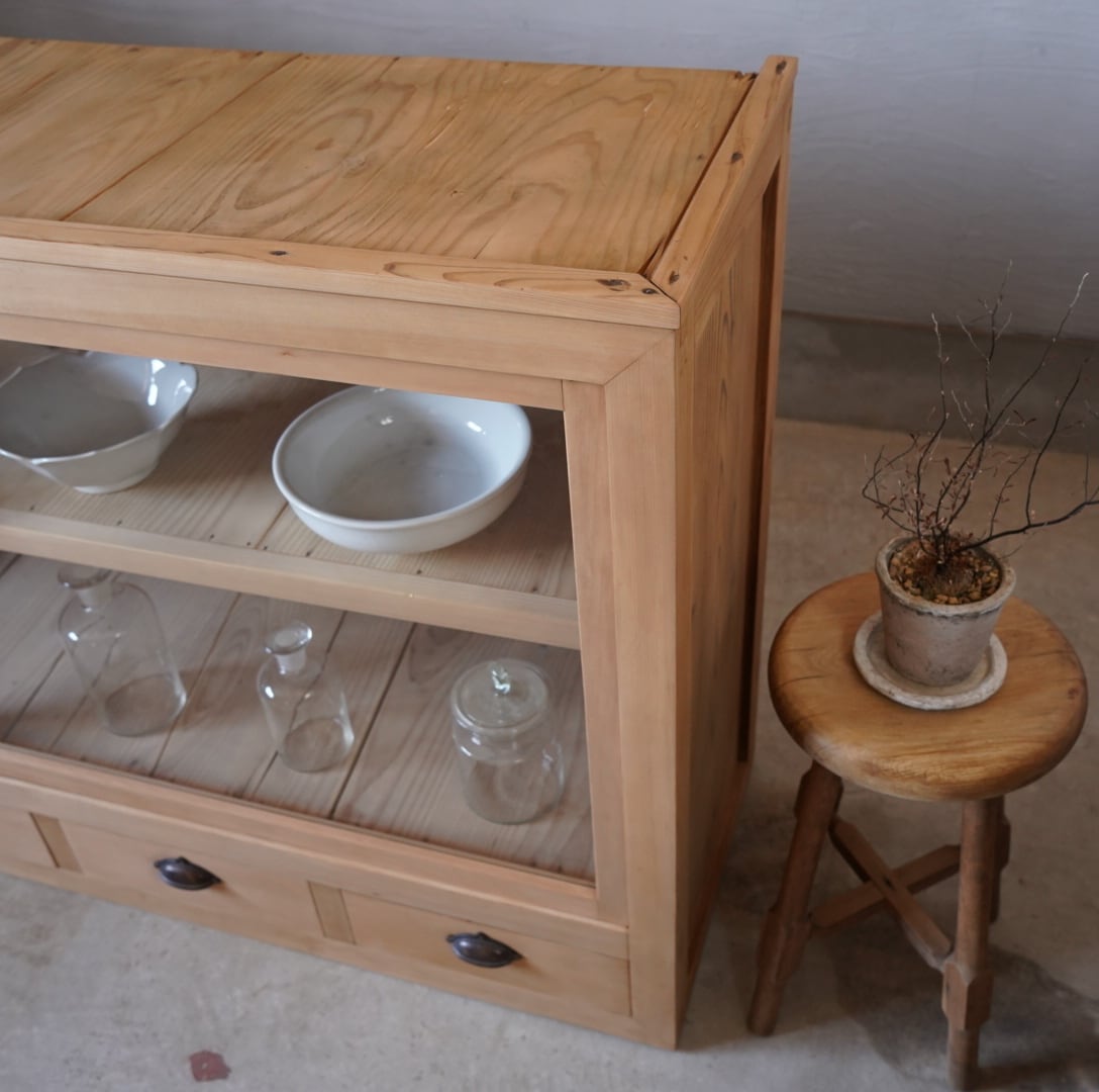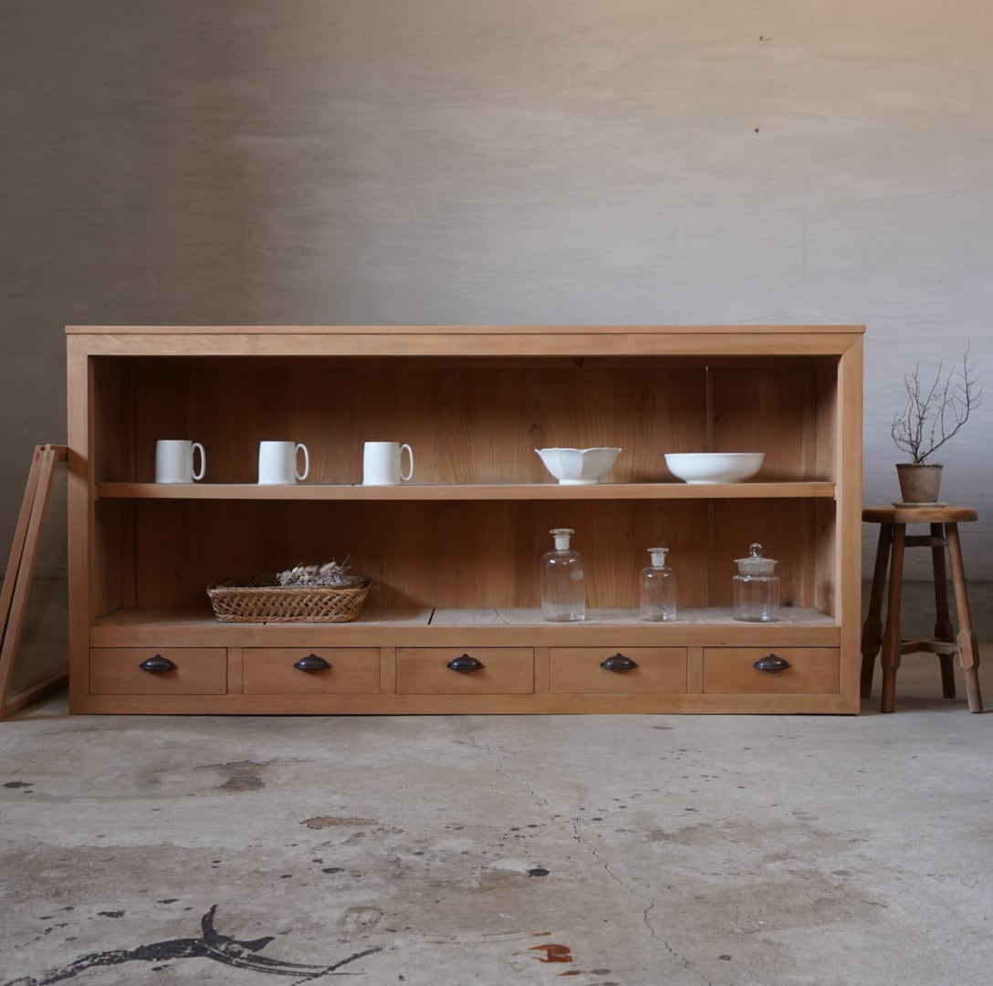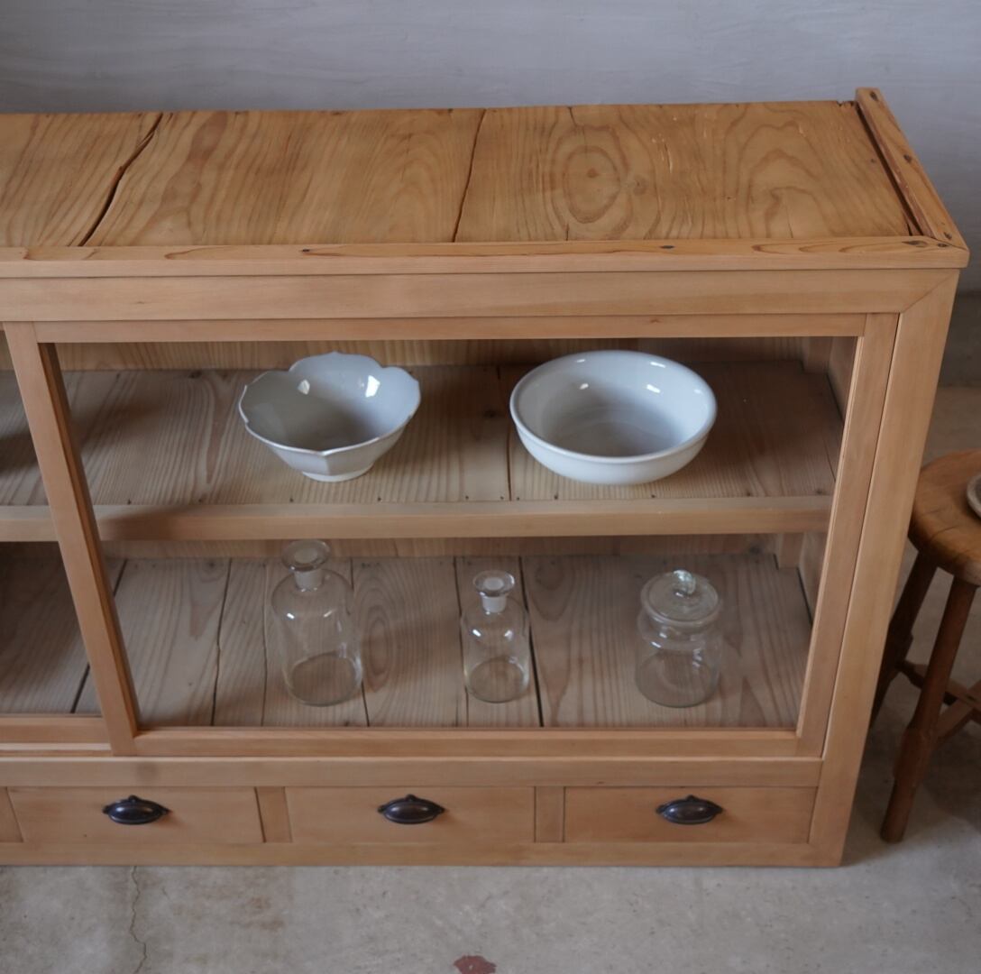 お部屋の食器棚やショップのショーケースとしてはもちろん、程よい高さの天板はカウンターや陳列棚としても実用的にお使いいただけそうです。